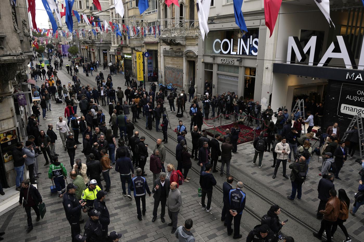 La tranquillità della via principale dello shopping di Istanbul, da piazza Taksim a piazza Tunel, è stata bruscamente interrotta nel primo pomeriggio di ieri 13 novembre da un’esplosione che ha causato la morte di 6 persone e ne ha ferite 81. Il presidente turco Recep Tayyip Erdogan ha subito parlato di «vile attentato», e anche se non è stato ancora rivendicato, il ministro dell’Interno turco Suleyman Soylu ha accusato il Partito dei lavoratori del Kurdistan ed è scattato l’arresto di una ventina di persone, tra cui una donna di nazionalità siriana, che potrebbe aver compiuto l’attentato lasciando una borsa incustidita. (foto Ap – Lapresse)