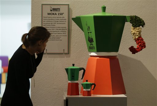 Si è aperta il 27 novembre a Milano la mostra che celebra gli 80 anni del più famoso marchio italiano di caffettiere. Nel 1993 Alfonso Bialetti disegnò il primo bricco con un peculiare fondo ottagonale. Da quel giorno non cambiò mai più. (foto AP)