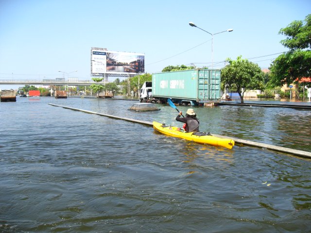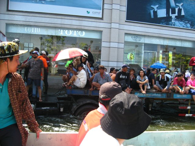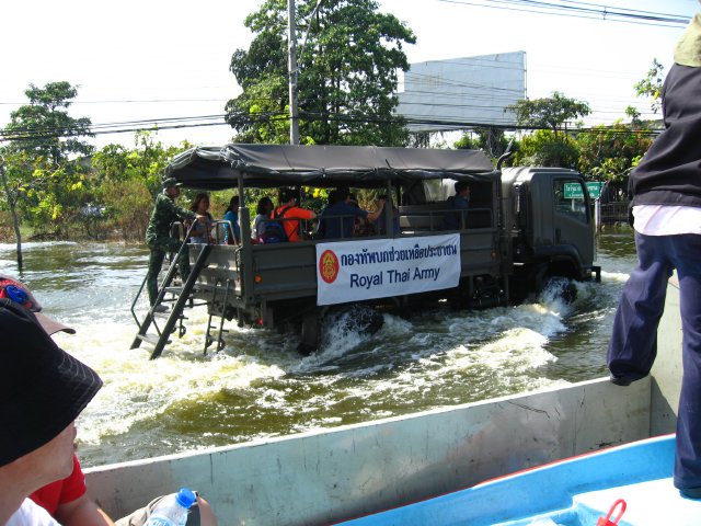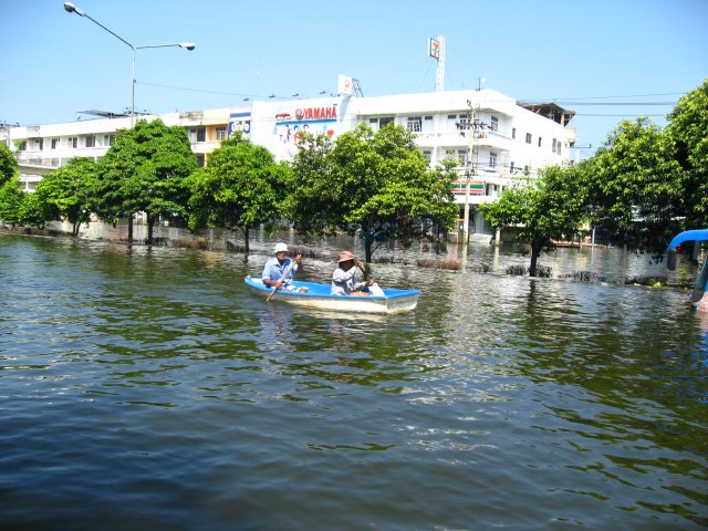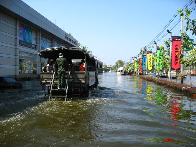 Militari e volontari portano soccorso alla gente intrappolata in casa da quasi due mesi per l’enorme quantità d’acqua riversatesi nella parte ovest della città. Le autostrade sono dei veri e propri fiumi. La fabbrica della Honda sommersa da due metri d’acqua ha perso quasi due milioni di auto. Le pompe idrovore non riescono a far defluire l’acqua e il livello cala solo di cinque centimetri al giorno