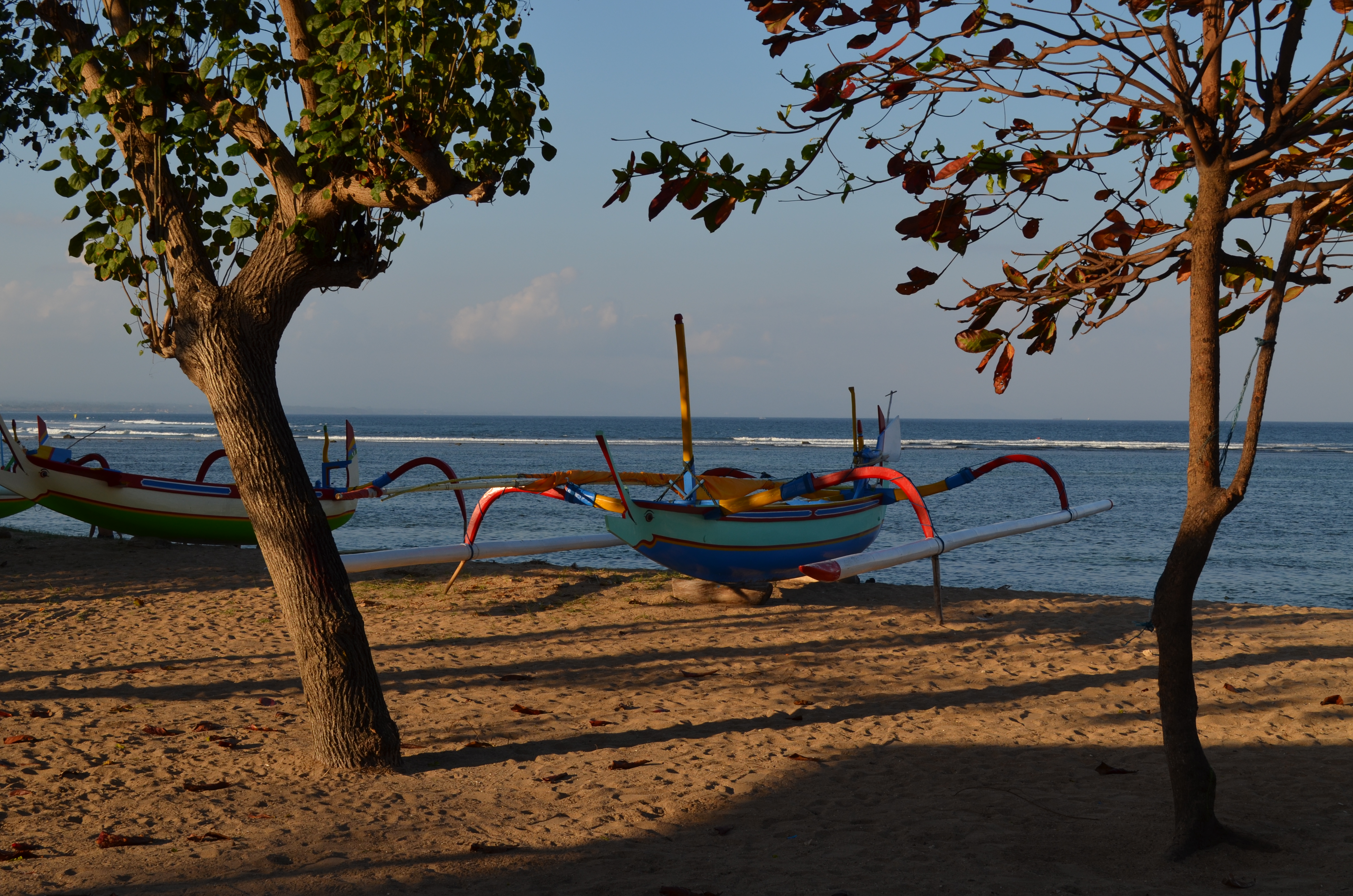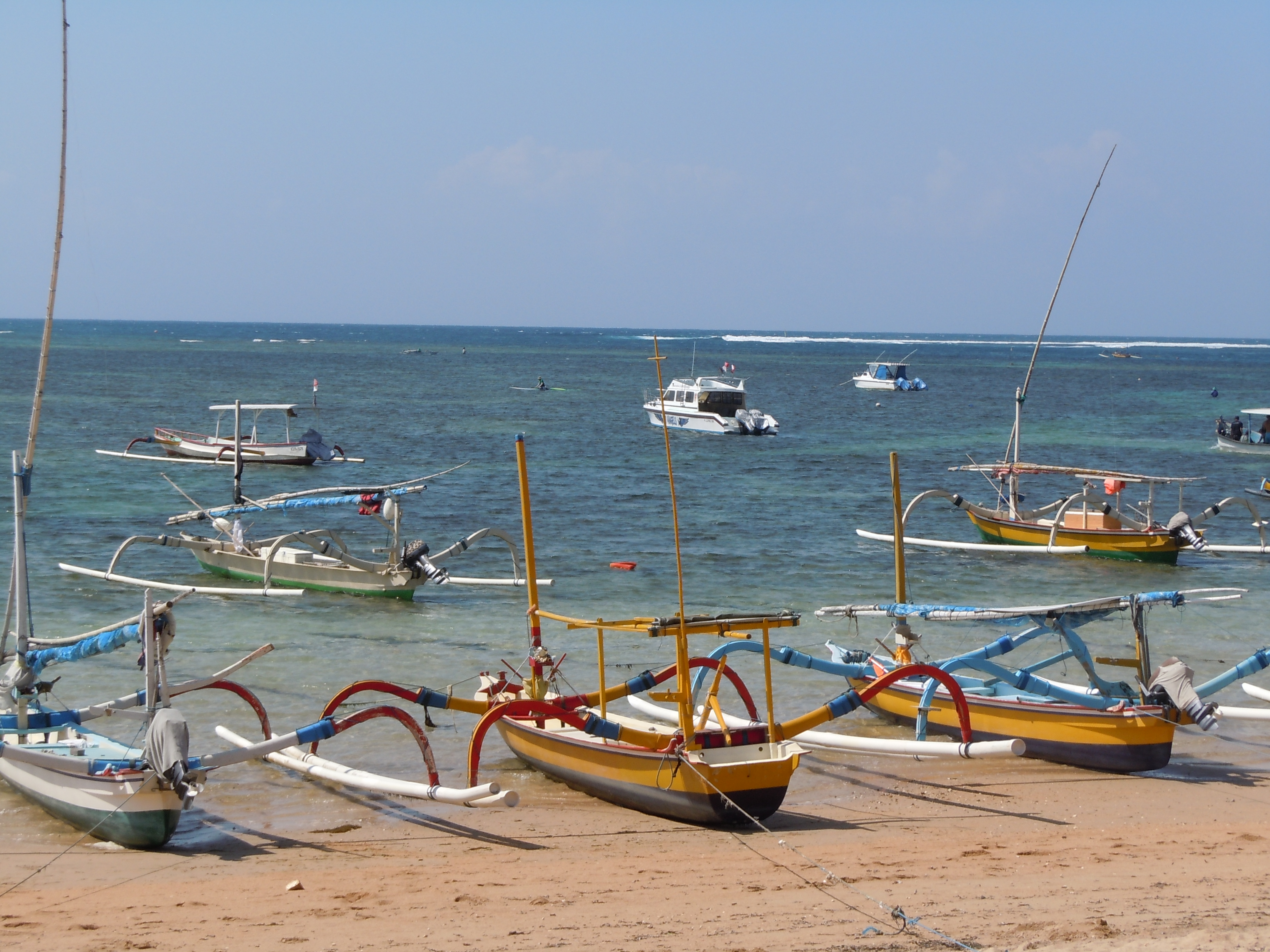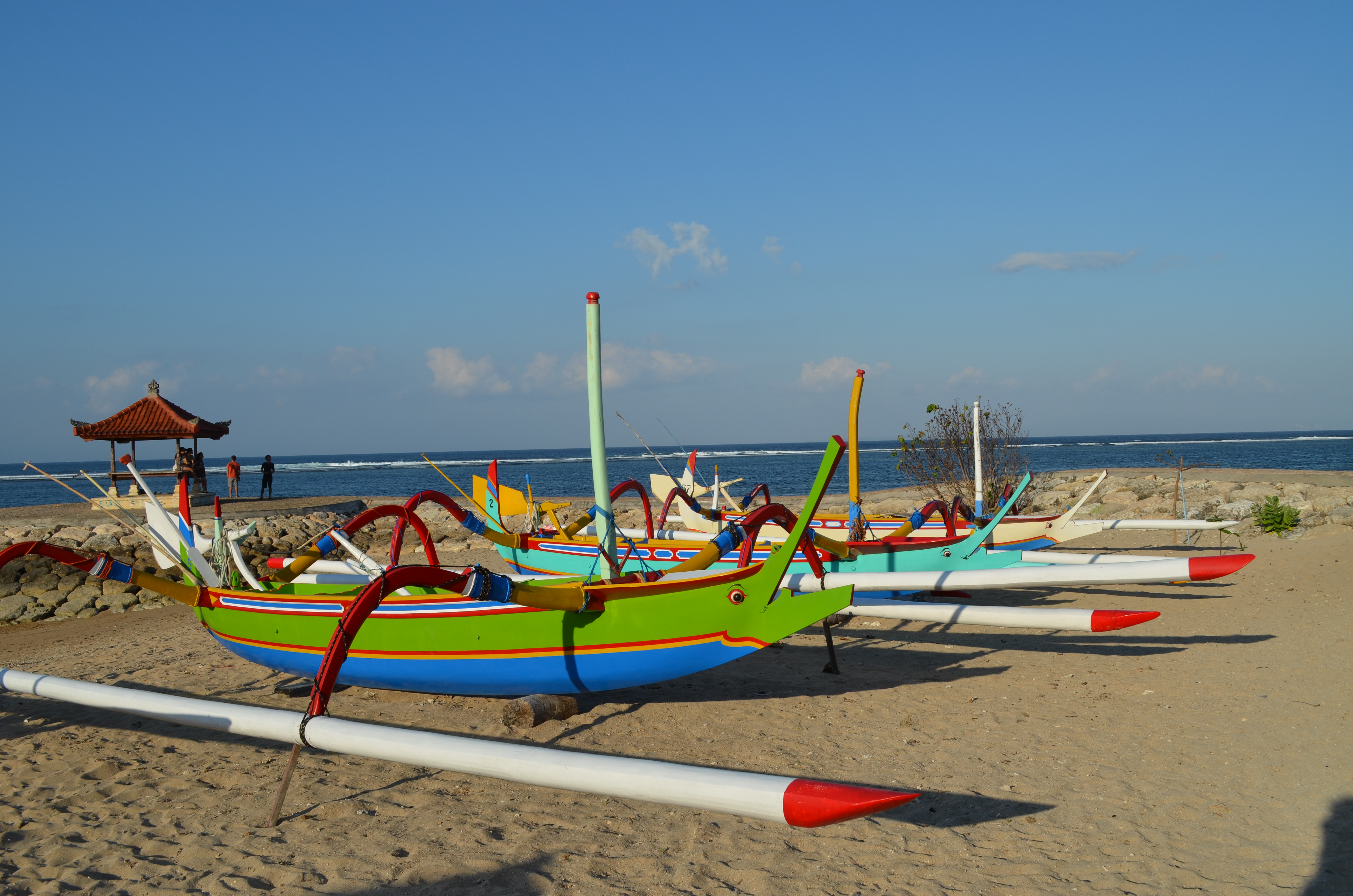 Nell’isola di Bali, a Sanur, i natanti dei pescatori locali trasmettono la natura gioviale e semplice del popolo.