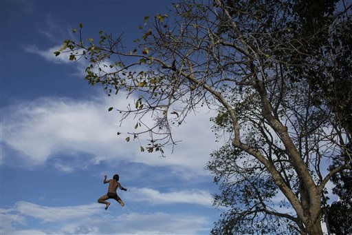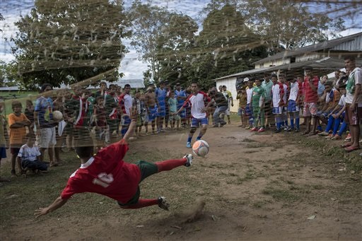 Il Brasile si prepara ad accogliere migliaia di visitatori in occasione dei Mondiali di calcio che si svolgeranno quest'estate. Conosciamo dunque un po' di più di questo magnifico Paese dell'America Latina. Nelle foto, scattate nei dintorni di Manaus: tre immagini degli abitanti della comunità indigena Tatuyo; un giocatore tira un calcio di rigore nella comunità di San Pedro; un bambino si tuffa nel fiume di San Pedro, il rio Negro, da un albero (foto Ap).