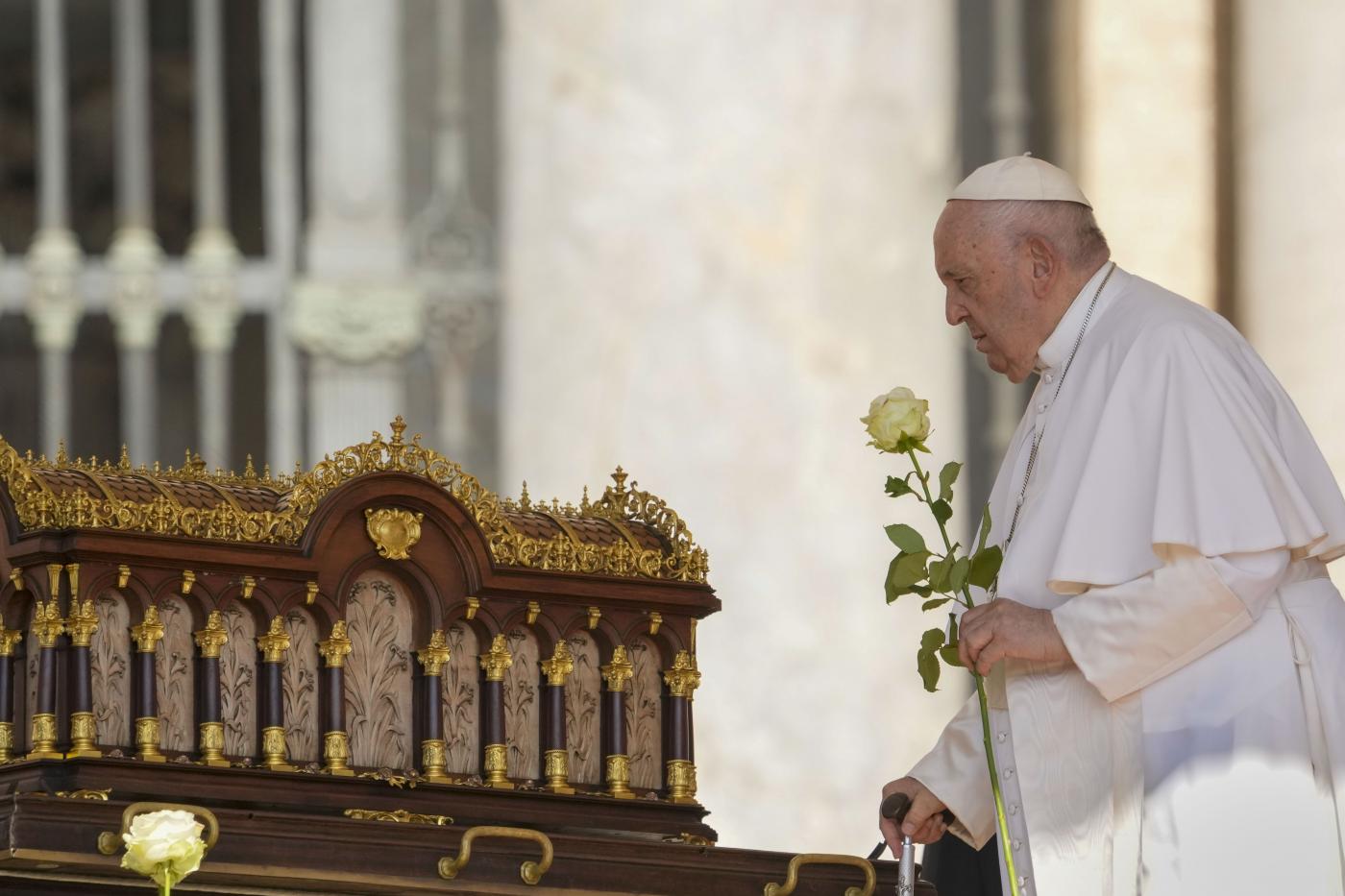 Il direttore della sala stampa della Santa Sede, Matteo Bruni, spiega che «l’operazione, concertata nei giorni scorsi dall’équipe medica che assiste il Santo Padre, sì è resa necessaria a causa di un laparocele incarcerato che sta causando sindromi sub occlusive ricorrenti, dolorose e ingravescenti. La degenza presso la struttura sanitaria durerà diversi giorni per permettere il normale decorso post operatorio e la piena ripresa funzionale». (AP Photo/Andrew Medichini) Associated Press