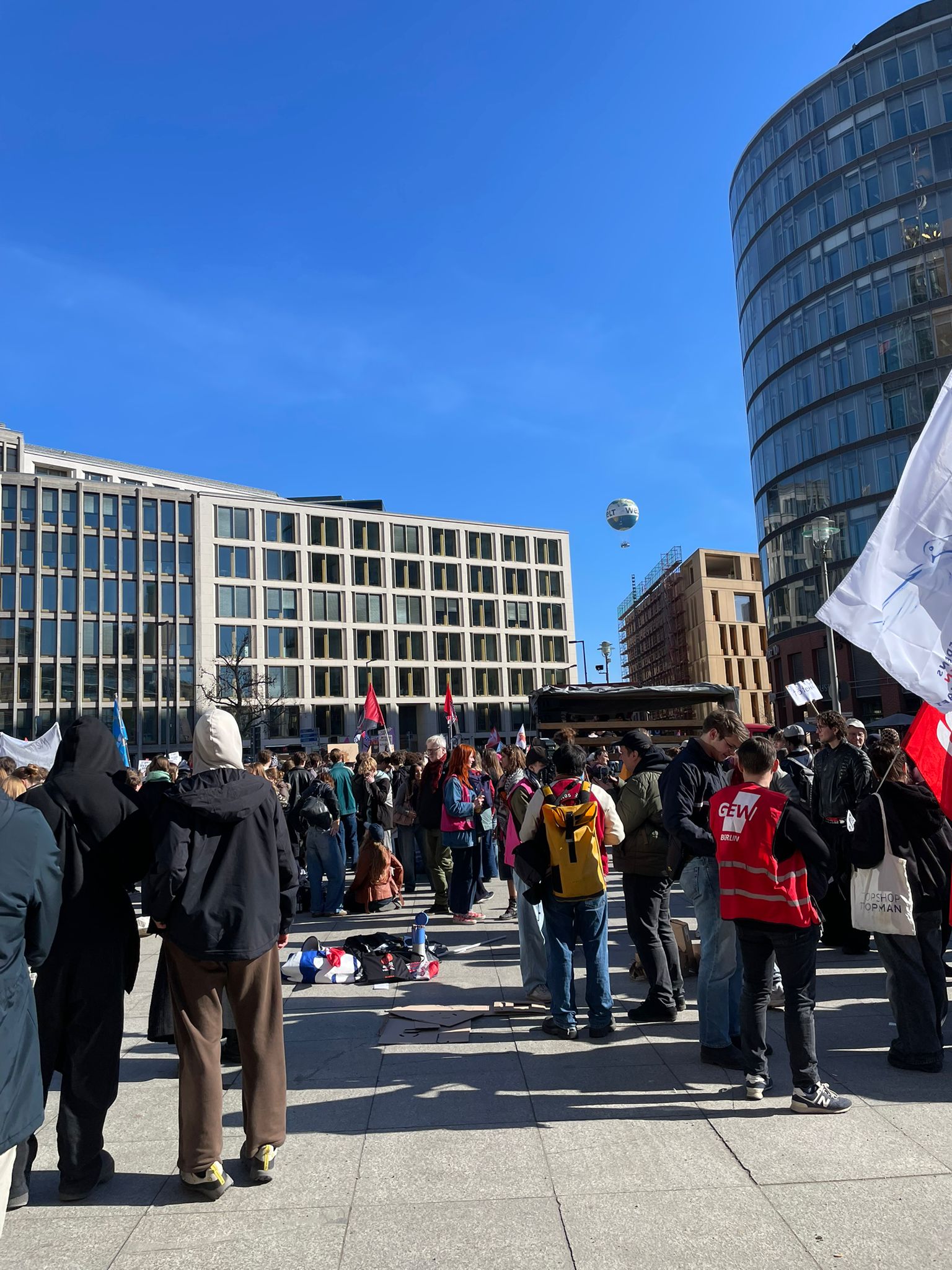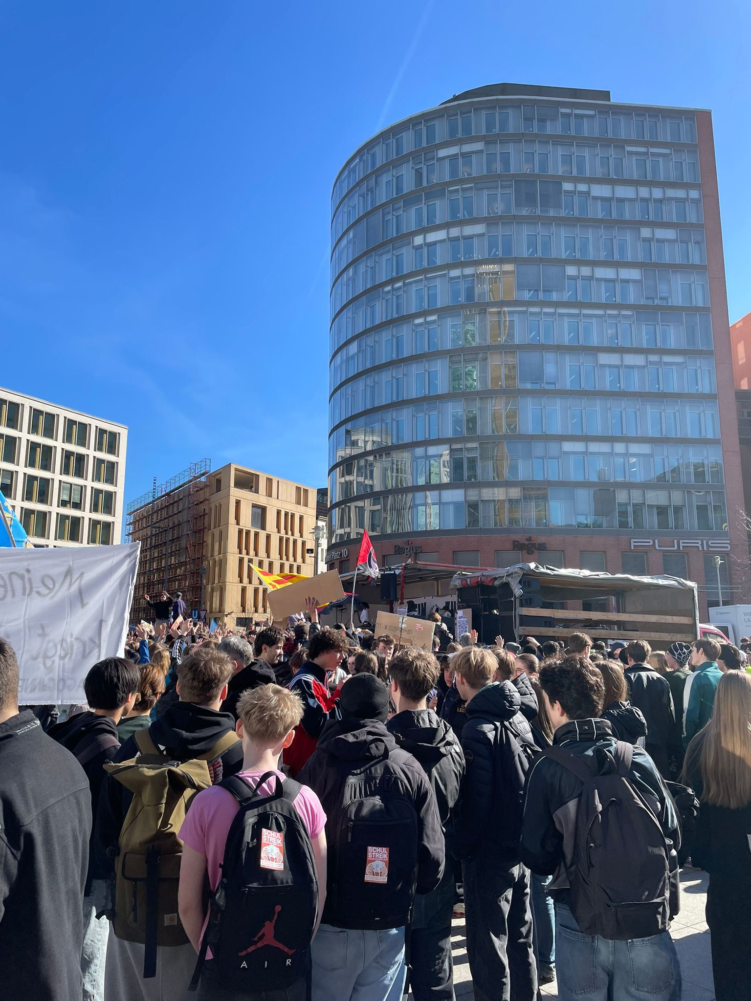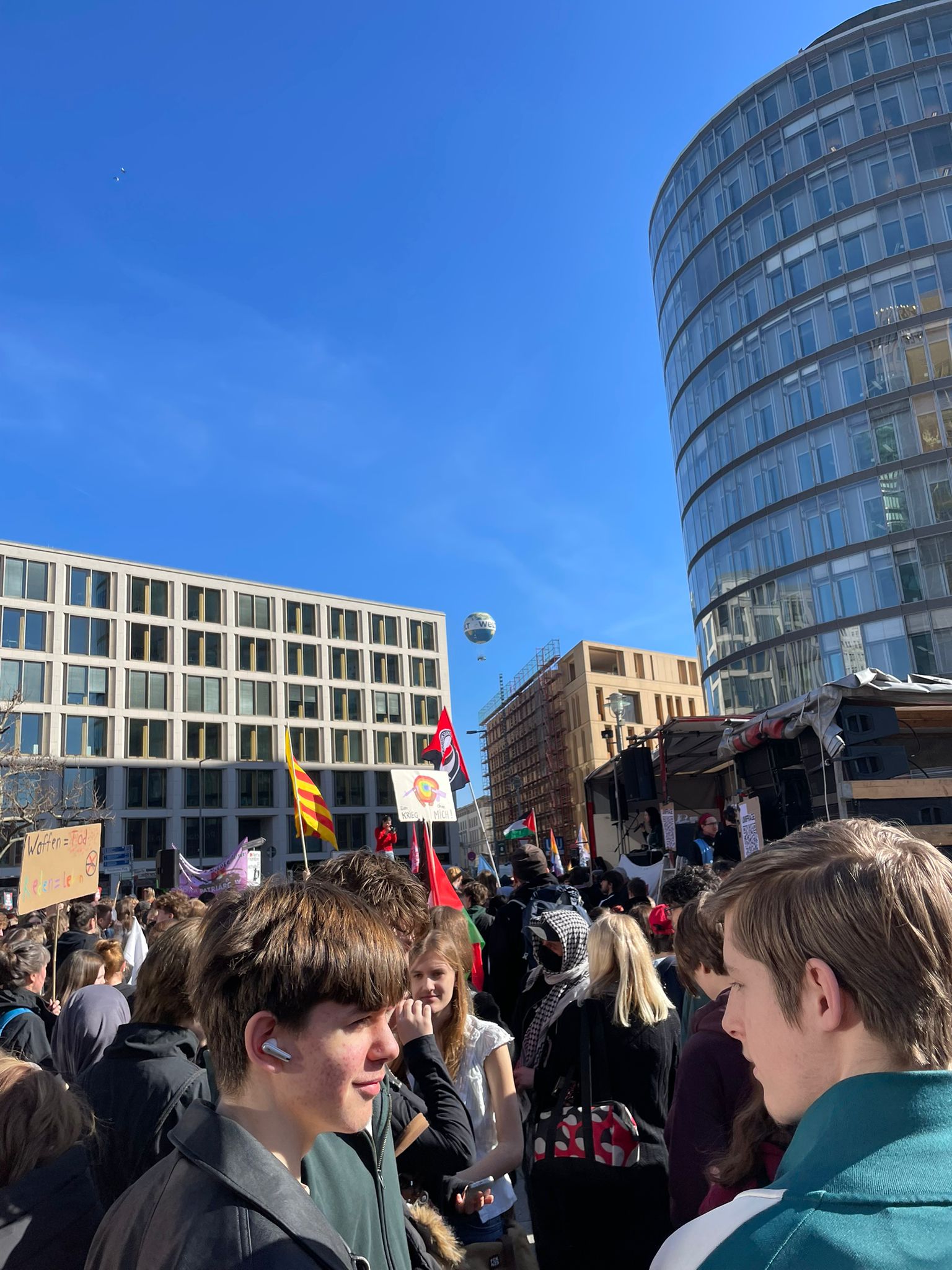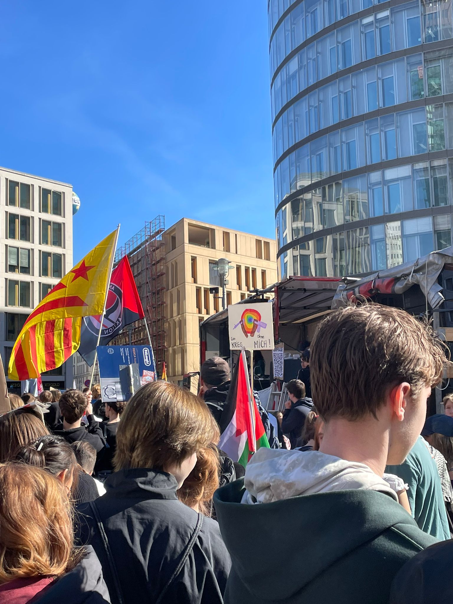 Oggi 5 marzo 2026, a Berlino − più precisamente nella piazza Potsdamer Platz − si è tenuto un corteo di migliaia di studenti e studentesse riuniti per protestare contro la crescente militarizzazione del Paese. Nonostante il blocco dei treni che rendeva difficoltosi gli spostamenti, giovani da tutta la città hanno raggiunto il luogo di aggregazione per lanciare un messaggio chiaro: “no alla leva, no alla guerra!”.