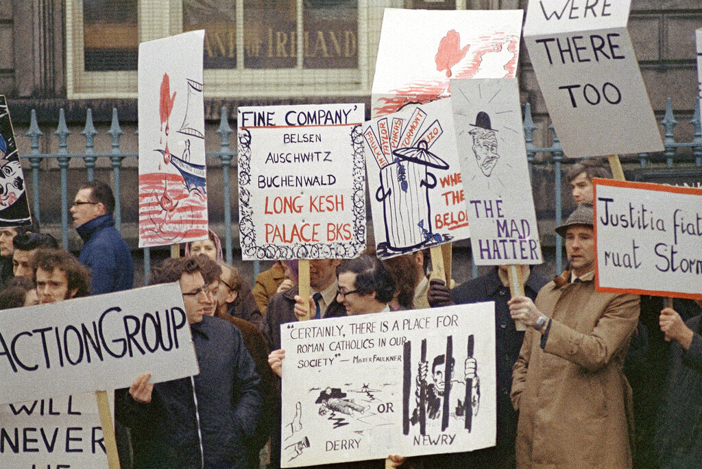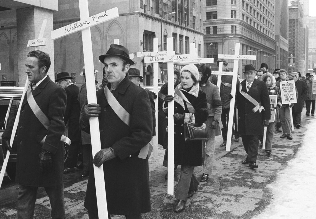 La repressione in atto ha riproposto il dilemma tragico di Bloody Sunday, l’uccisione deliberata di 14 persone inermi avvenuta il 30 gennaio 1972 a Derry nel Nord Irlanda quando il reggimento del primo battaglione dei paracadutisti dell’esercito britannico sparò contro una folla di manifestanti nonviolenti che rivendicavano il rispetto di elementari diritti civili della popolazione appartenente alla componente repubblicana irlandese.