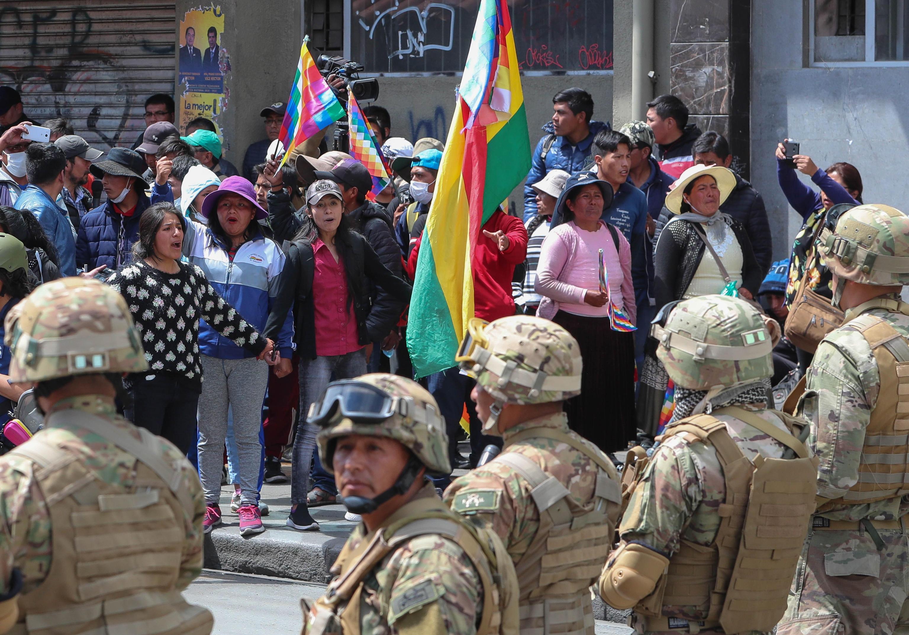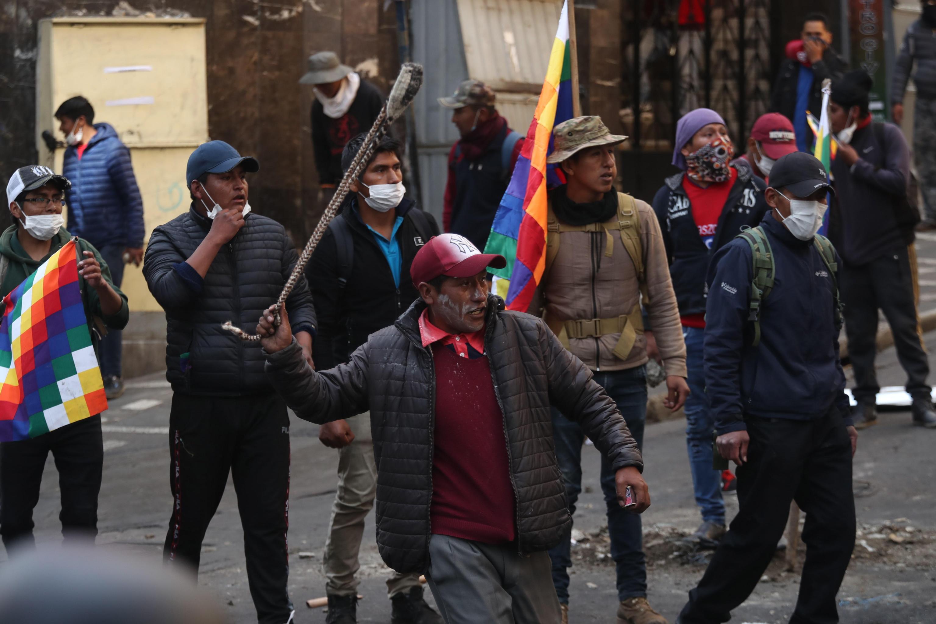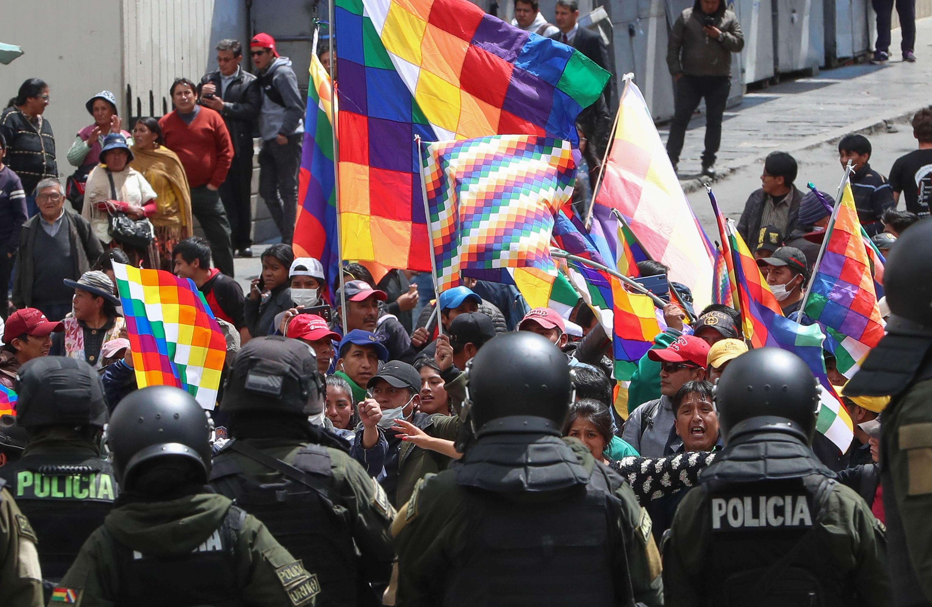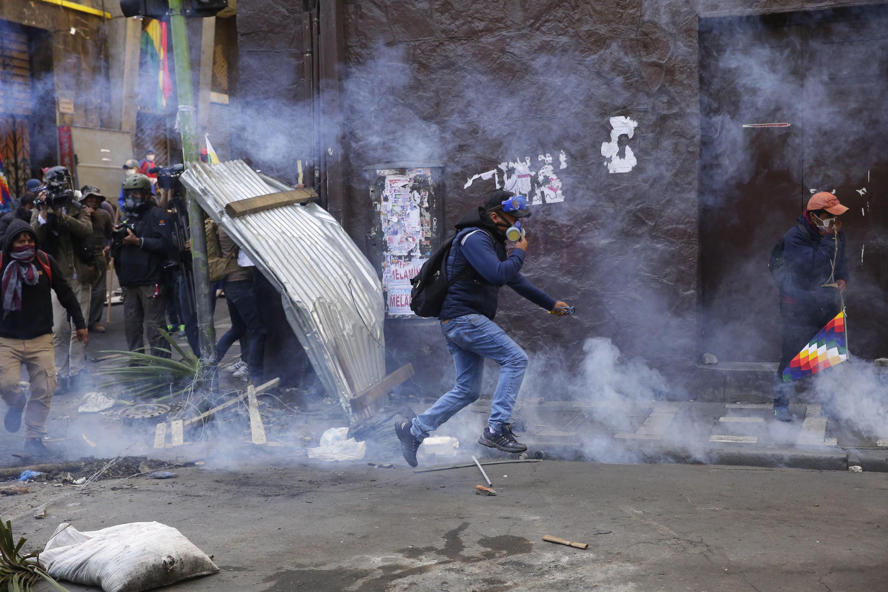 L’esecutivo guidato da Jeanine Ane, capo del governo ad interim della Bolivia, ha disposto la rottura delle relazioni diplomatiche con il Venezuela e il governo di Nicolas Maduro e di conseguenza ha annunciato la relativa espulsione dal Paese di tutti i diplomatici della repubblica del Venezuela. Questo perché durante gli scontri in atto nel Paese, ci sarebbero stati «cittadini venezuelani coinvolti in azioni aggressive la scorsa settimana e trovati in possesso di pistole, uniformi e altri strumenti con cui hanno partecipato alle proteste a sostegno dell’ex presidente Evo Morales». (foto Ansa)