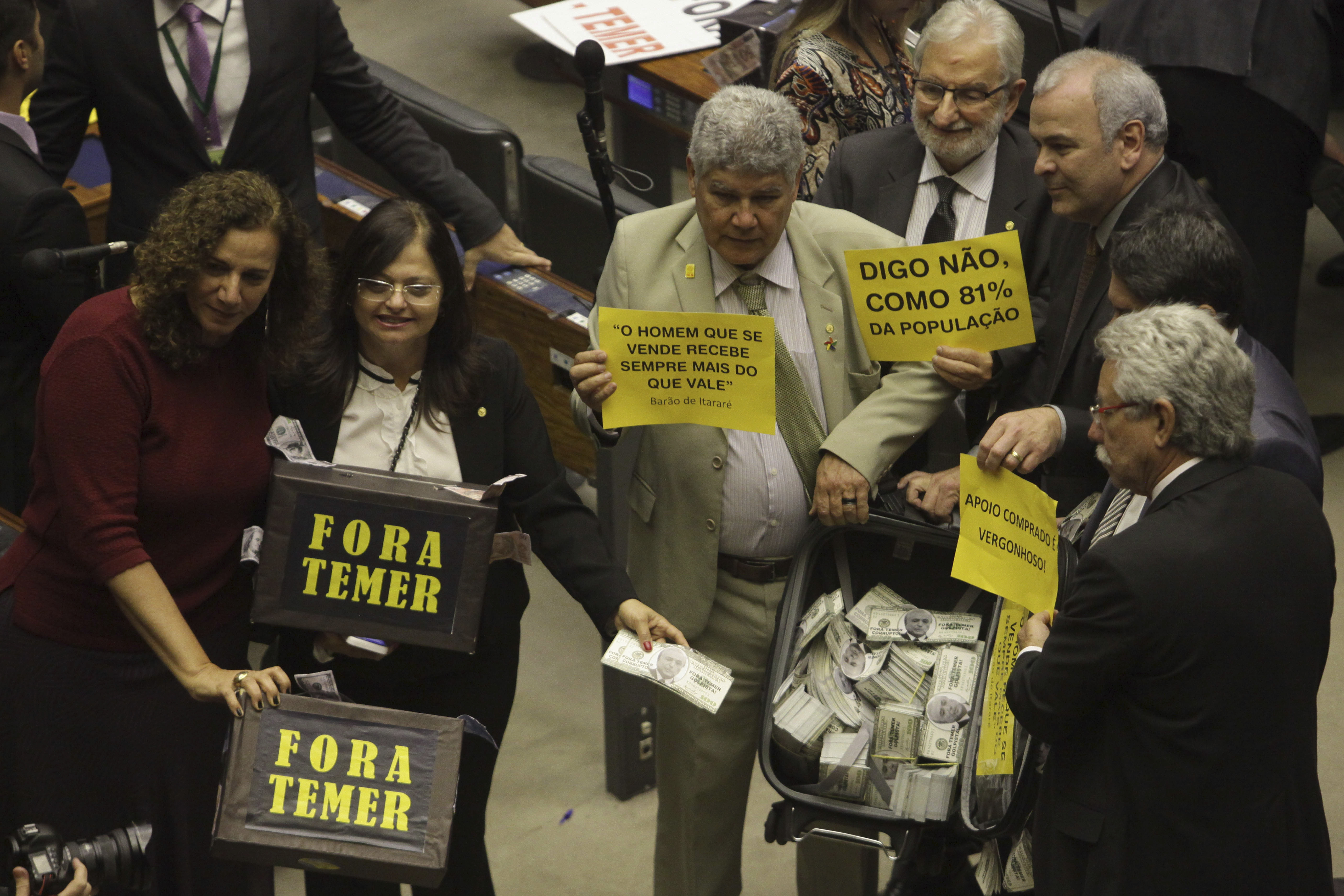 Potrebbe dirsi una crisi scampata, ma la sensazione è che sia solo rimandata: per quanto ieri il presidente brasiliano, Michel Temer, sia riuscito a superare il voto parlamentare che avrebbe potuto sospenderlo dall’incarico, la situazione rimane tesa e tutt’altro che chiara. La ragione del voto, primo passo verso il processo e quindi un possibile impeachment, erano infatti le accuse di corruzione a lui rivolte: tema ricorrente nelle proteste che si sono svolte sia in strada che all’interno dello stesso Parlamento, con le opposizioni che hanno esposto striscioni con scritto “Temer fuori”. In strada, invece, sono comparsi fantocci del presidente che dicevano “Compro voti”; nonché l’immagine dell’ex presidente Roussef, rimossa dal potere appunto in seguito a vicende giudiziarie.