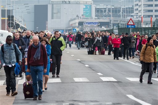Attentato terroristico nella capitale belga. Le prime due esplosioni si sono verificate stamattina alle 8 all'aeroporto internazionale di Bruxelles, nella hall delle partenze vicino al banco dell'American airlines. Un'ora dopo altre due esplosioni alle fermate della metro Malebeek e Schumann, al centro della città, vicino alle sedi istituzionali dell'Unione europea. Al momento le vittime accertate sarebbero 31, decine i feriti. Sospettata, ma non ancora confermata, la matrice terroristica (foto Ansa).