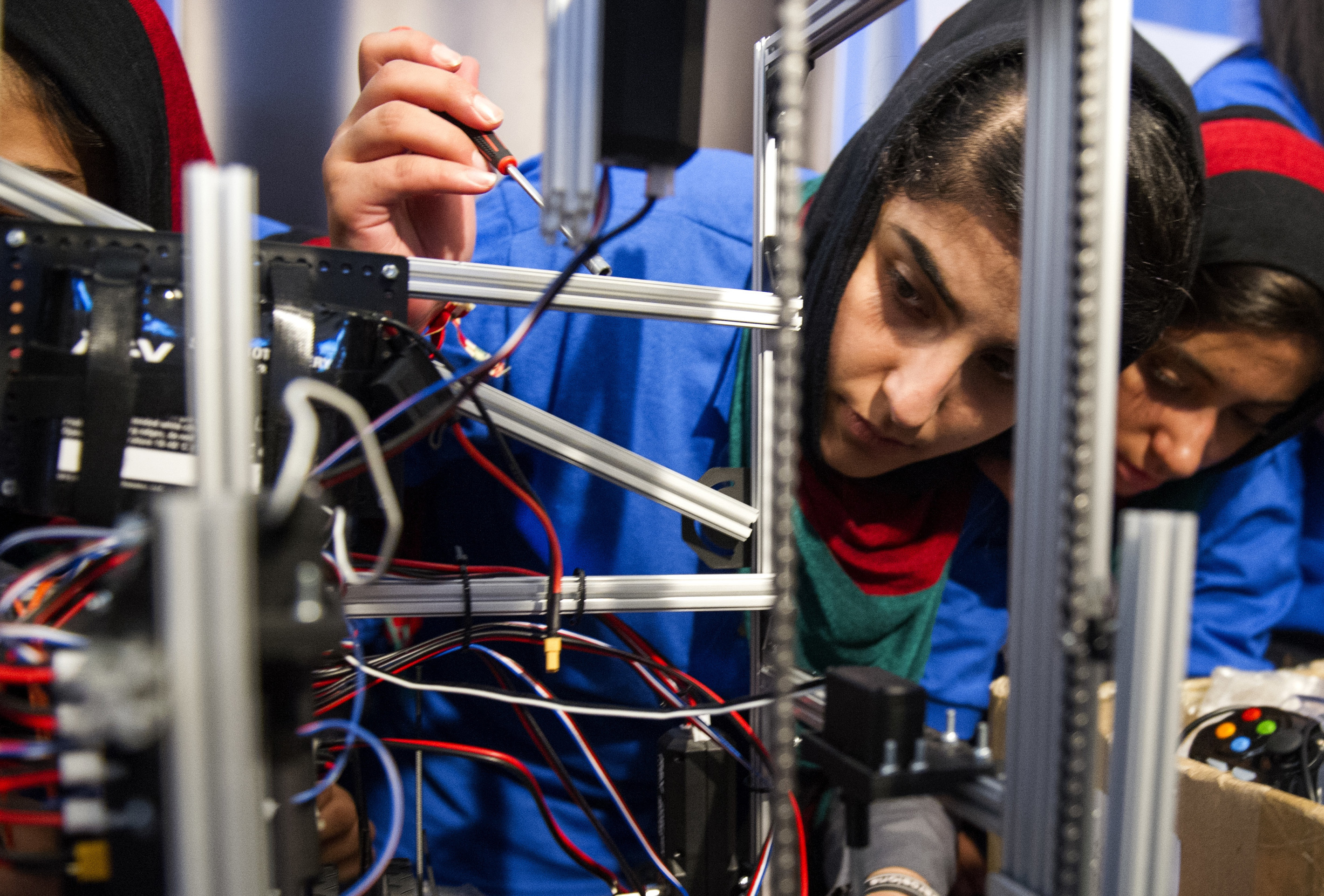 Si stanno tenendo in questi giorni a Washington (Usa) i primi campionati mondiali giovanili di robotica, a cui partecipano ragazzi e ragazze da oltre 150 Paesi. E per l’Afghanistan si tratta di un debutto il rosa: la squadra è infatti interamente femminile, ed è giunta negli Usa – capitanata da Lisa Azizi, nella foto mentre lavora ad una delle loro creazioni – dopo essersi vista rifiutare il visto per ben due volte in base alle nuove leggi sull’immigrazione. Qualunque sia l’esito del campionato, le ragazze possono dire di aver già vinto una sfida non da poco.