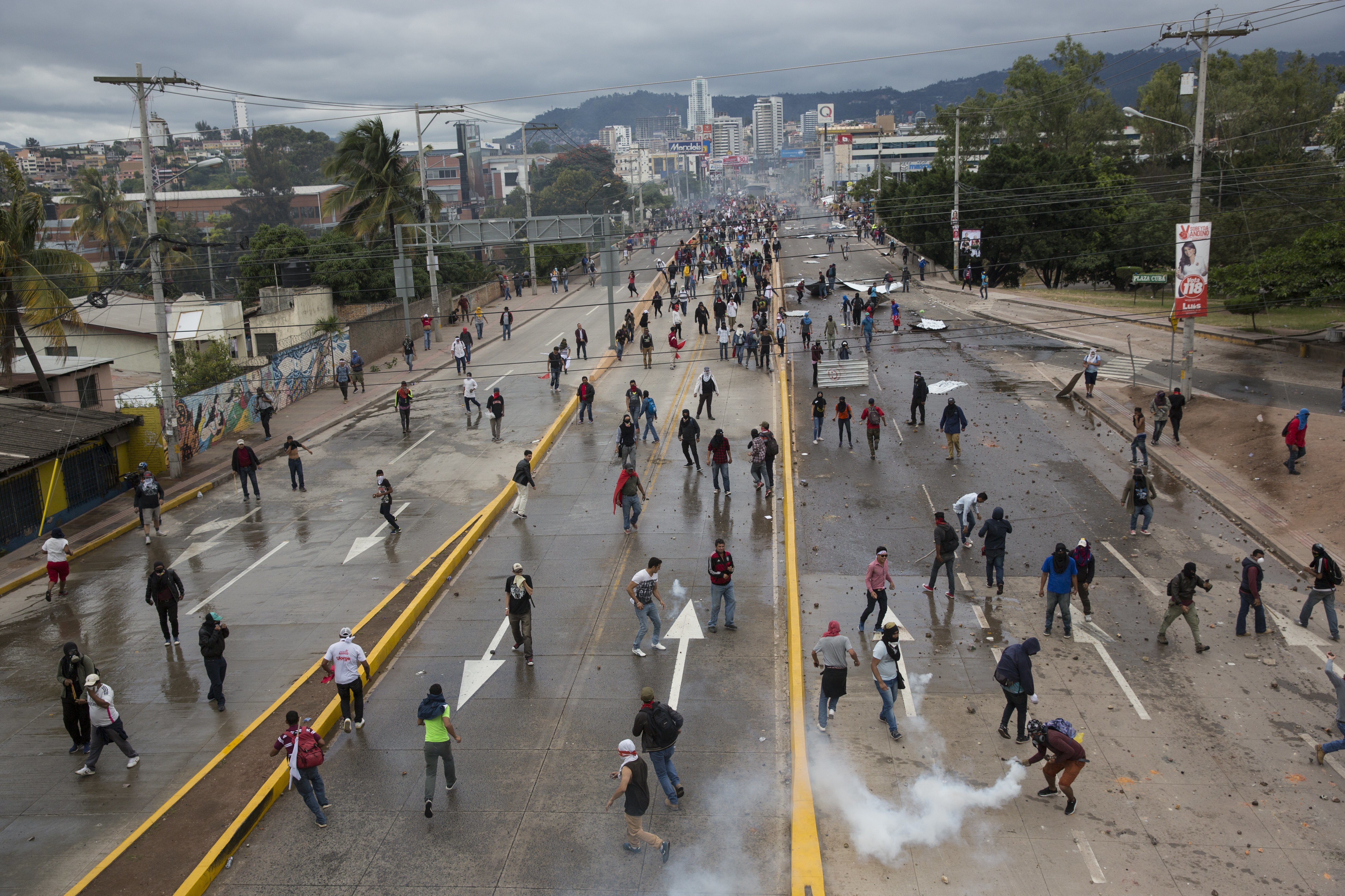 Anche se le elezioni ci sono state più di 5 giorni fa, non terminano gli scontri per le strade del Paese e della capitale, Tegucigalpa, barricate in fiamme erette dai sostenitori del candidato presidenziale Salvador Nasralla, per protestare contro i risultati che hanno portato in carica Juan Orlando Hernandez a un vantaggio crescente. Il candidato dell’opposizione, che ha visto evaporare il suo vantaggio di 5 punti afferma che non riconoscerà un conteggio ufficiale dei voti da parte della corte elettorale del Paese e lamenterà la manipolazione delle elezioni di domenica scorsa. (foto Ap)