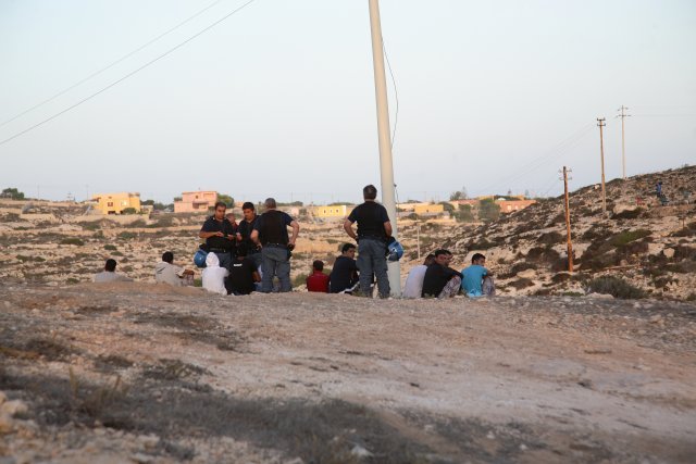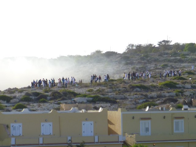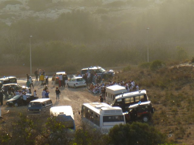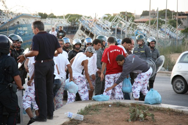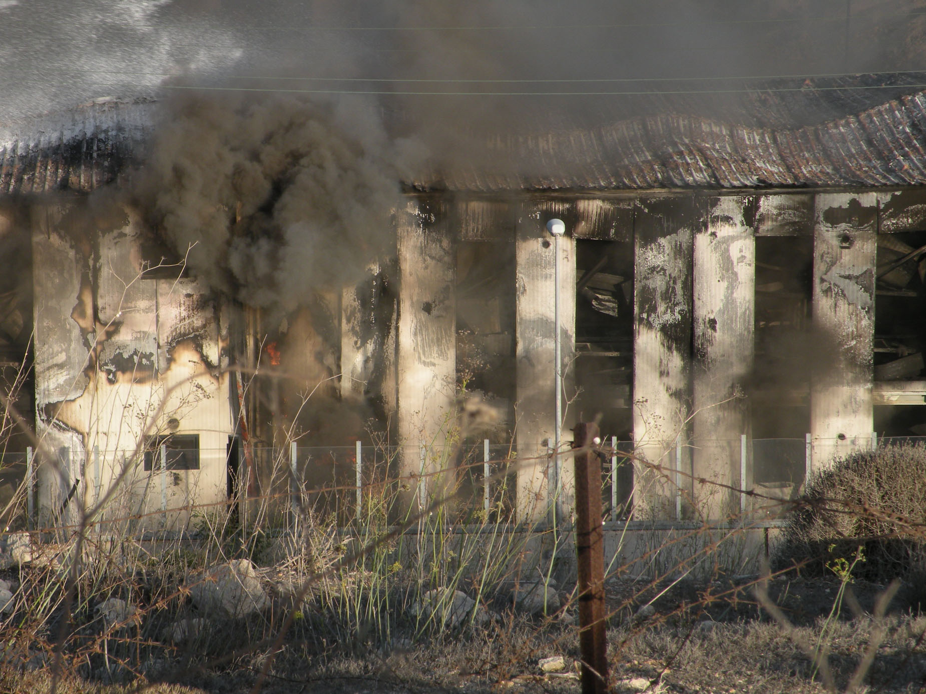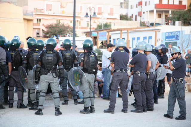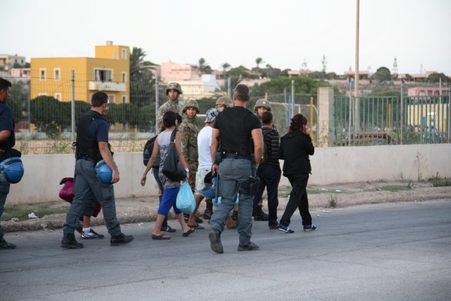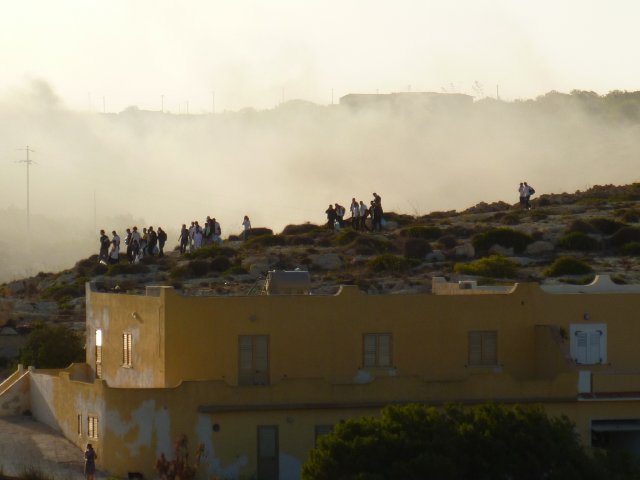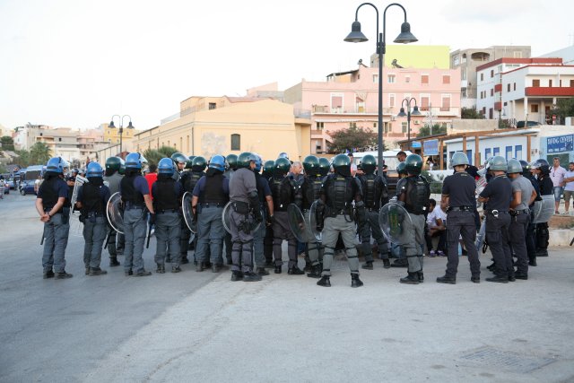 A fuoco i capannoni degli alloggi, mentre gli immigrati scortati dagli agenti si allontanano da contrada Imbriacola. Dalla nostra corrispondente