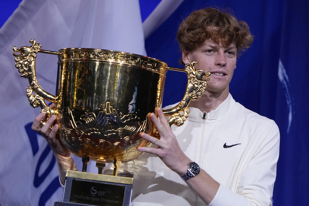 Jannik Sinner ha fatto l’impresa. Per la prima volta è riuscito a sconfiggere Daniil Medvedev, battendolo 7-6, 7-6 e vincendo così il China Open. Alla fine, soddisfattissimo, ha ringraziato lo sfidante per “avermi fatto vincere almeno una una partita contro di lui”. A Pechino Sinner era andato con il suo solito motto: per vincere o per imparare. Del resto, il tennista ha solo 22 anni: la strada per lui è ancora lunga (foto Andy Wong per Ap).