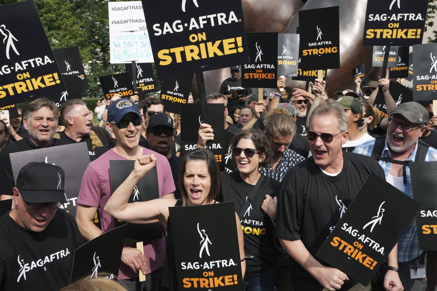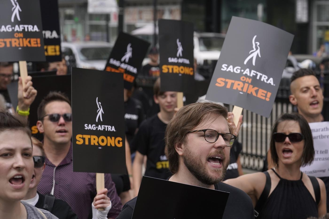 Da venerdì è bloccata ogni attività cinematografica per la produzione di serie e film. Il sindacato Sag-Aftra richiede un nuovo contratto alla Amptp, la confederazione dei produttori, ma è stato rifiutato ogni compromesso. Il sindacato rappresenta circa 160.000 attori, di cui il 95% guadagna in media 25.000 dollari all’anno, mentre i dirigenti di produzione (Apple, Netflix, Amazon, Disney, Paramount e Comcast) guadagnano centinaia di milioni di dollari. In bilico a questo punto non c’è solo il contratto, ma per molti l’impiego stesso, nonché la copertura sanitaria. Nonostante questo sembra che lo sciopero possa durare a lungo, probabilmente fino all’autunno; e la prima grande manifestazione che potrebbe risentirne è Il Festival di Venezia a secco di star e registi americani… (foto Lapresse)