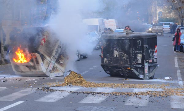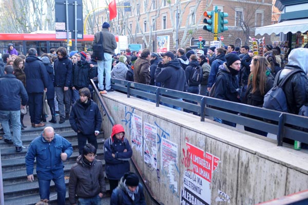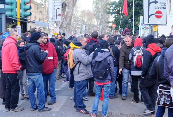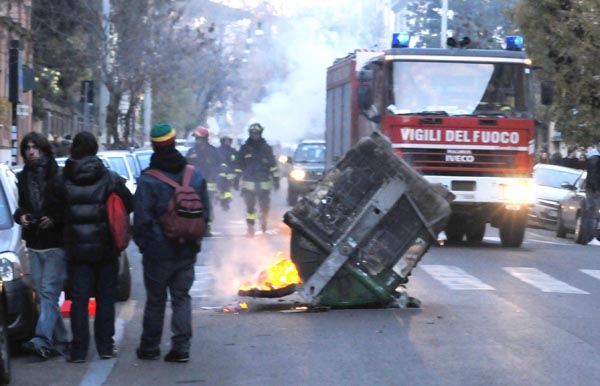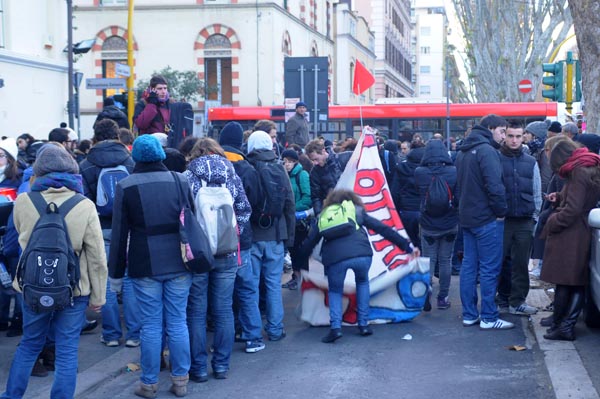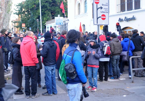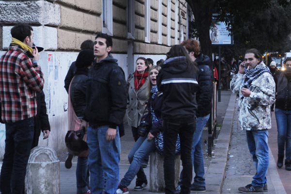 Una sequenza di foto sulle proteste degli studenti sotto la sede di Città Nuova