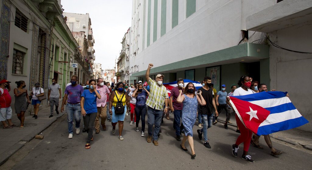 Si moltiplicano le manifestazioni e gli scontri, nella capitale l’Avana, contro il governo cubano. Il Paese affronta la peggiore crisi economica da decenni. Le autorità hanno bloccato i siti di social media nel tentativo di fermare il flusso di informazioni dentro, fuori e all’interno della nazione assediata. Il governo cubano ha accusato gli Usa di fomentare le violenze; accusa rigettata fermamente dal governo Biden. Contemporaneamente ad Haiti, dopo l’assassinio del presidente Jovenel Moise, cresce la violenza delle bande, mentre le famiglie sfollano dalla capitale. Politici e funzionari vengono interrogati nell’ambito delle indagini (AP Photo/ Eliana Aponte, Fernando Llano, Matias Delacroix)
