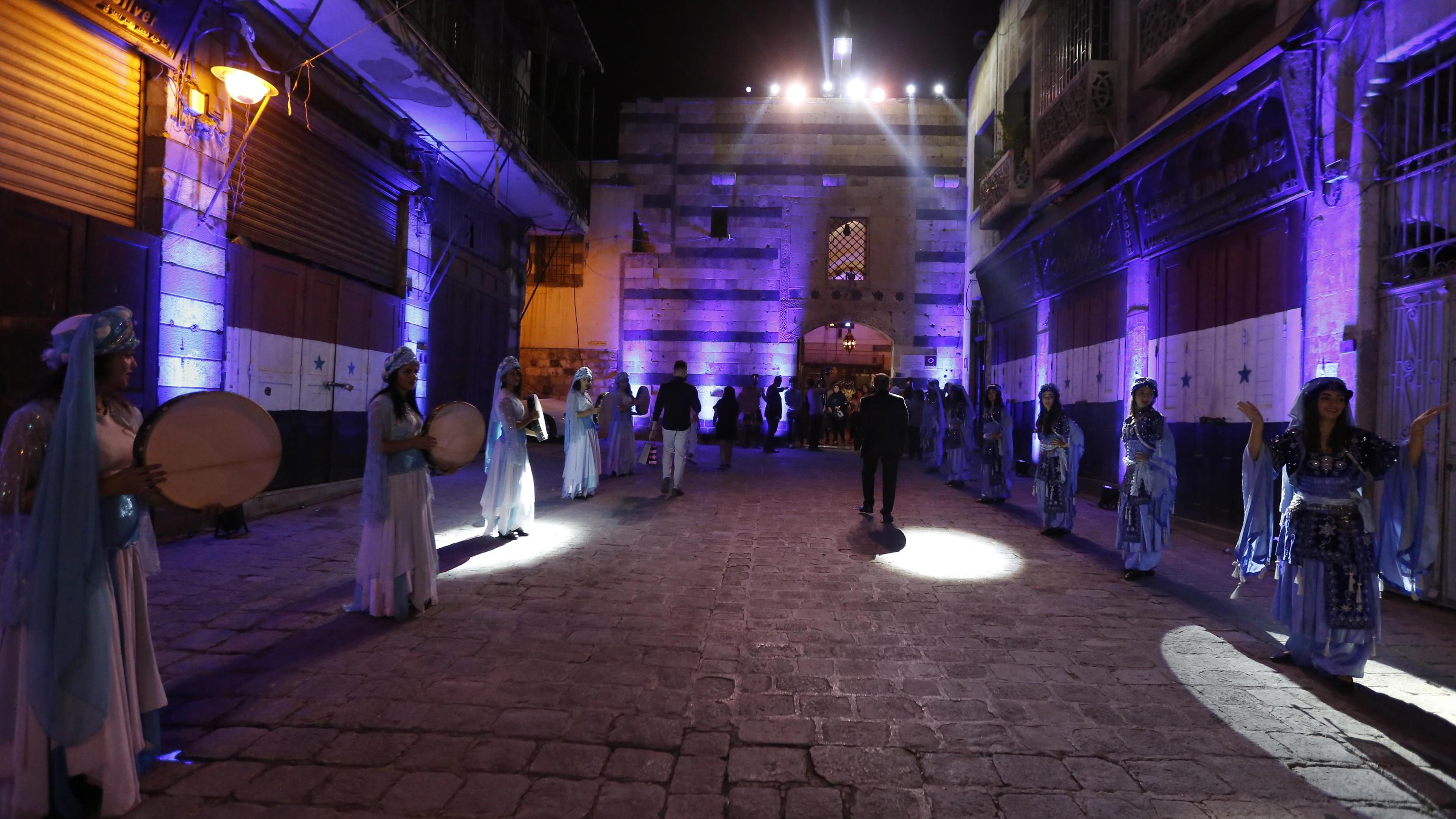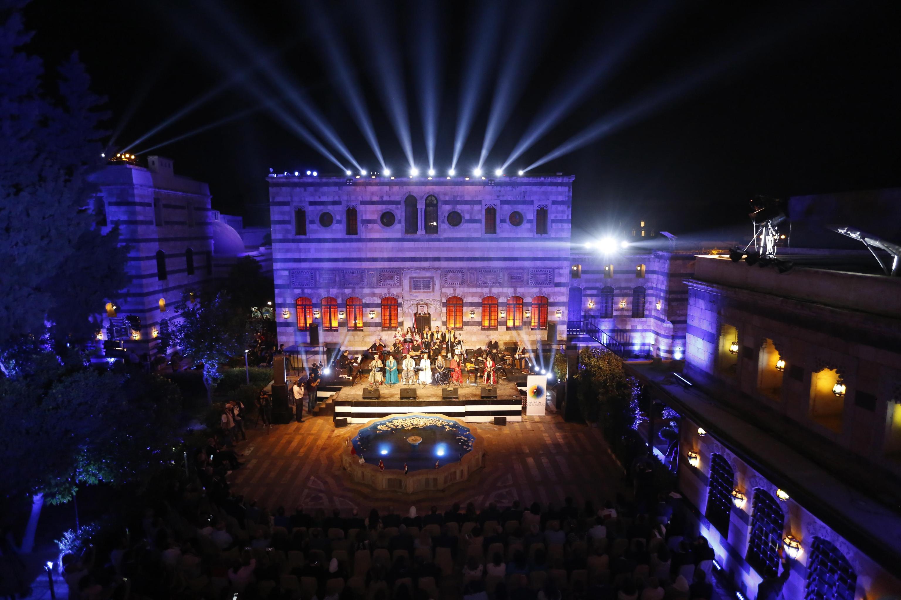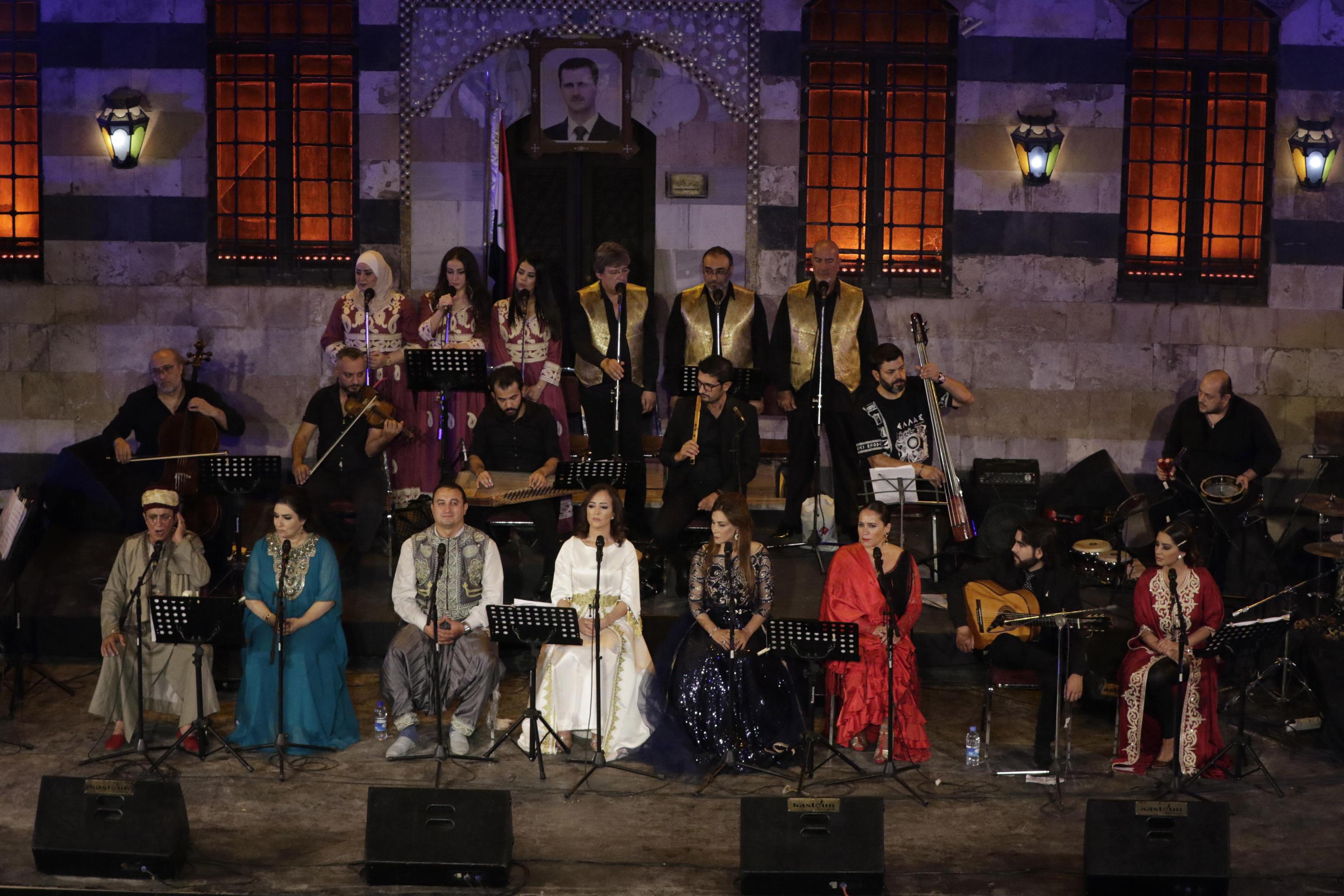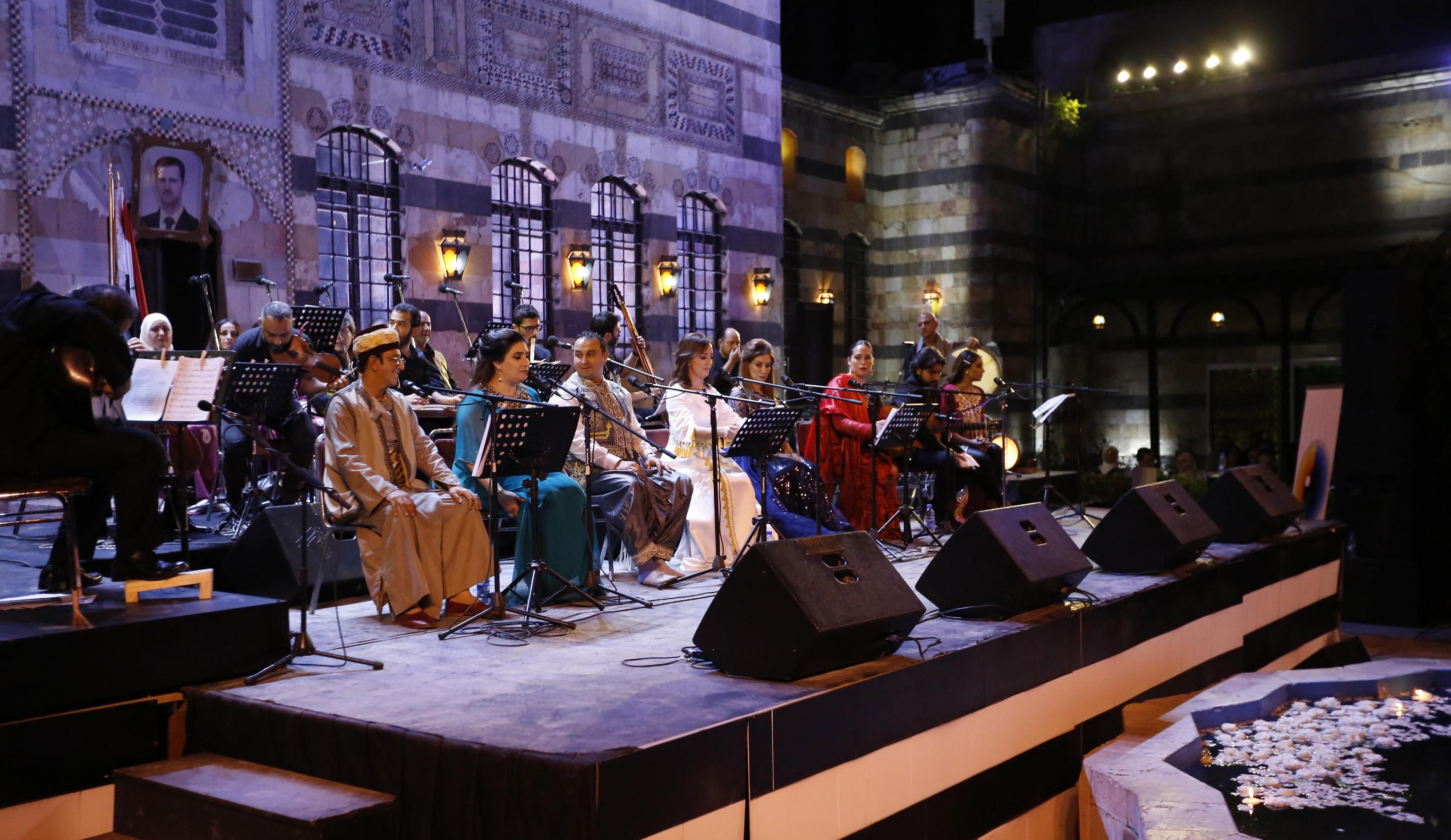 Cantanti provenienti da Paesi arabi ed europei hanno partecipato a un concerto che si è tenuto nello storico Azm Palace, nella città vecchia di Damasco, in Siria. Il concerto, intitolato "Il viaggio di al-Mowashah (una sorta di canto poetico che risale al IX secolo) dall'Andalusia ad al-Sham". L'evento è stato organizzato dai ministeri siriani della cultura e del turismo con la collaborazione dell'Associazione Ein al-Fonoun. (foto Ansa)