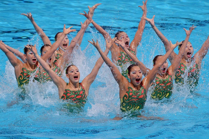 Ai Mondiali di nuoto 2013 che si stanno disputando a Barcellona, in Spagna, sono state particolarmente suggestive le prove di nuoto sincronizzato. Nelle foto l'esibizione delle squadre vincitrici: prima classificata la Russia, seguita da Spagna e Ucraina. Quarto il Giappone, quinta l'Italia (foto LaPresse).