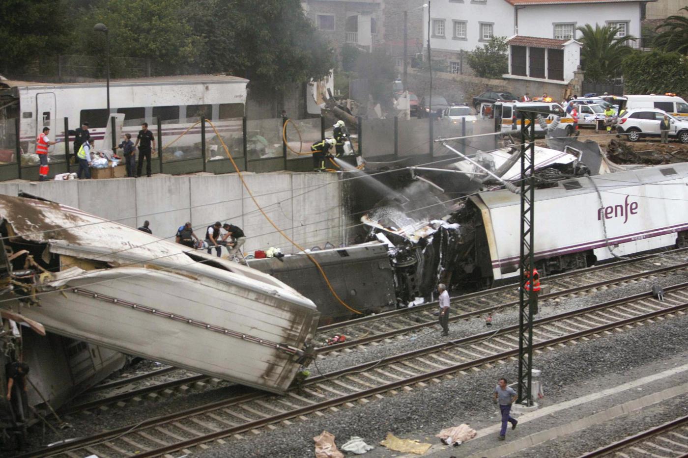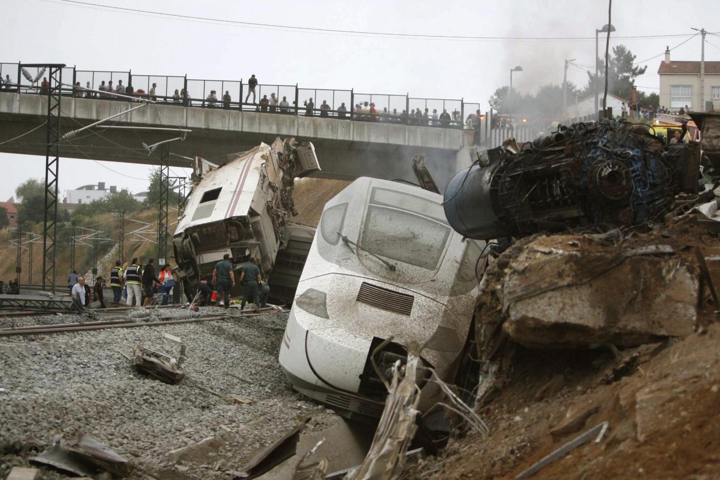Sono spaventose le immagini dell'incidente che si è verificato ieri sera nei pressi di Santiago di Compostela, nel nord della Spagna. Un treno ad alta velocità con 222 passeggeri a bordo è deragliato, provocando la morte di 78 persone, oltre al ferimento di oltre 140 persone, alcune delle quali sono in condizioni molto gravi. Tra le cause dell'incidente potrebbe esserci l'alta velocità alla quale procedeva il convoglio: quasi il doppio degli 80 km orari consentiti in quel tratto. L'incidente è avvenuto alla vigilia della festività di San Giacomo, che ricorre oggi, per cui le celebrazioni previste sono state annullate (foto Ap).
