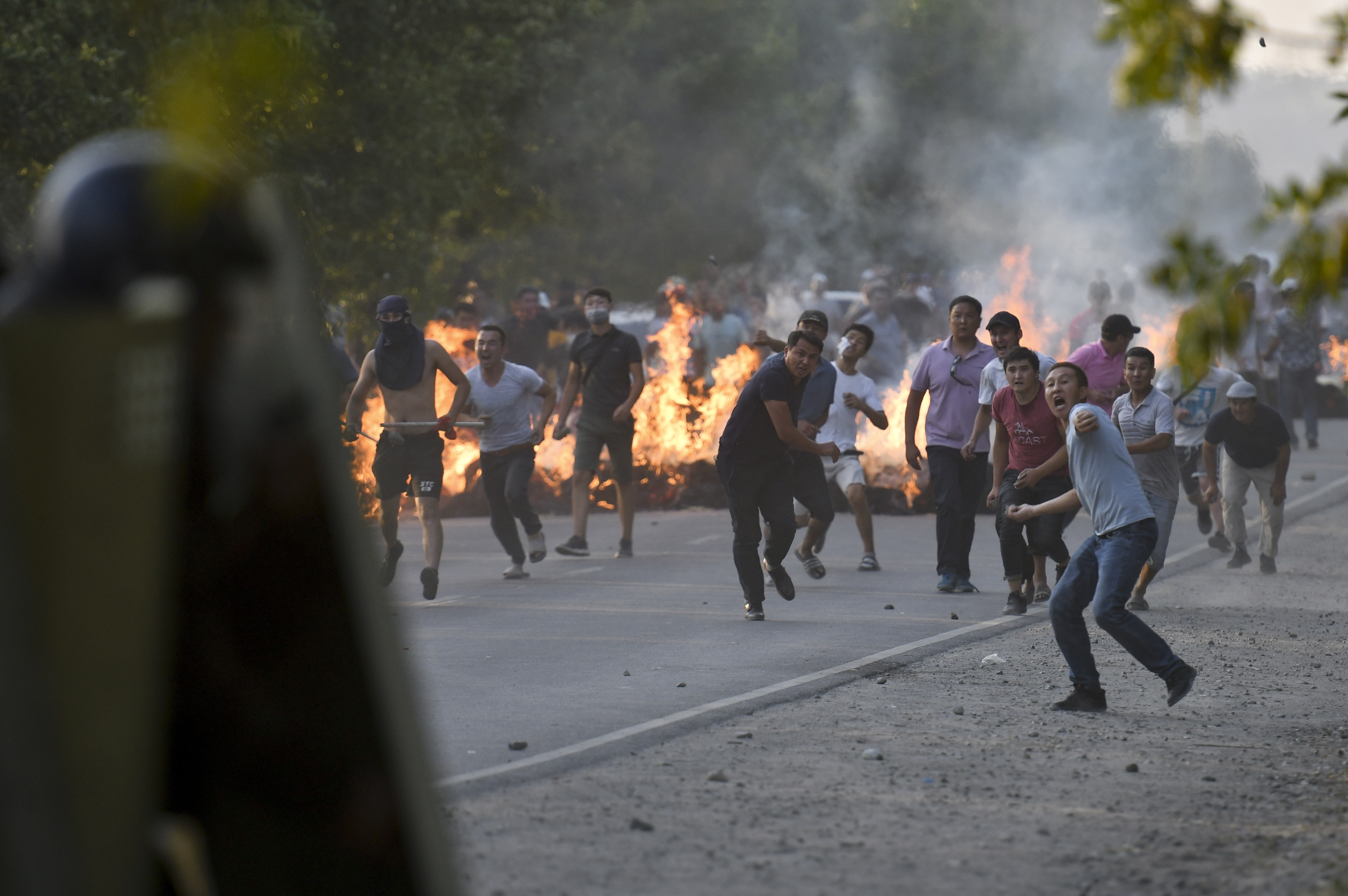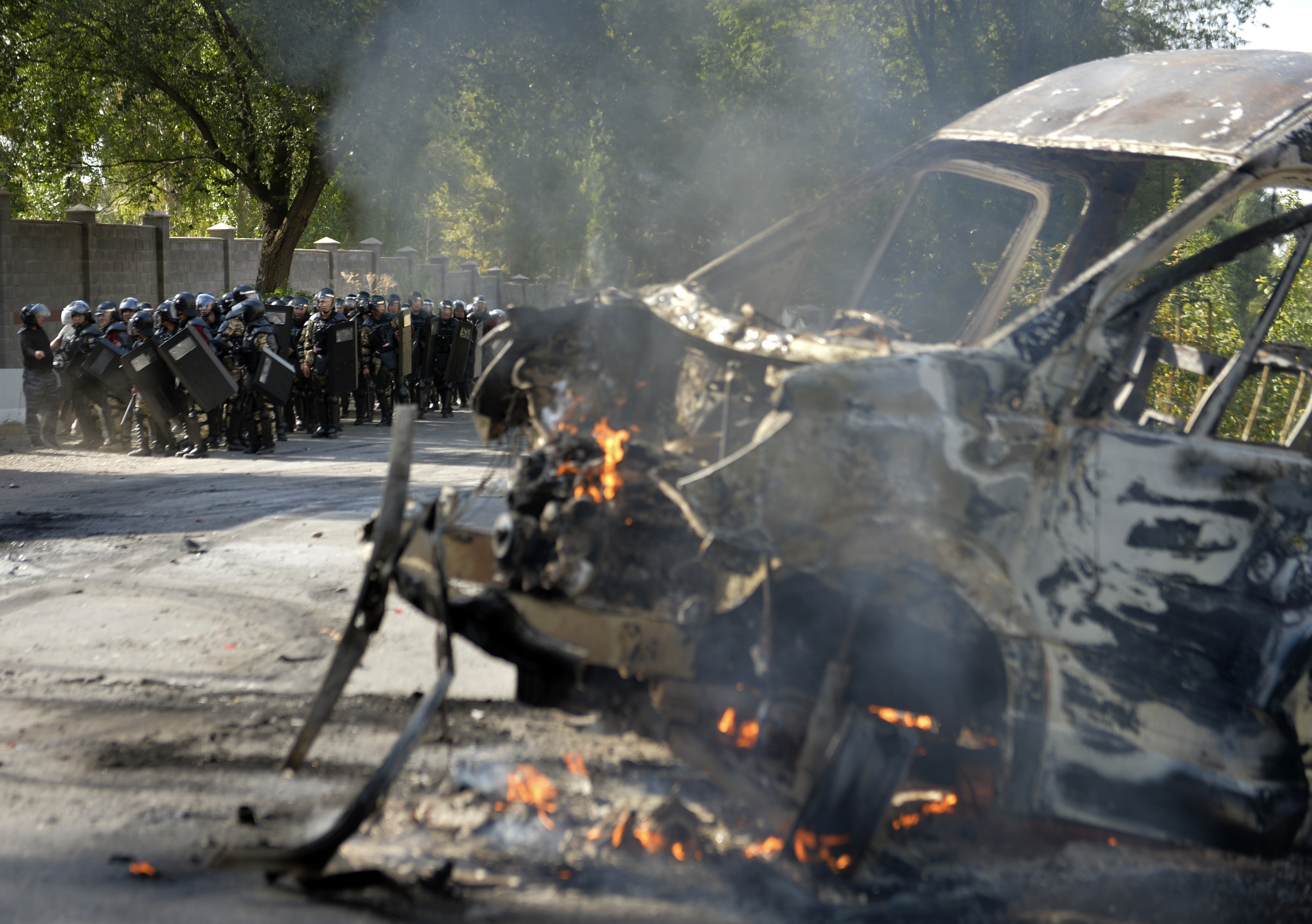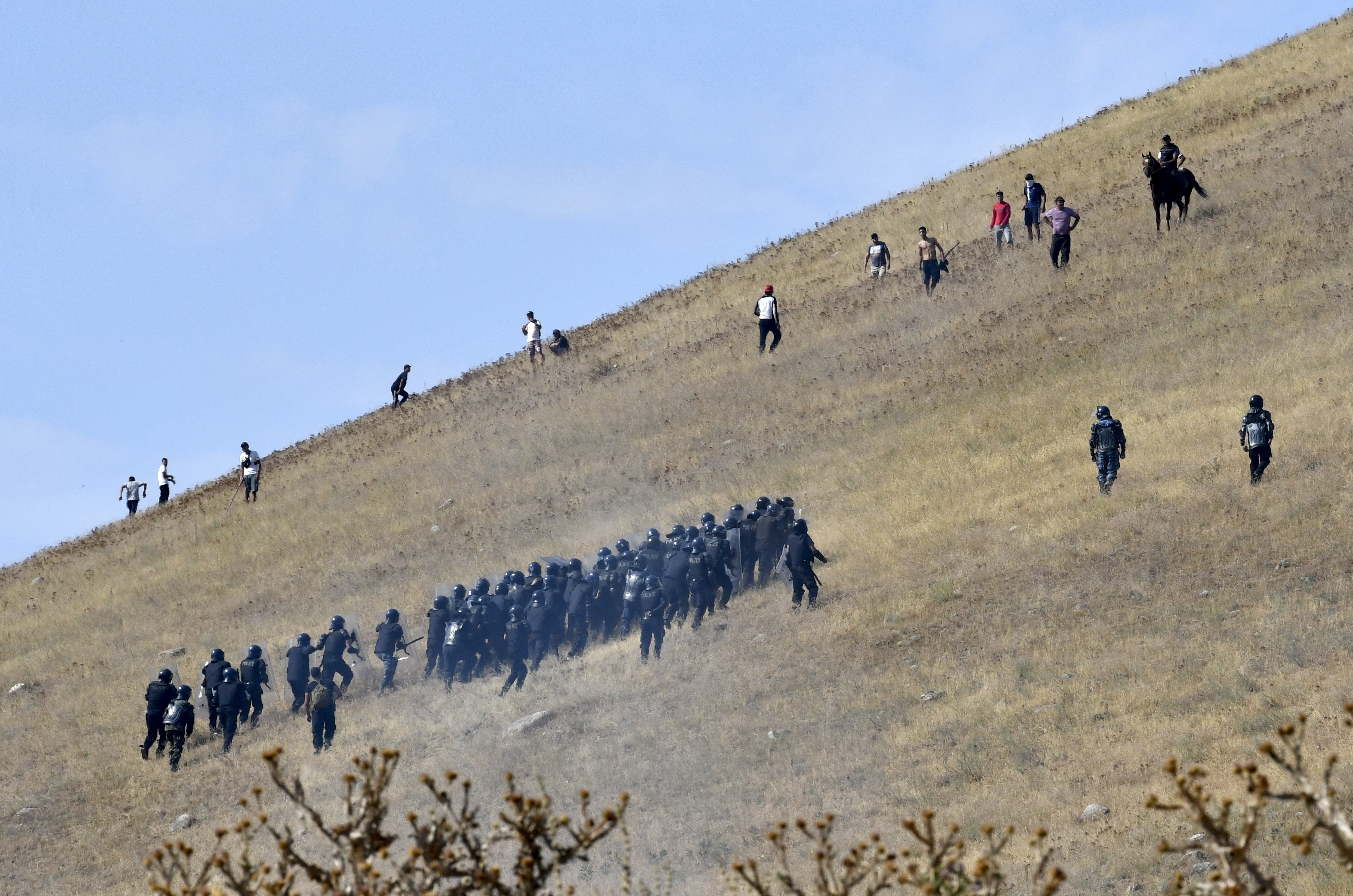 Le forze di sicurezza kirghise hanno arrestato l’ex presidente Almazbek Atambayev, che si sarebbe consegnato agli agenti e non sarebbe stato ferito. I suoi sostenitori però non si sono dati per vinti e hanno lanciato pietre contro la polizia antisommossa. Gli scontri sono avvenuti vicino alla residenza di Atambayev, nel villaggio di Koi-Tash, 20 chilometri a sud della capitale, Bishkek. Alla base di tutto ci sono le rivalità etniche tra kirghizi e minoranza uzbeka. (Foto AP / Vladimir Voronin)