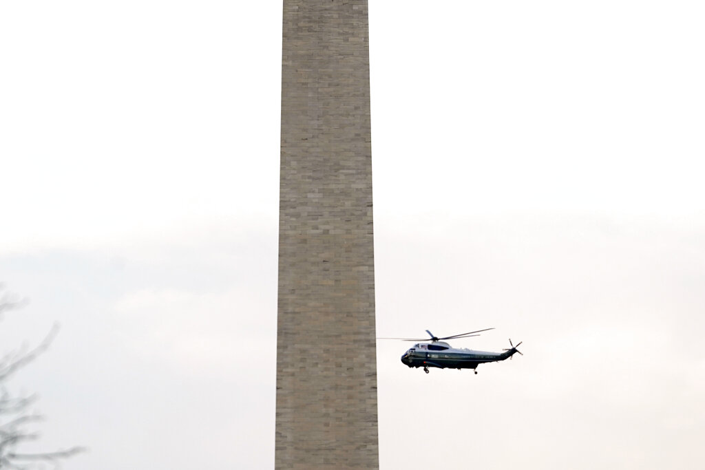 Subito prima dell’insediamento del nuovo presidente degli Usa, Donald Trump lascia la Casa Bianca diretto verso il suo resort in Florida. L’elicottero che lo porta, insieme a Melania Trump, nel suo ultimo viaggio presidenziale sorvola la capitale. Nel frattempo Joe Biden e Kamala Harris partecipano alla messa nella cattedrale di san Matteo apostolo a Washington.