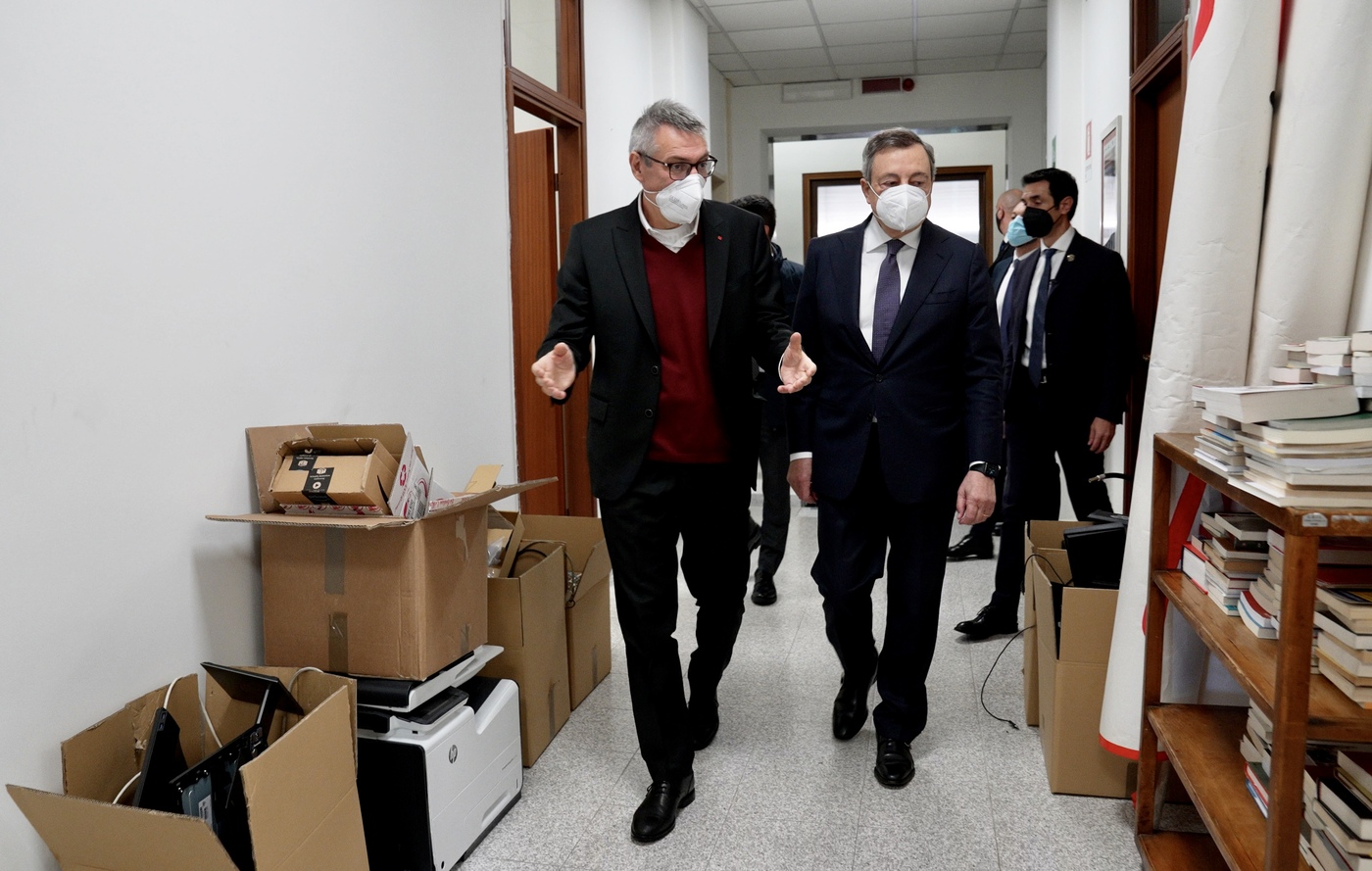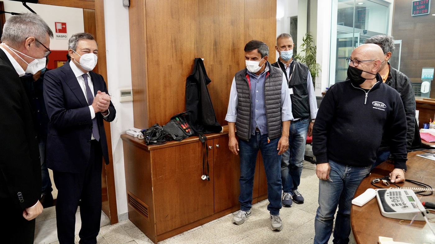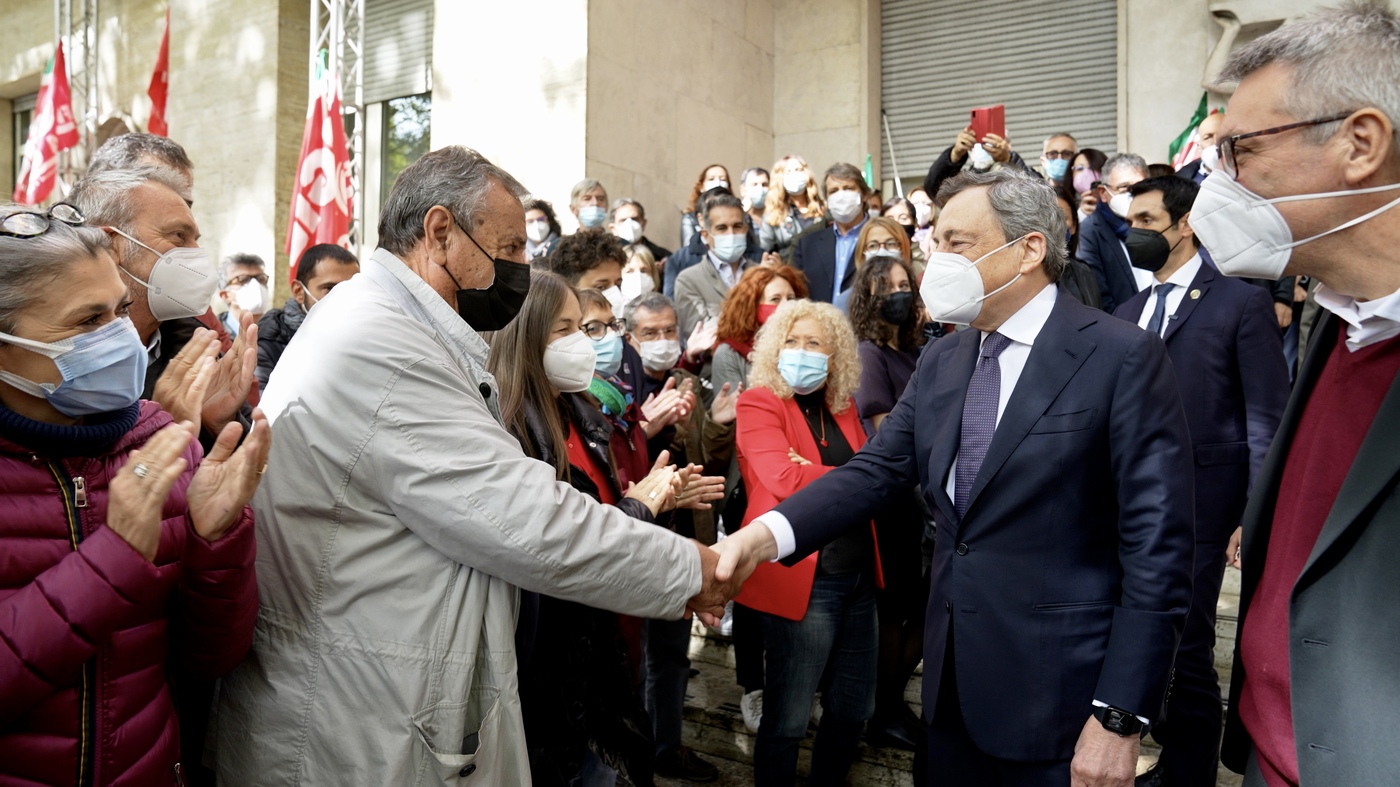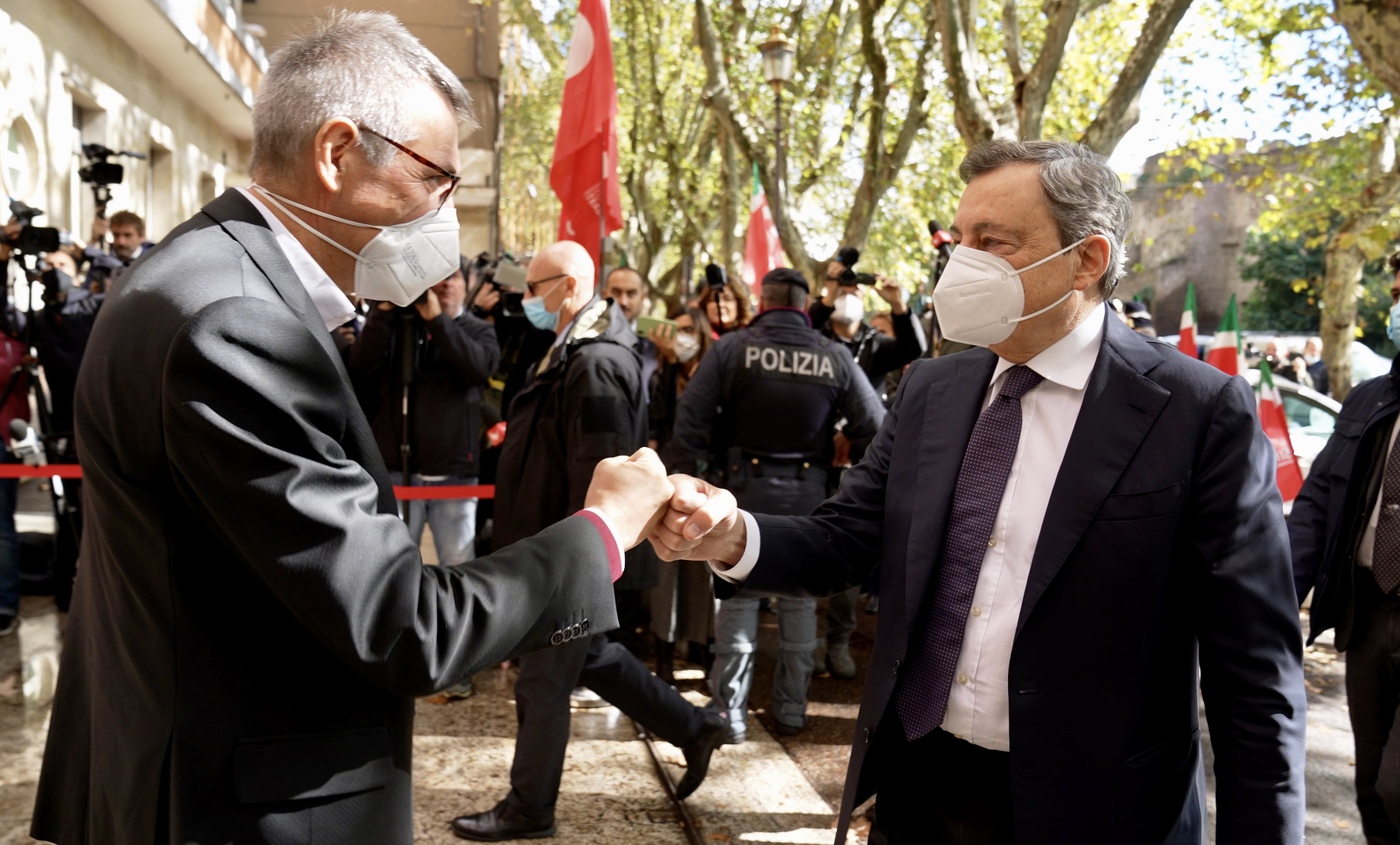 Il presidente del Consiglio Mario Draghi ha fatto visita alla sede nazionale della Cgil per portare la solidarietà del governo al segretario Maurizio Landini, dopo l’assalto subito sabato dalla sede del sindacato.