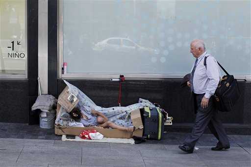 Nuova Delhi, India: sono tante le persone che, non avendo una casa, dormono sui marciapiedi. In un caldo pomeriggio, una famiglia riposa in una tenda a Islamabad, in Pakistan. Un uomo riposa su una panchina a Pechino, in Cina. Una donna ha creato con i cartoni la sua per strada a Madrid (foto Ap).