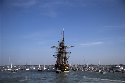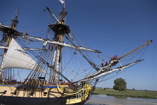Sta effettuando in questi giorni le prove in mare dopo 17 anni di lavorazione la ricostruzione della settecentesca fregata francese guidata dal giovane marchese La Fayette che attraversò l’oceano per combattere a fianco degli americani per l’indipendenza nel 1780. Affondò per essersi incagliata nel 1793. L’anno prossimo 70 privilegiati avranno la fortuna di potere ripetere la traversata a bordo dell’Hermione fino a Boston per sbarcare proprio il 4 luglio, festa dell’indipendenza. (foto Ap)