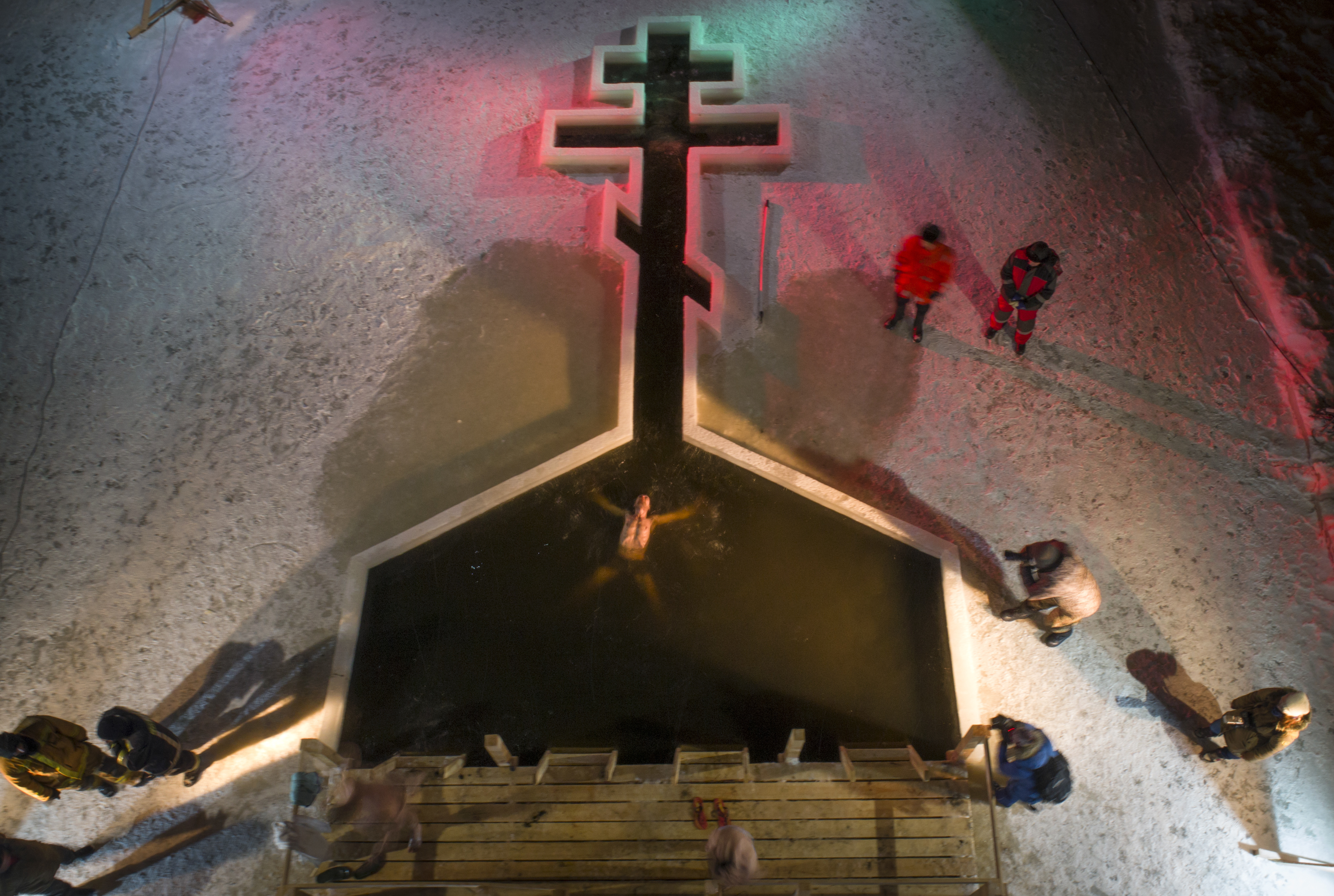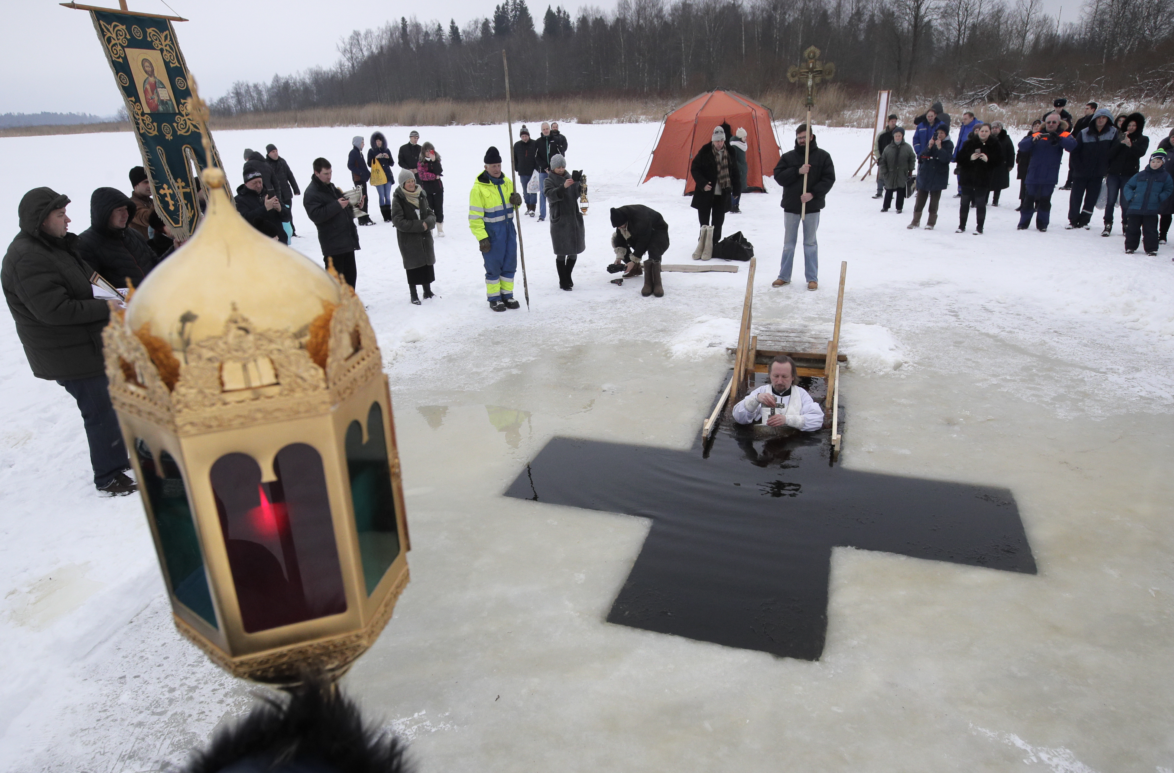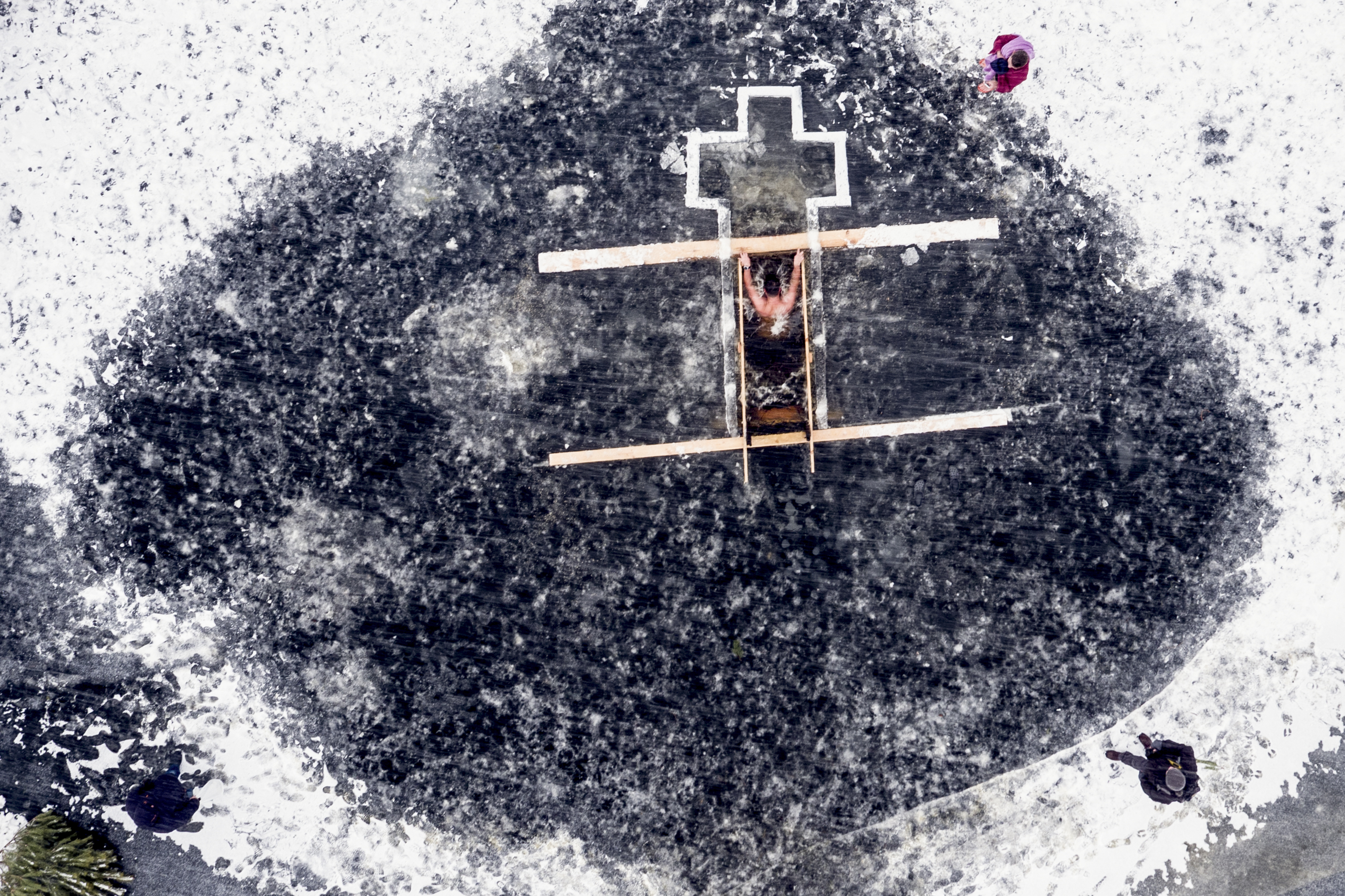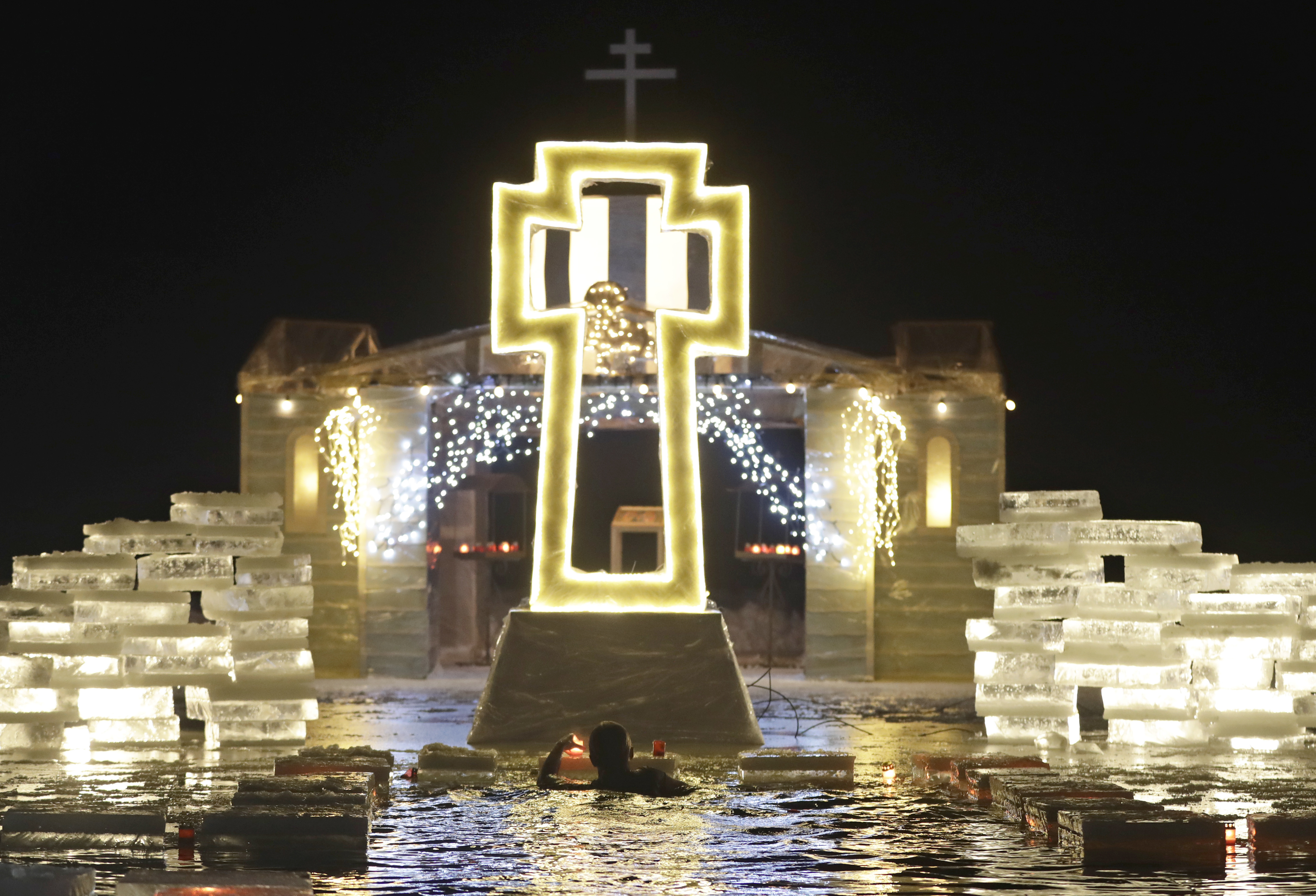 Fedeli si immergono nell’acqua gelata per celebrare l’epifania ortodossa. (foto Ap)