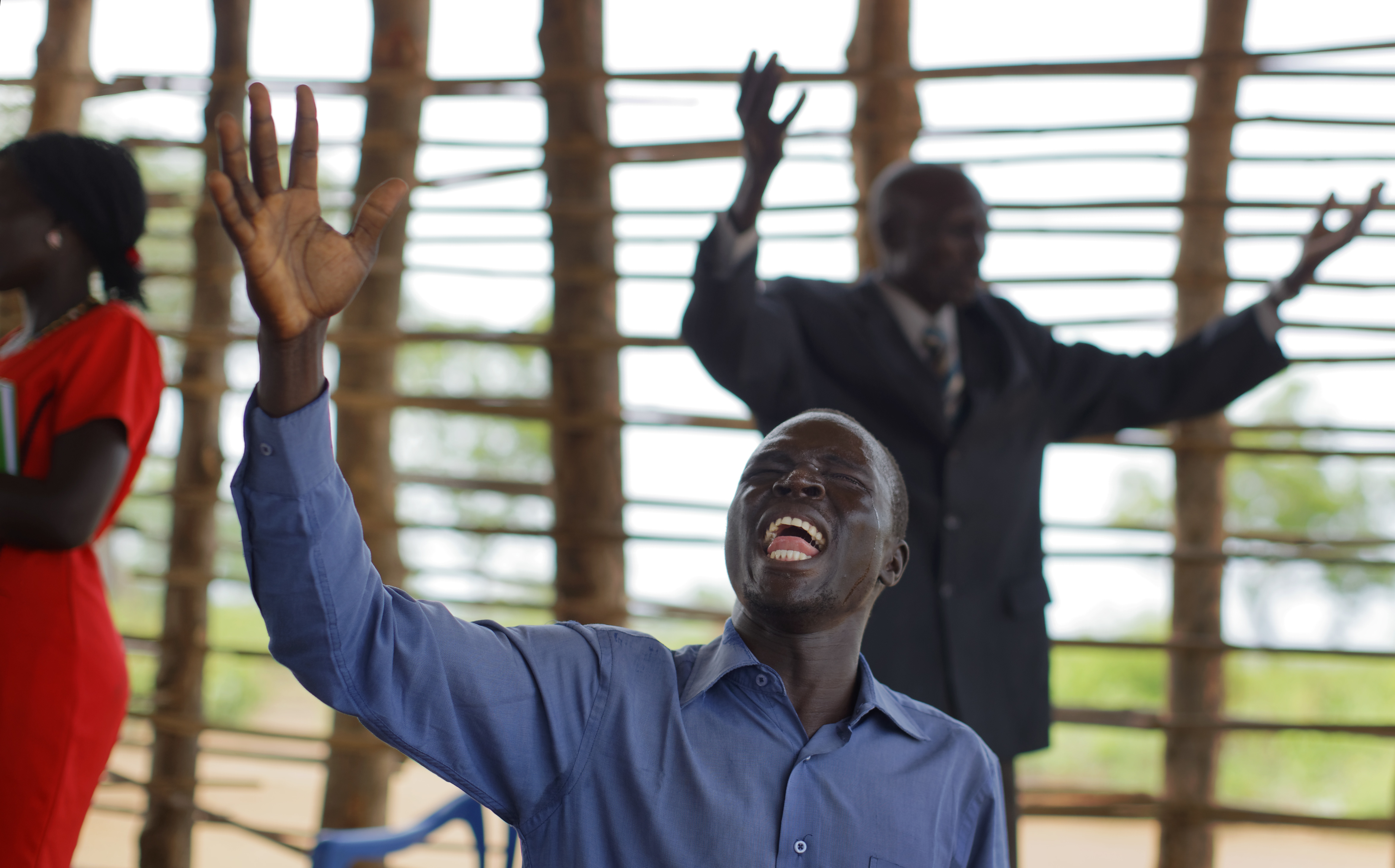 Nei campi profughi allestiti in Uganda per i profughi sud sudanesi sono state scattate delle toccanti immagini che testimoniano la loro pratica di fede. A Bidi Bidi, ad esempio, i cristiani di confessione pentecostale sono riusciti ad allestire una semplice struttura in legno, peraltro non del tutto coperta, per i loro momenti di preghiera: le panche sono state ricavate alla meglio da tavole di legno, anche i leggii per la Bibbia sono soltanto dei bastoni in legno, e solo qualche sedia in plastica rappresenta una minima forma di “comodità”; però, testimoniano i fotoreporter, per la comunità questi sono dei momenti fondamentali per ricostruire le proprie vite dopo la fuga dalla guerra.