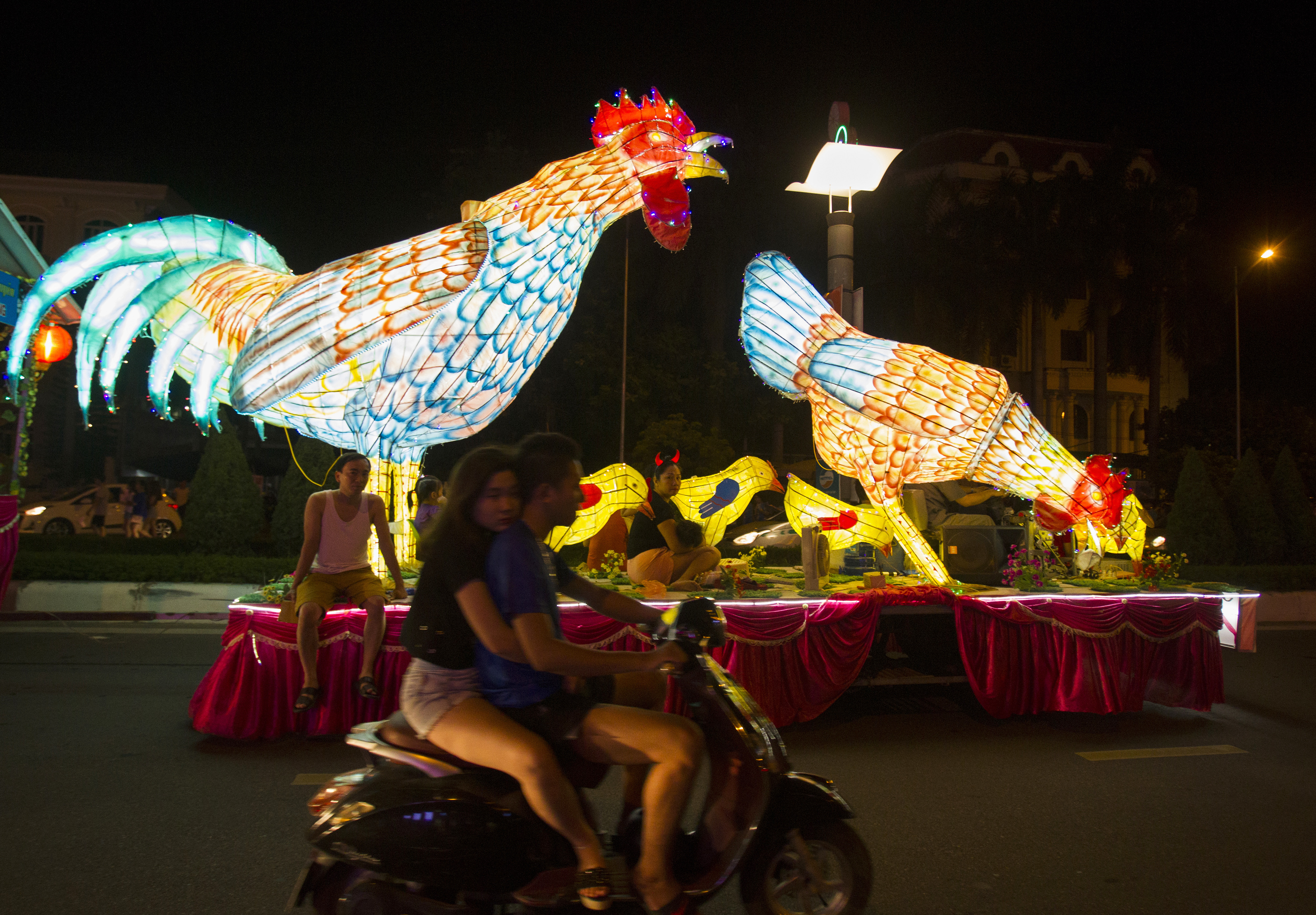 Un evento importante durante la festa di metà autunno in Vietnam è la Danza del leone. Tale danza viene effettuata sia da gruppi amatoriali di bambini, sia da gruppi professionali. I danzatori si esibiscono per le strade, e bussano alle case chiedendo il permesso di intrattenere le famiglie al loro interno. Se l’ospite acconsente, il “leone” inizia una danza rituale che serve come augurio di buona fortuna per la famiglia. In cambio, la famiglia ospitante dona al gruppo un compenso simbolico come segno di gratitudine. (foto Ap)