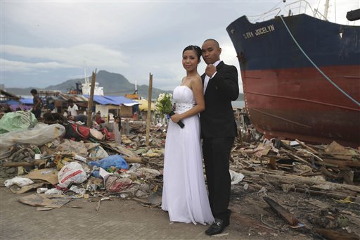 Tacloban. Decine di magliaia di persone vivono in mezzo alle rovine delle loro vite precedenti, sotto ripari di fortuna, circondati dalle fosse comuni. È passato del tempo da quando il tifone Haiyan ha distrutto case e strade, ma ancora si trovano dei corpi sotto le macerie. La vita, però, deve continuare: qualcuno si sposa, altri iniziano l’infinita opera di ricostruzione, molti pregano, mentre gli aiuti continuano ad arrivare, numerosi, da tutto il mondo (foto Ap).