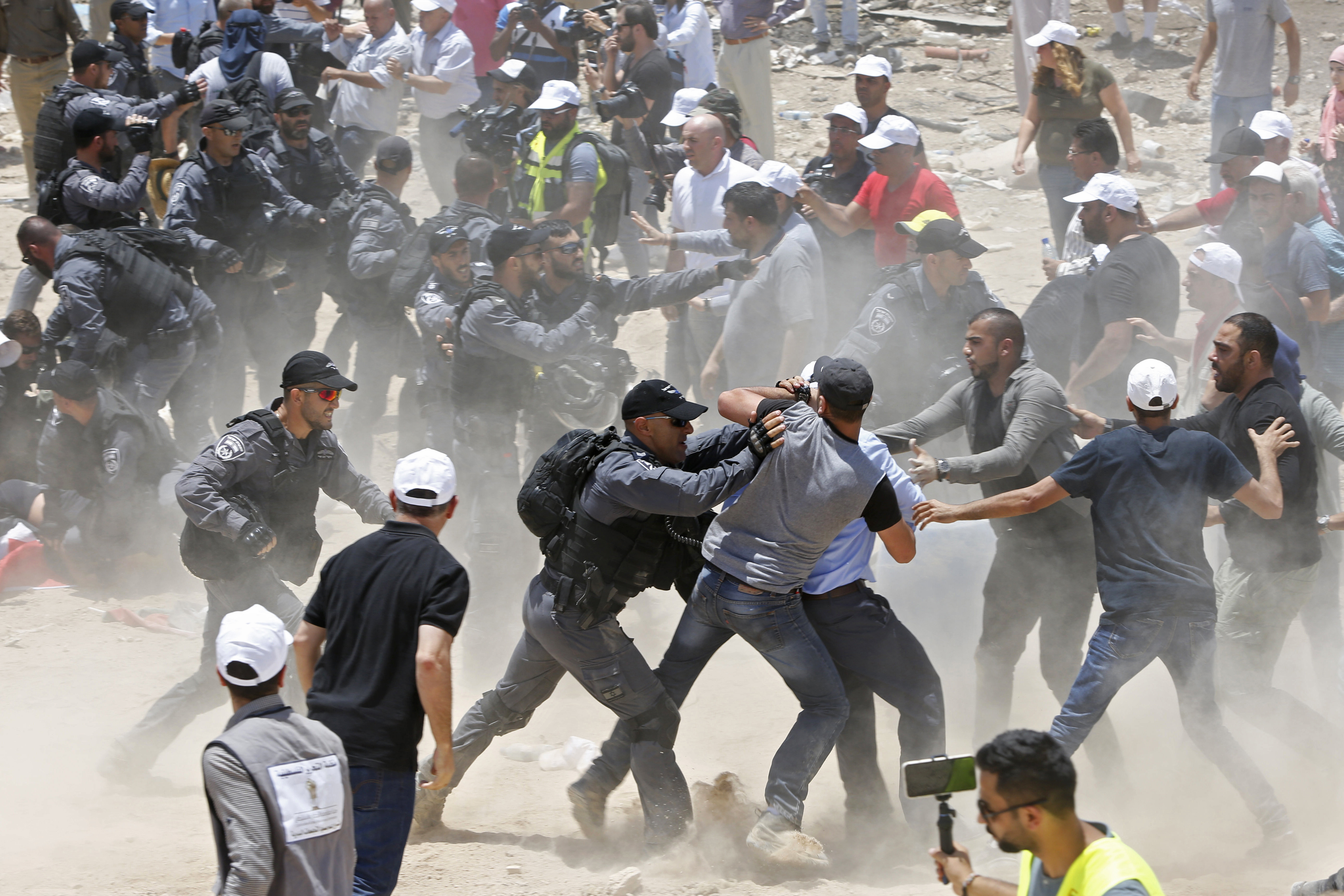 Nelle foto Ap l’ennesimo scontro tra palestinesi e israeliani. L’occasione, questa volta, è la demolizione di un villaggo di beduini nella zona del West Bank.