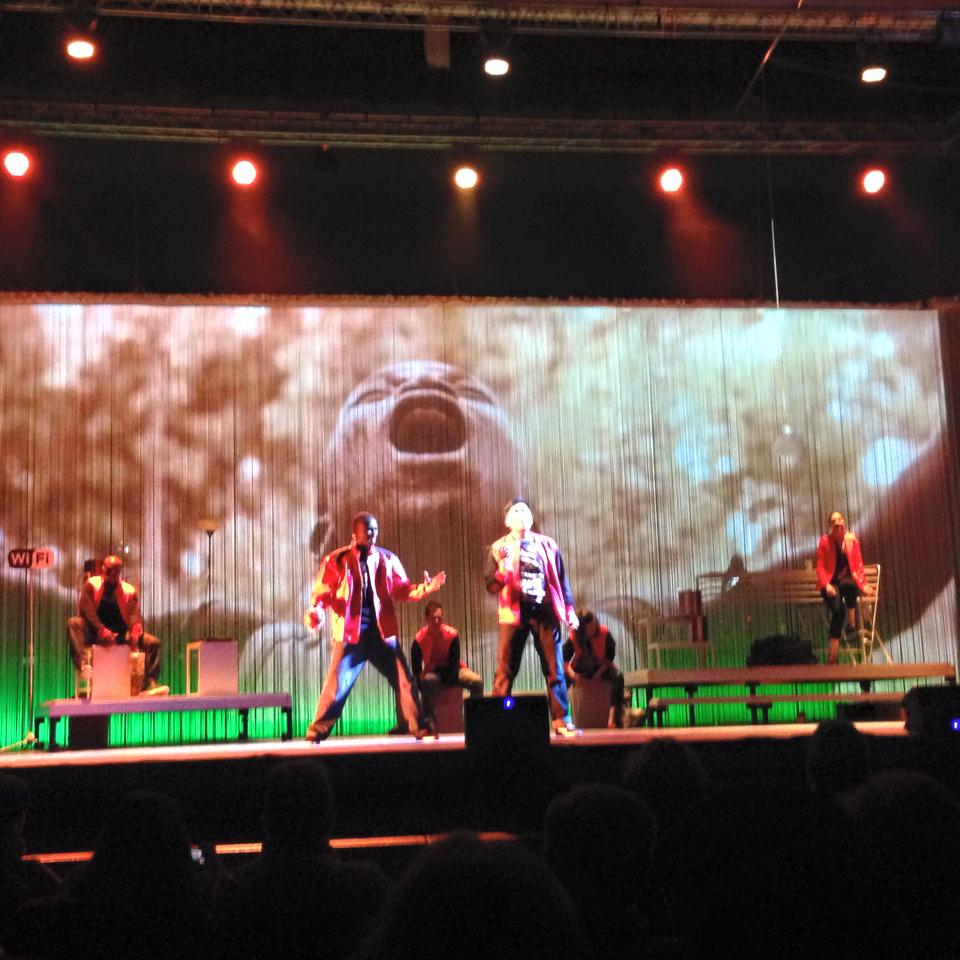 Un laboratorio artistico musicale con il complesso internazionale Gen Rosso, ha coinvolto 150 ragazzi campani impegnati da varie settimane nel progetto "Officine di fraternità": 11 cantieri di lavoro su legalità, solidarietà, impegno politico e cittadinanza attiva che si sono svolti soprattutto in quartieri a rischio di Napoli e in cittadine dove serve ricostruire un tessuto sociale ferito dalla criminalità. Con il Gen Rosso si è lavorato per mettere in scena il musical "Streetlights", la storia vera di un giovane che prova a riscattarsi da una vita di strada e da una gang violenta del Bronx negli anni ’70. Nelle foto vari momenti del lavoro e della messa in scena
