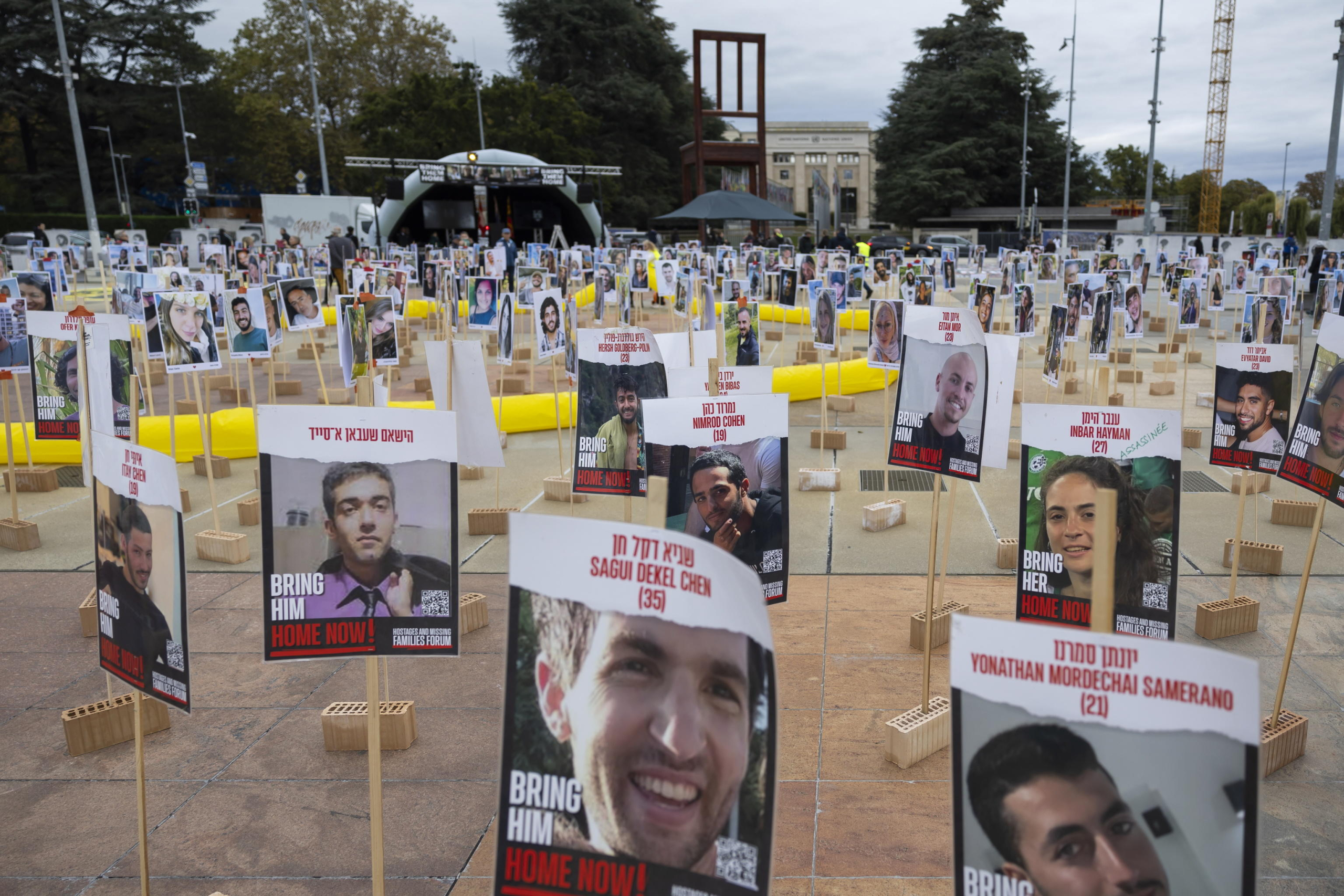 Nella foto Ansa la memoria dell’eccidio perpetrate da Hamas il 7 ottobre 2023 e alcune immagini legate ai bombardamenti istraeliani su Gaza e Libano