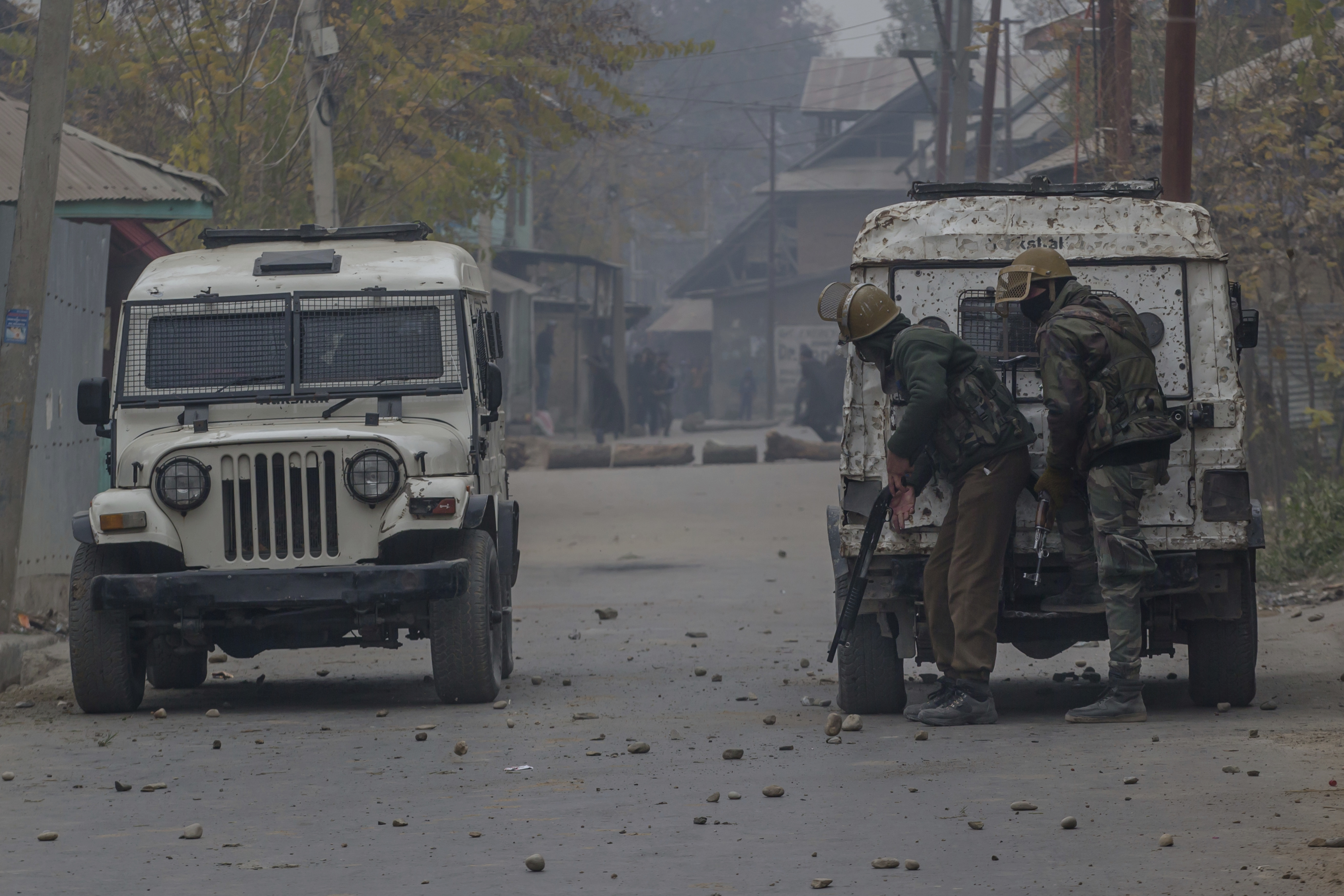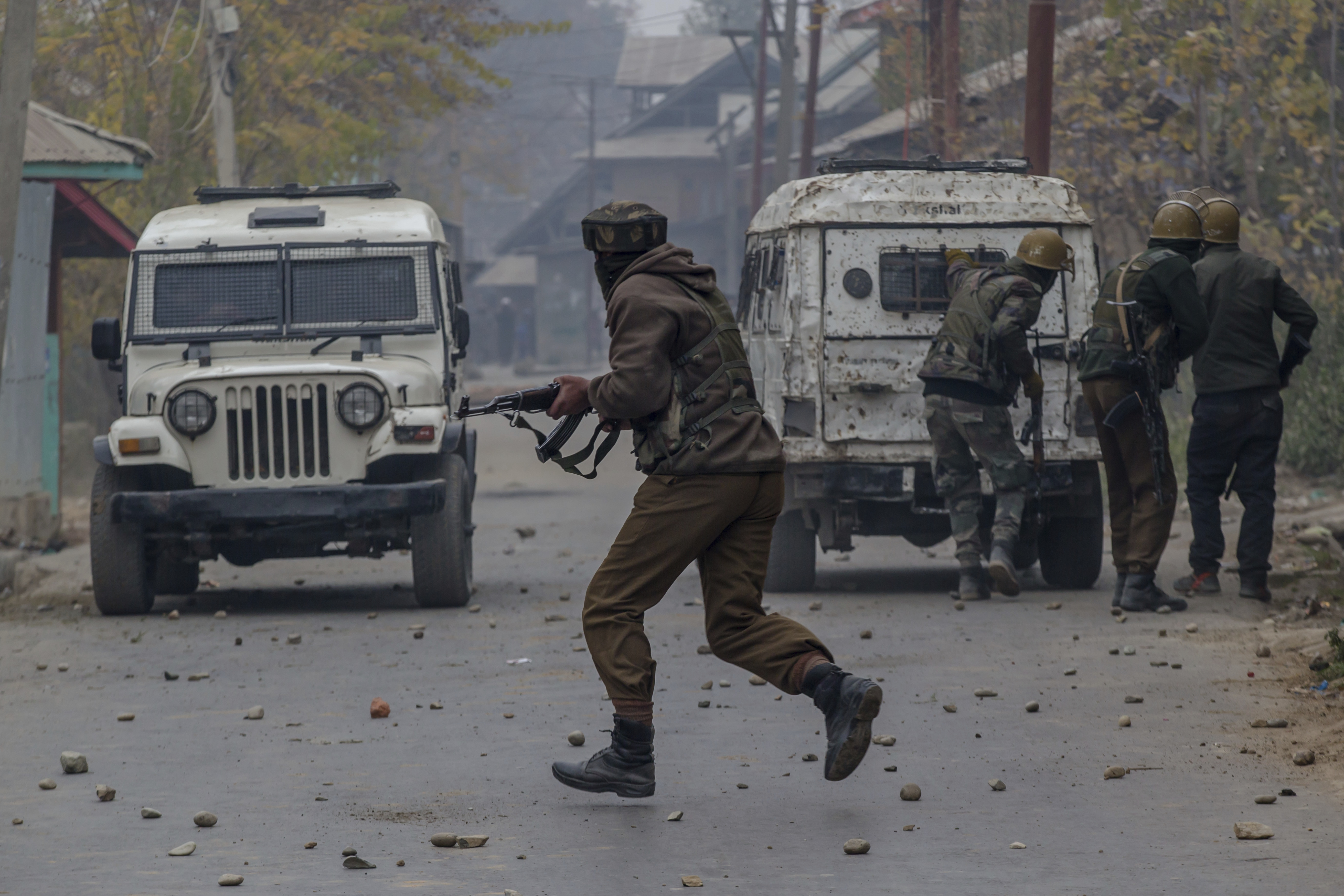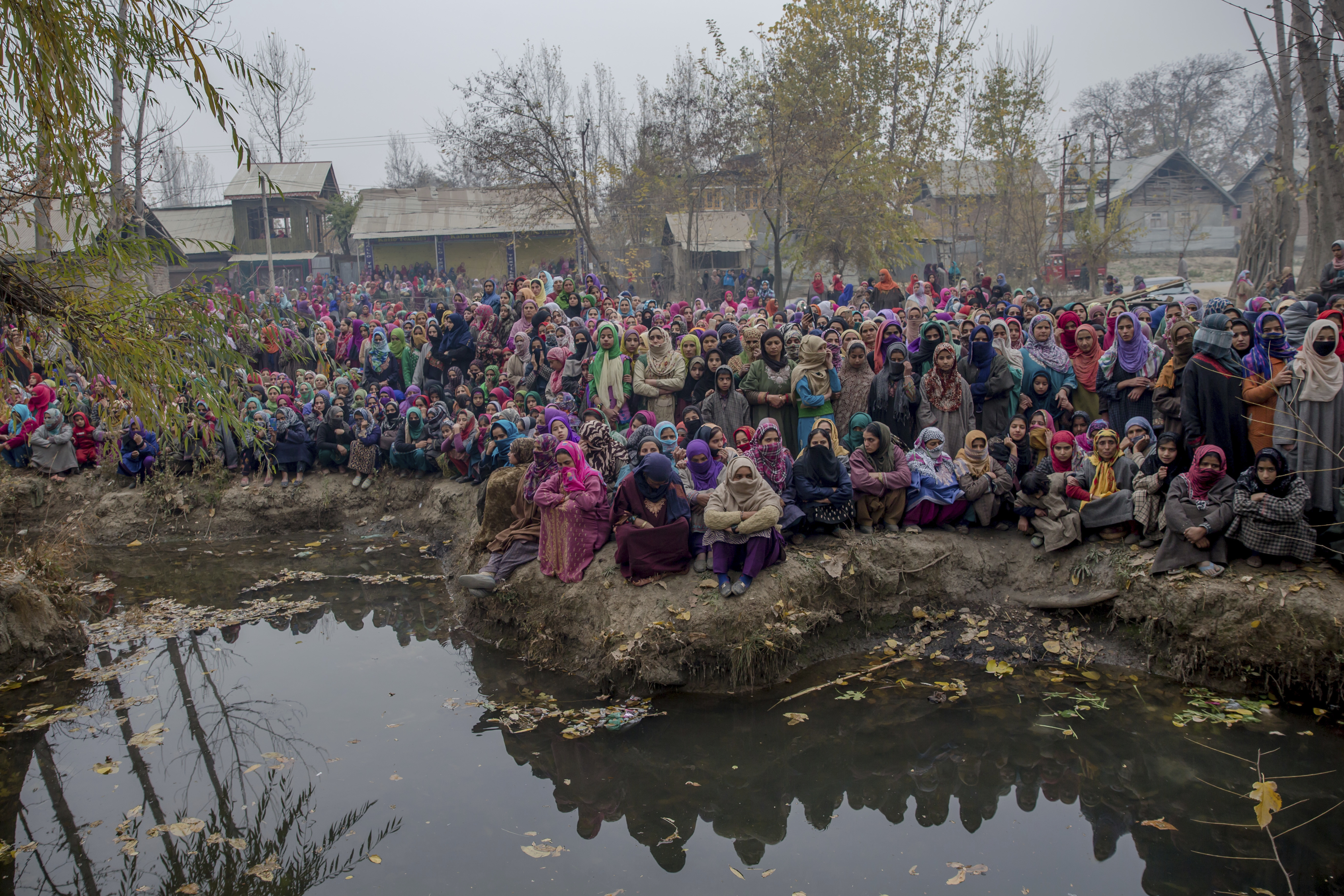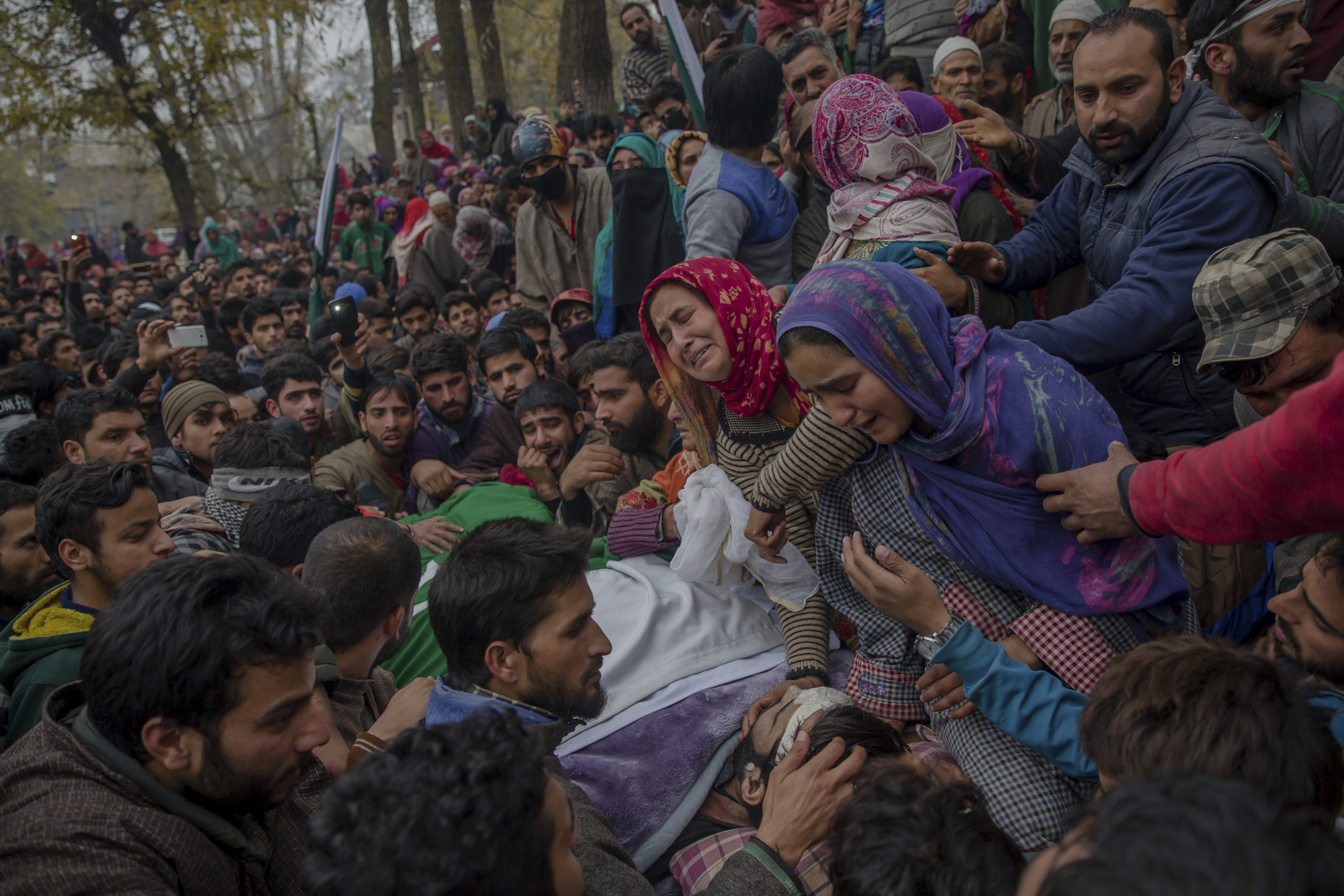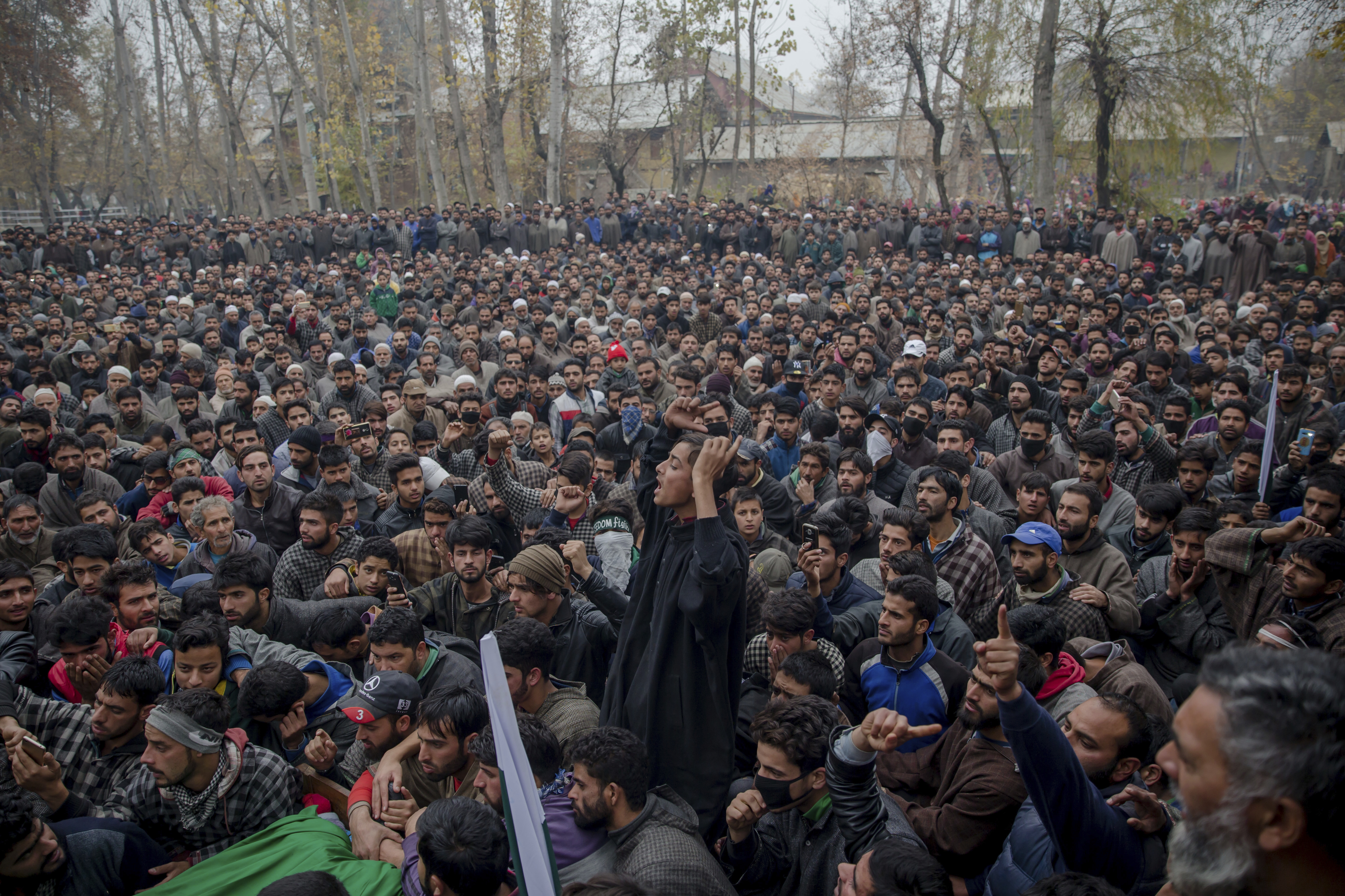 Gli abitanti di Palhalan, 35 chilometri a nord di Srinagar, nel Kashmir controllato dall’India, gridano slogan durante il funerale di Ashiq Ahmed Bhat, un ribelle locale molto conosciuto. Continua la guerriglia tra ribelli e soldati indiani, nella regione himalayana del Kashmir contesa tra Pakistan e India.