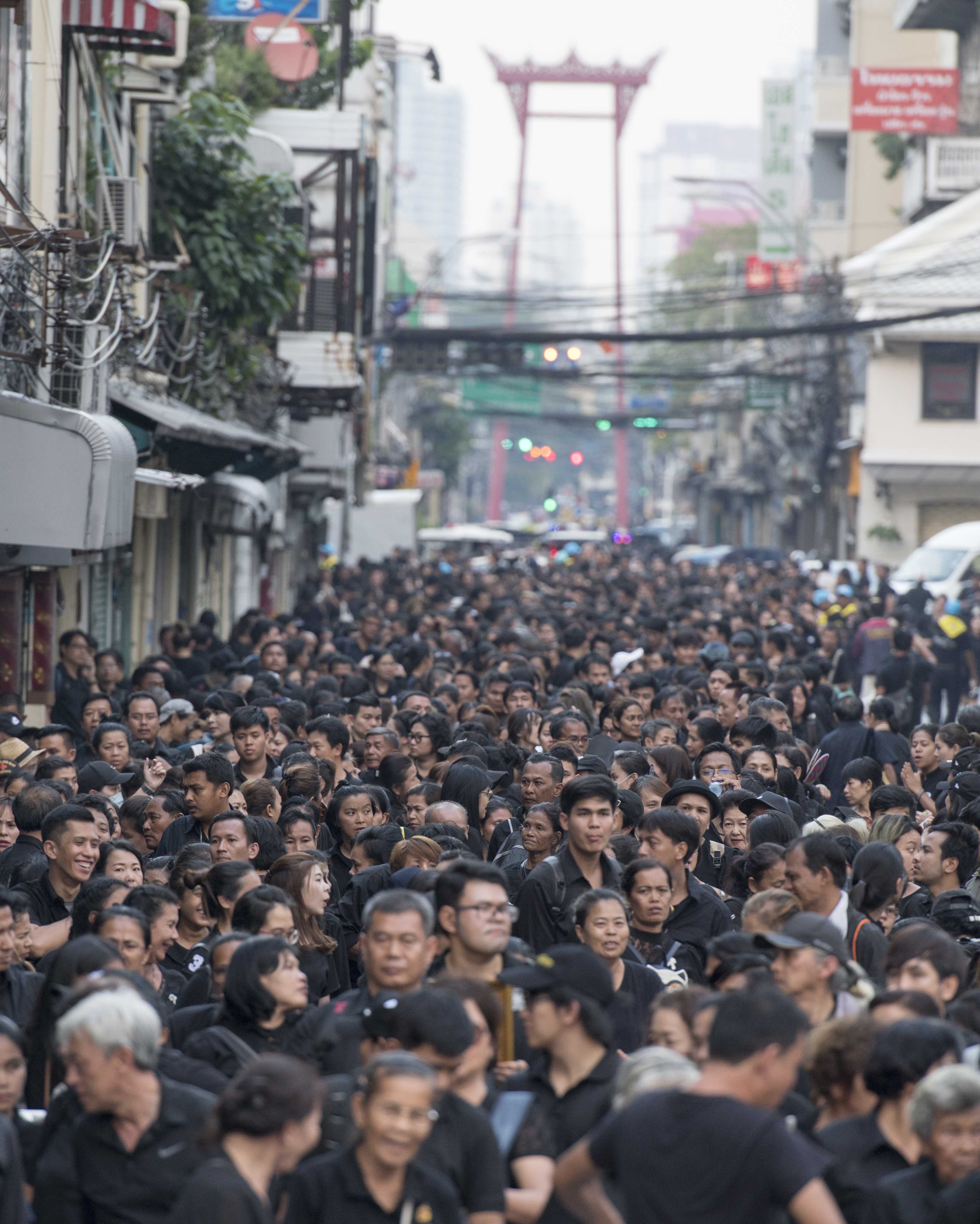 Centinaia di migliaia di persone hanno sfidato le piogge torrenziali degli ultimi giorni e si sono già messe in fila fuori dall’area dove si svolgeranno i funerali dell’ex sovrano.