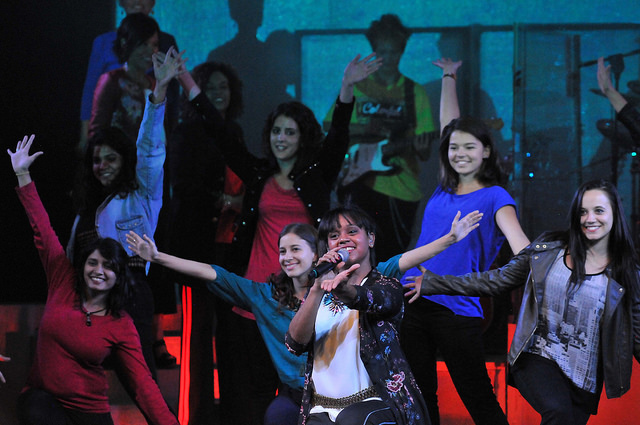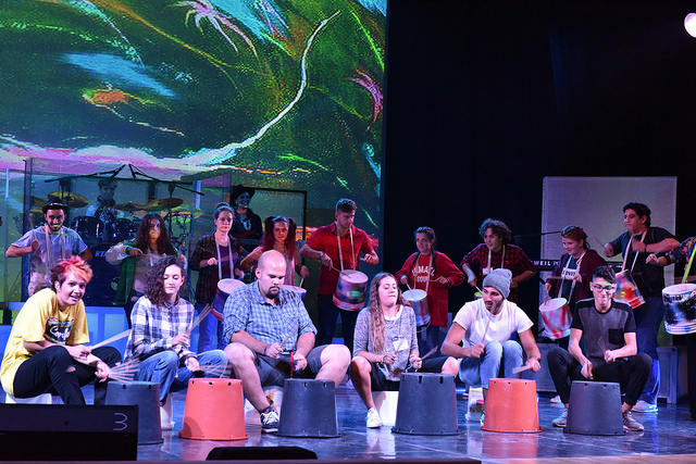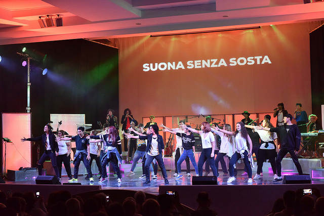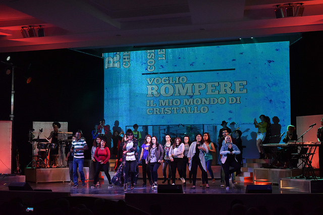 Alcuni istanti dello spettacolo del Gen Verde che si è tenuto sabato sera nell'auditorium di Loppiano durante la manifestazioni di Loppianolab 2016. I ragazzi, dopo aver partecipato ai workshop di teatro, canto, danza e percussioni organizzati dal gruppo musicale internazionale Gen Verde, hanno potuto dar prova del loro talento ed energia.