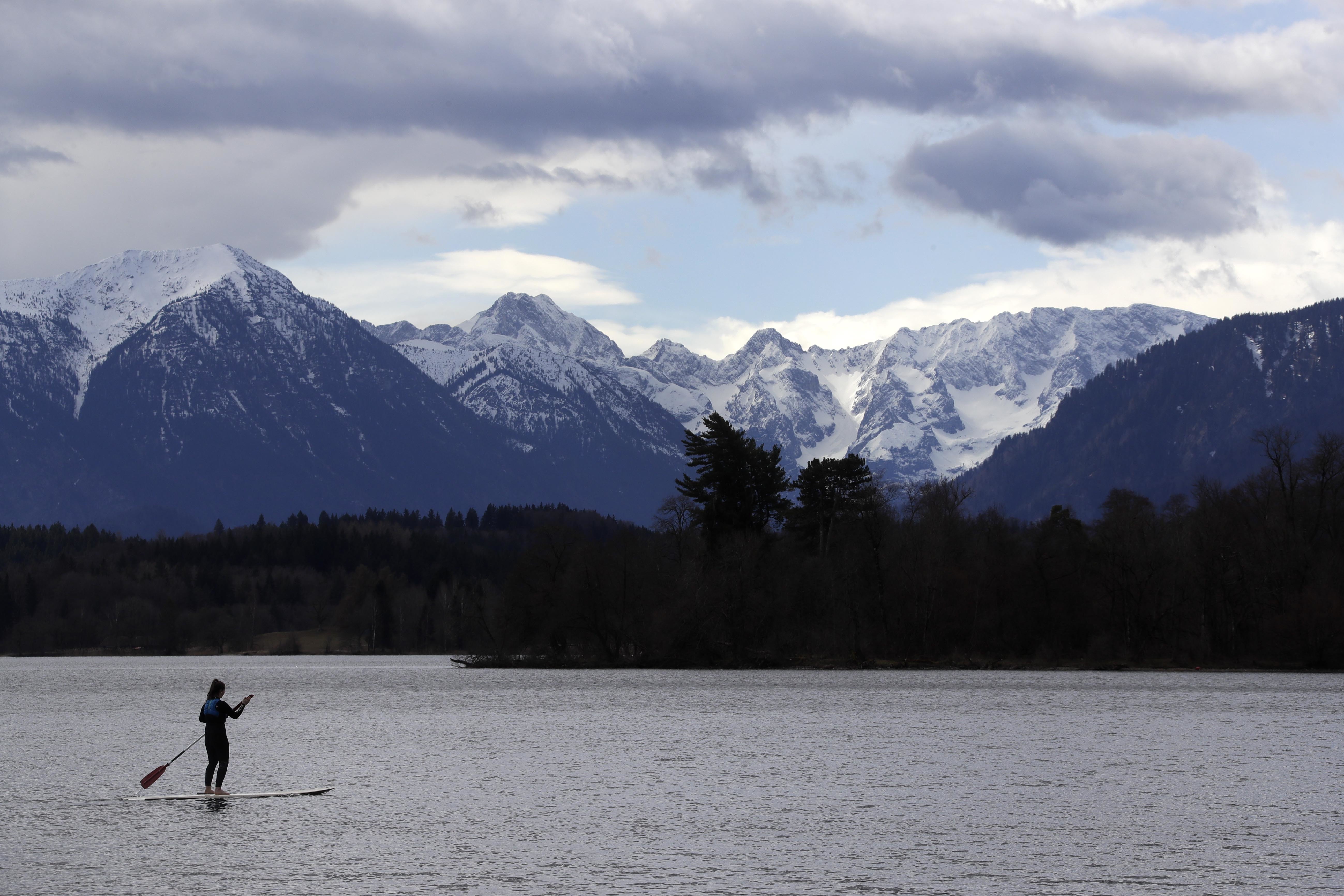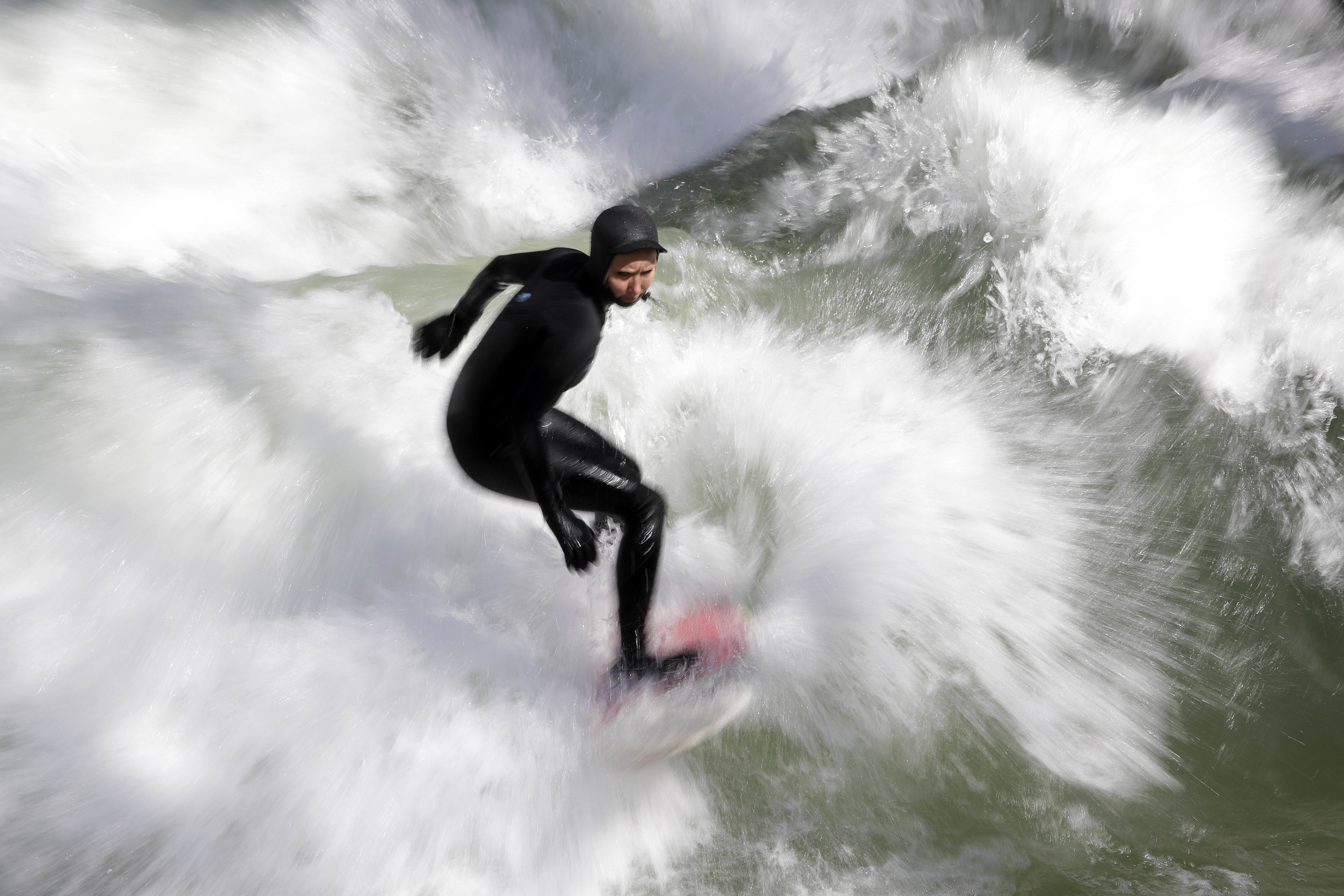 Un gabbiano cattura al volo un po’ di cibo lanciato da un turista a Scharbeutznel nel calmo Mar Baltico. Una mamma con il suo bambino passeggiano sulla sabbia a Timmendorfer Strand mentre nubi nere si avvicinano. Un vogatore in piedi sulla canoa nel lago di Staffelsee di fronte alle Alpi vicino Garmisch-Partenkirchen. Una surfista cavalca un’onda artificiale sul fiume Eisbach nel Giardino inglese nel centro di Monaco. La più alta giostra di cavalli chiamata The Flyer ruota di fronte alla Chiesa di San Severo durante la festa di primavera che si svolge a Erfurt. Da un’altezza di 80 metri si può godere una fantastica veduta della città vecchia. Siamo in Germania in alcuni scatti di vita quotidiana.