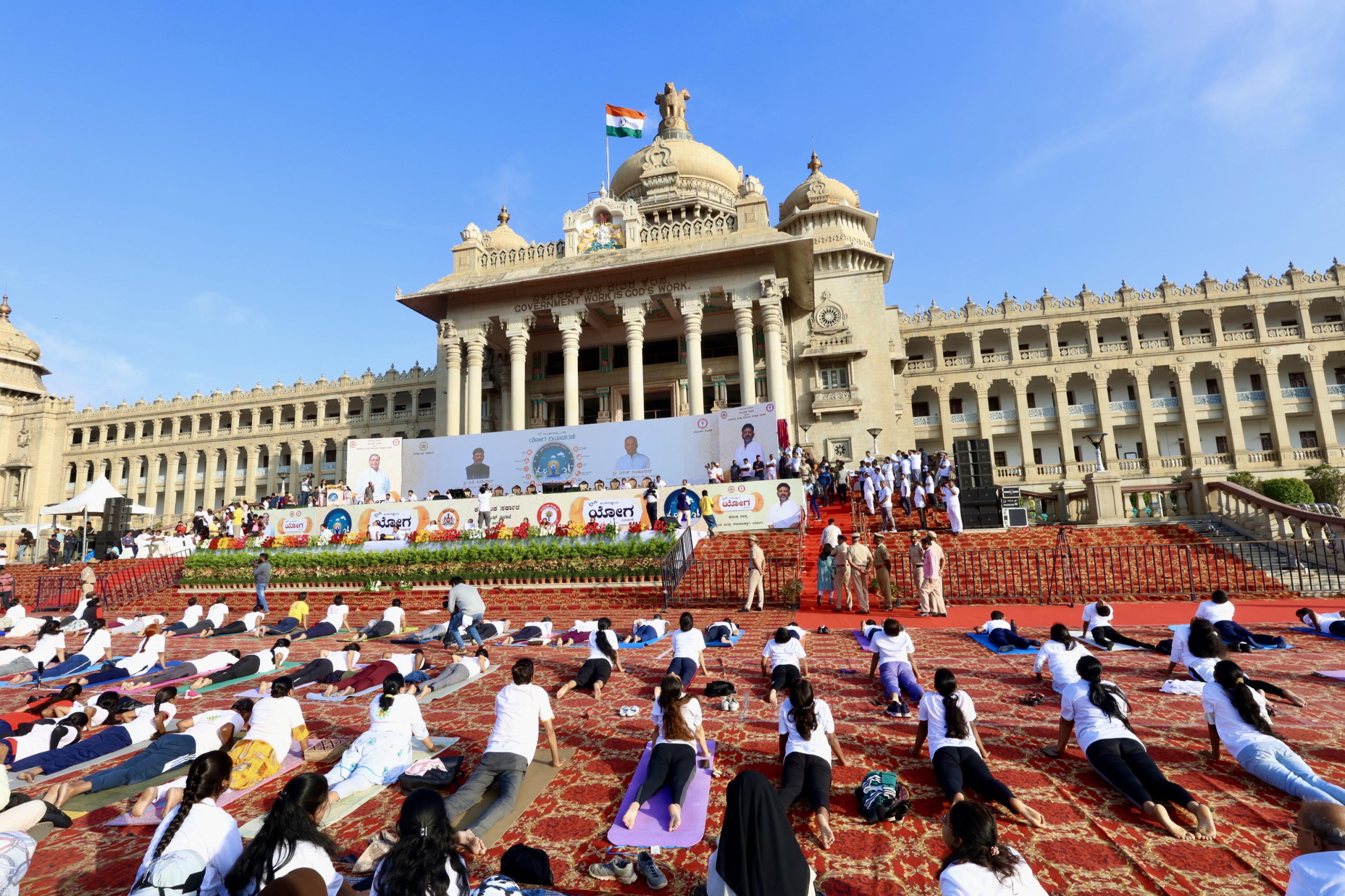 Probabilmente la prima cosa che ci viene in mente pensando al 21 giugno è il solstizio d’estate, ma è anche la Giornata internazionale dello yoga: una disciplina riconosciuta dalle Nazioni Unite come “una pratica di esercizio fisico, mentale e spirituale” che ha avuto origine in India, e a cui dal 2015 è dedicata questa giornata. Queste immagini si riferiscono appunto alle manifestazioni per festeggiarla a Calcutta.