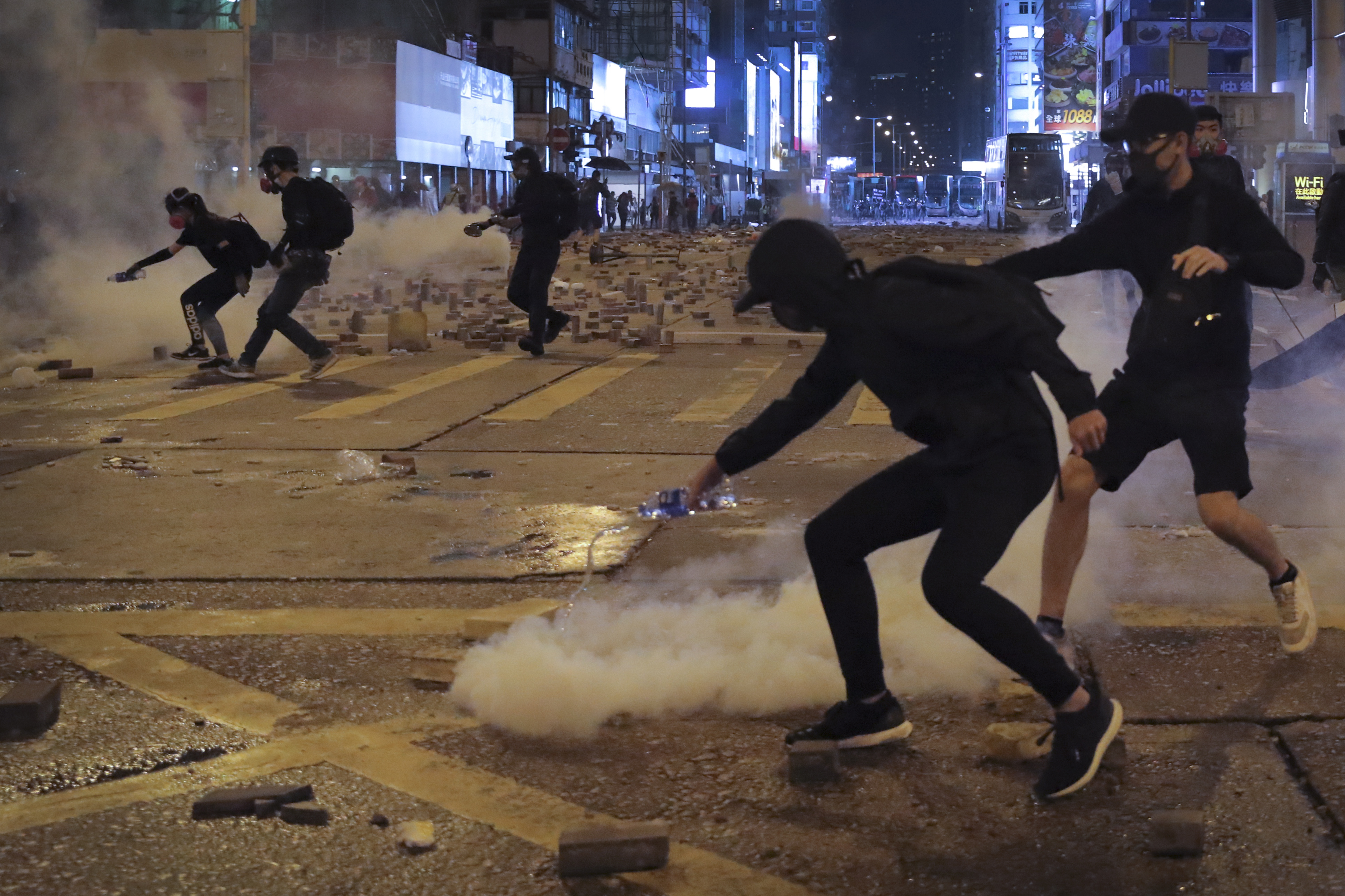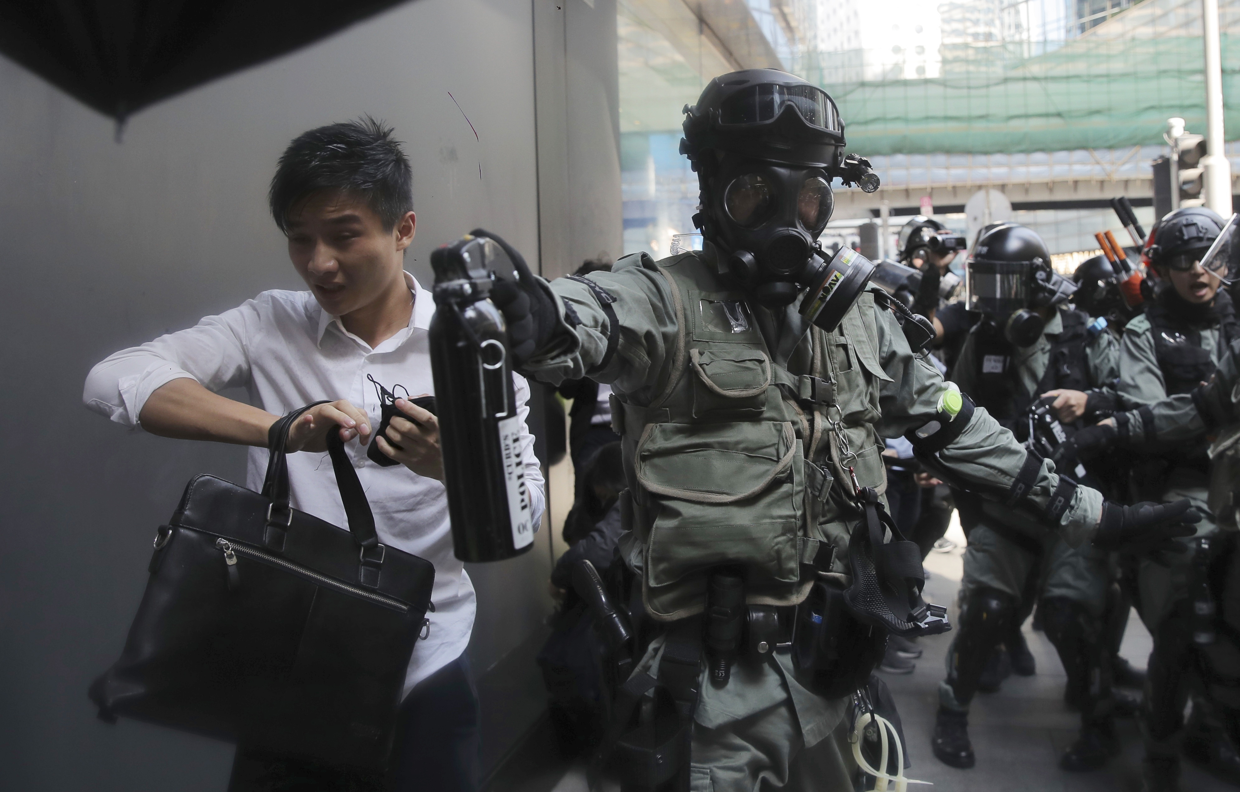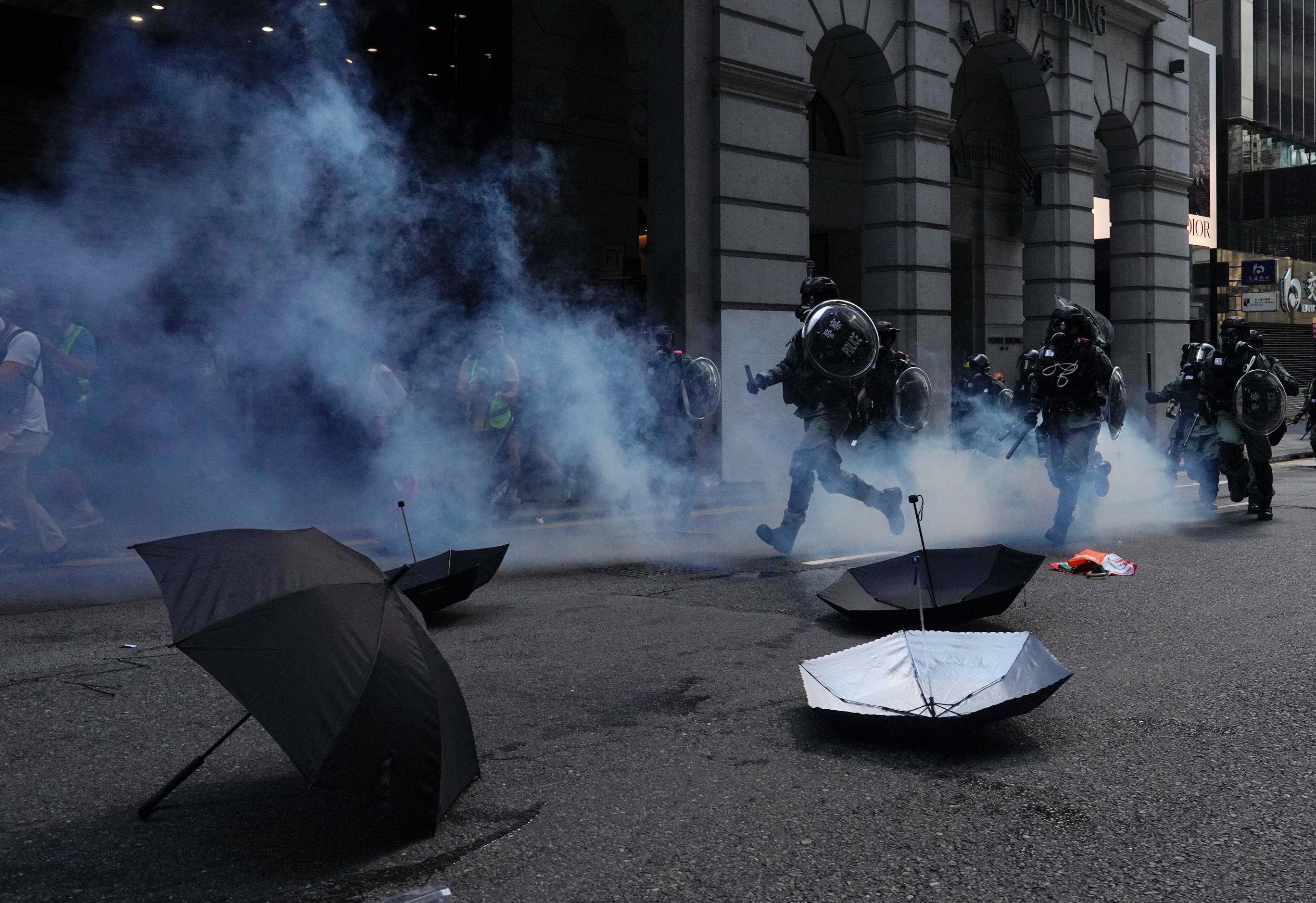 Un manifestante è stato ferito da un colpo di arma da fuoco sparato dalla polizia antisommossa ed è in condizioni critiche. In altra parte della città un uomo è stato dato alle fiamme, sembra perché pro-Cina.