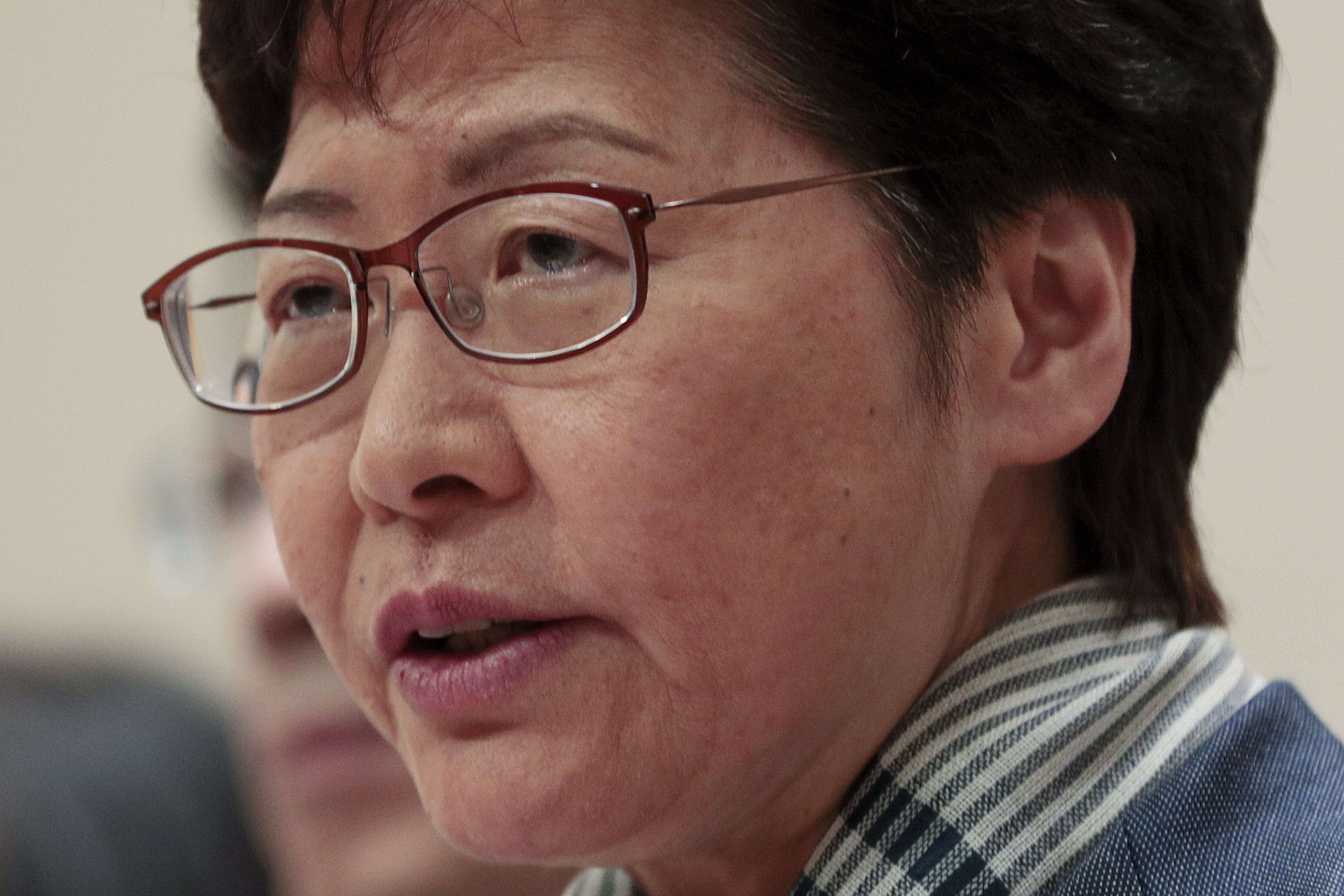 La governatrice di Hong Kong, Carrie Lam, si è impegnata a fare ogni sforzo per metter fine alle proteste antigovernative che devastano la città da più di cinque mesi. Gli ha risposto Joshua Wong, uno dei leader della protesta, preoccupato perché la città è ormai caduta in uno “stato di polizia”. (Foto AP / Kin Cheung)