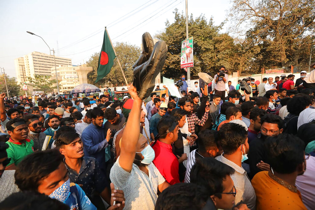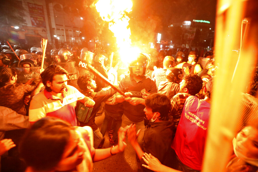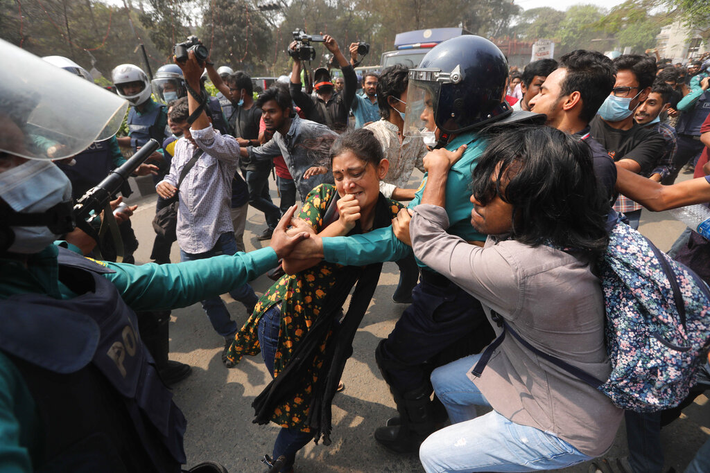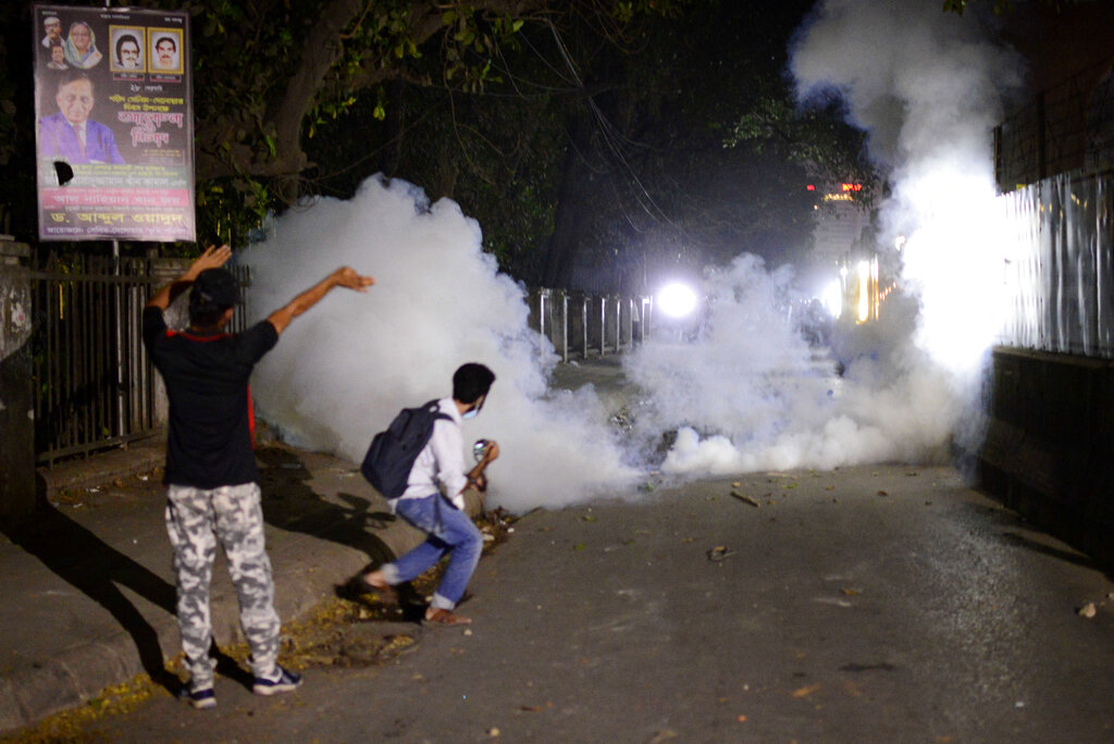 Duri scontri con la polizia durante una protesta dei giovani a Dhaka. Circa 300 studenti si sono riuniti nella capitale del Bangladesh per denunciare la morte in prigione di Mushtaq Ahmed, scrittore e commentatore arrestato lo scorso anno con l’accusa di aver violato la legge sulla sicurezza digitale, che secondo i critici soffoca la libertà di espressione della popolazione. (Foto AP / Mahmud Hossain Opu)