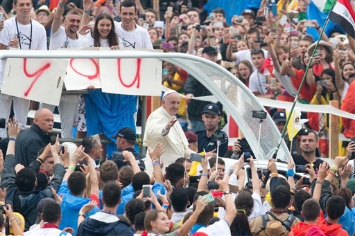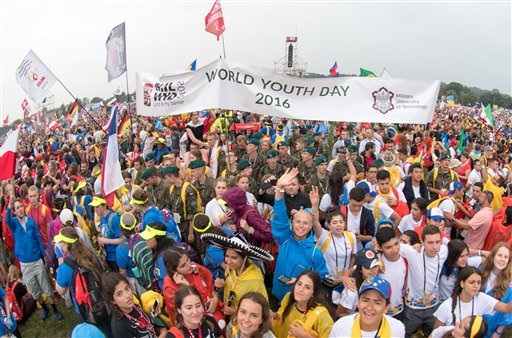 Nemmeno la pioggia è riuscita a fermare i giovani accorsi da tutto il mondo per incontrare il papa alla Gmg di Cracovia. E Francesco non li ha delusi, incoraggiandoli, spronandoli e spingendoli a lavorare per la pace e a cambiare in meglio la società (foto Ap).