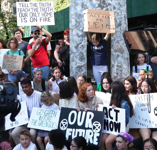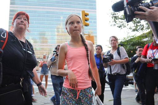 La presidente dell’Assemblea generale dell’Onu ha accolto ieri Greta Thumberg, la ragazza simbolo della lotta al cambiamento climatico, che ha raggiunto New York dopo una traversata di due settimane in barca a vela a zero emissioni. A darle supporto davanti al palazzo di vetro circa un migliaio di giovani manifestanti insieme ai quali Greta ha ribadito l’urgenza di un’azione decisiva da parte della politica. Greta prenderà parte a fine settembre al summit sul clima dell’Onu. (Foto Ap)