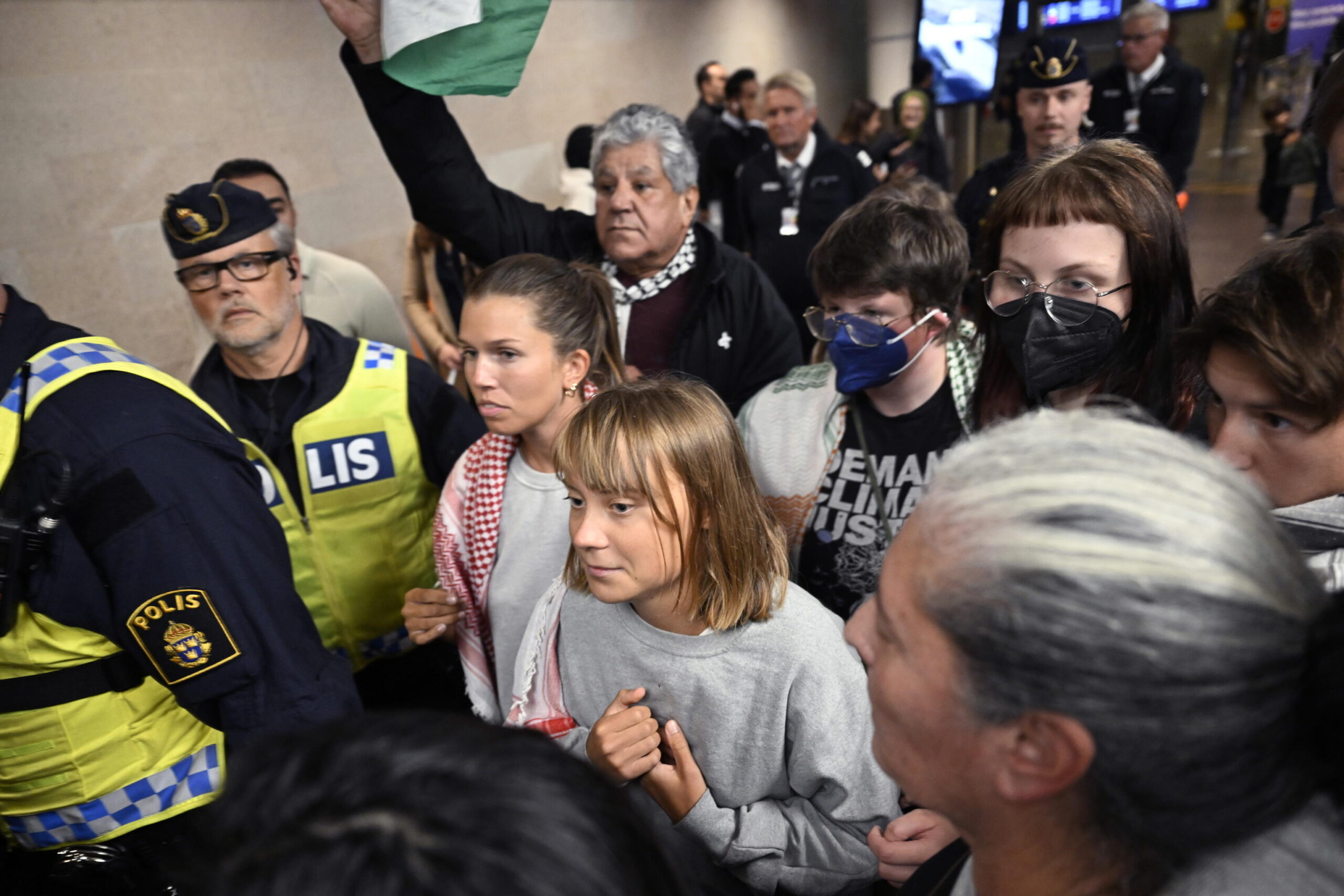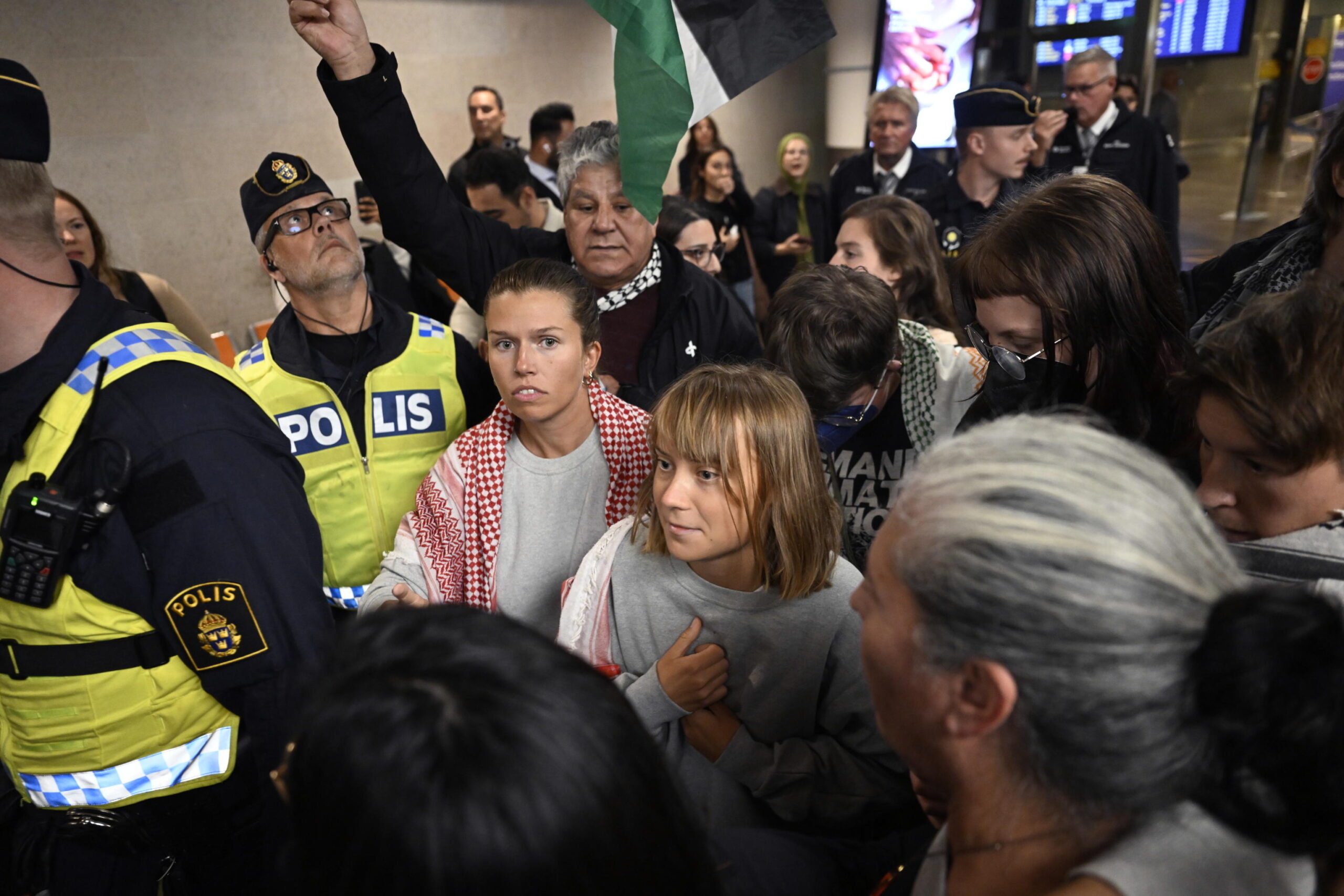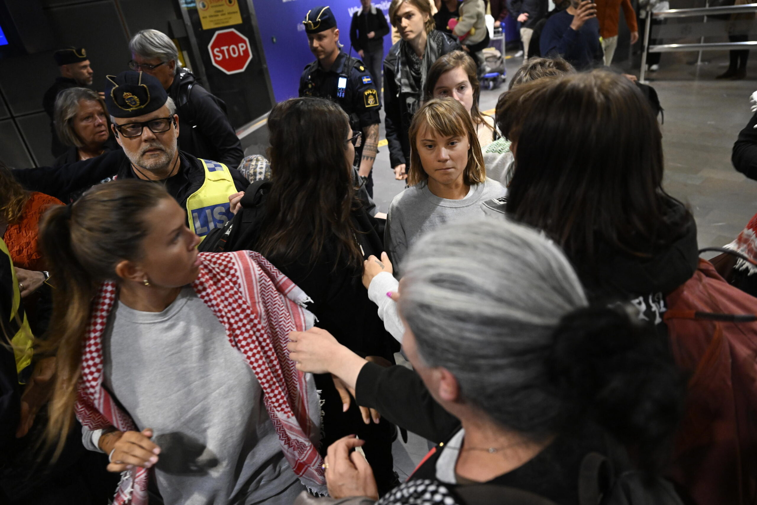 Greta Thunberg è tornata in Europa dopo essere stata fermata dalle forze israeliane insieme ad altri attivisti della Global Sumud Flotilla, mentre trasportavano aiuti umanitari nella Striscia di Gaza. Il 6 ottobre 2025 è atterrata all’aeroporto di Atene insieme ad altri 170 attivisti, accolti da una folla di sostenitori pro-palestinesi.