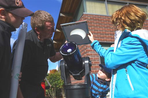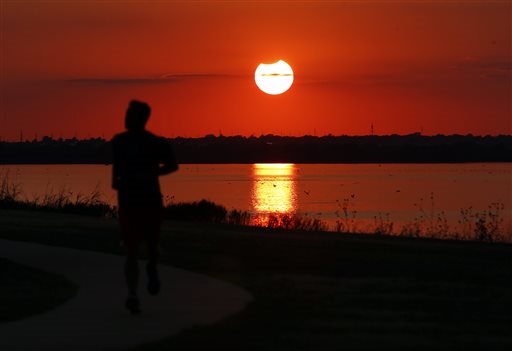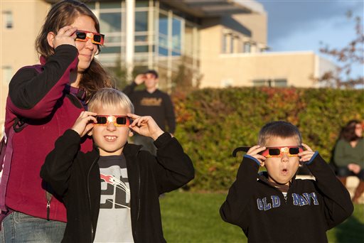 Non è stato semplice, negli Stati Uniti, assistere, ieri, all'eclissi solare parziale: tutta colpa di un cumulo di nubi che, proprio al momento dell'allineamento della luna davanti al sole, hanno coperto il cielo. Per fortuna, i tanti che scrutavano il cielo con gli speciali occhialini protettivi, alla fine sono riusciti ad osservare il singolare fenomeno, anche se solo per pochi minuti (foto Ap).