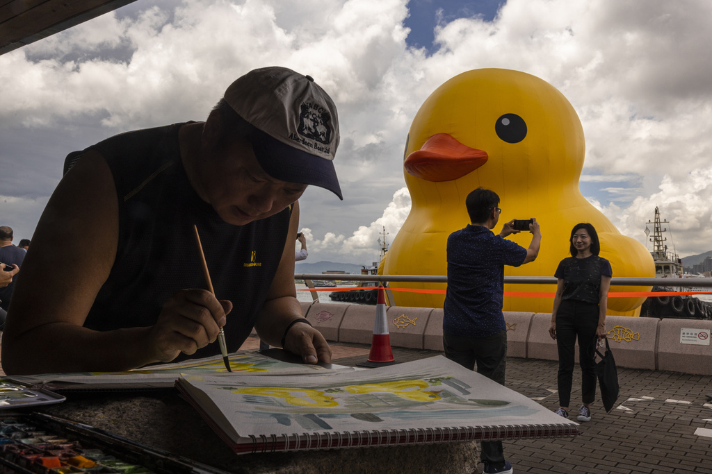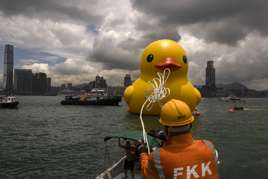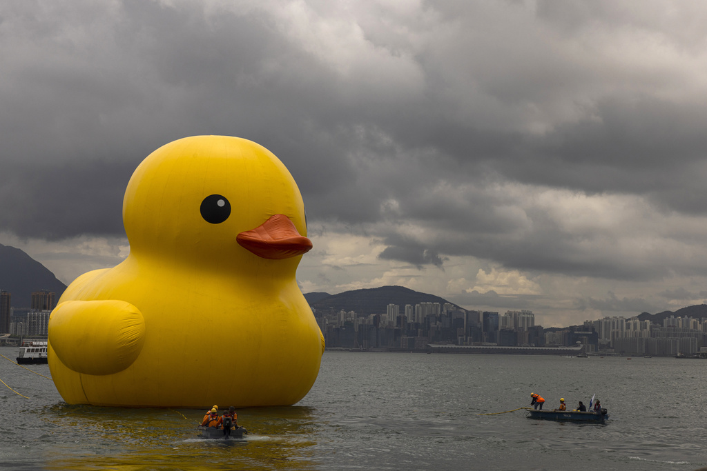 L’opera, tra i gonfiabili più grandi al mondo, ha “sguazzato” per due ore circa tra i ponti sul fiume della città e dal 10 giugno potrà essere ammirata per due settimane al porto naturale di Victoria Harbour mentre la versione del 2013 è stata esposta in molti altri Paesi del mondo quali Australia, Brasile, Cile… non senza qualche piccolo imprevisto: a Taiwan si è sgonfiata ed a Santiago del Cile è addirittura esplosa.