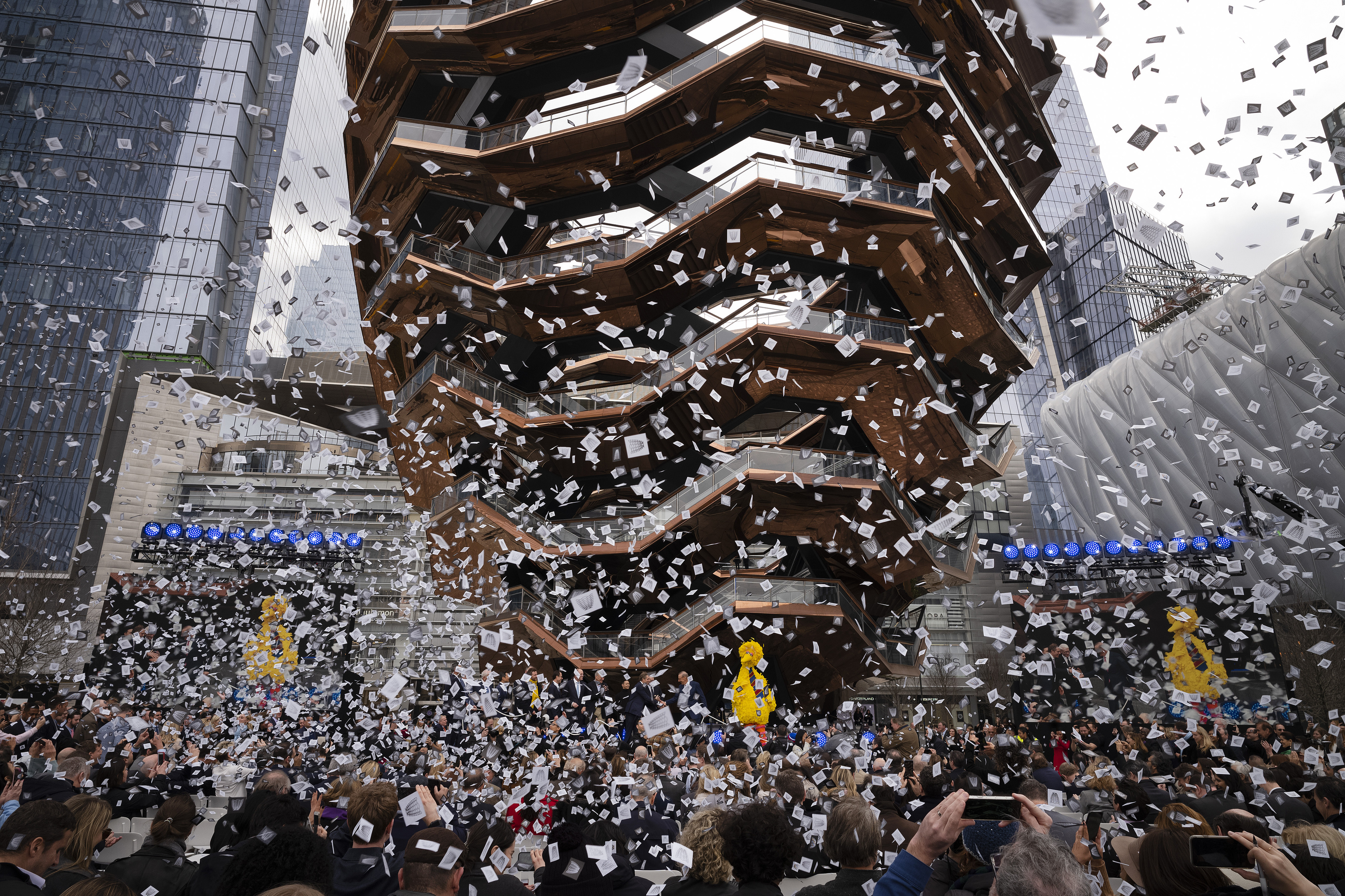 È stato inaugurato il 15 marzo il nuovo quartiere di Manhattan che modifica lo skyline newyorkese e che diventa la meta top dove andare d’ora in poi. È composto dalla struttura totemica di rame “The Vessel”, dallo shopping center Neiman Marcus e dal performing art center The Shed, oltre a spazi residenziali, giardini, piazze, l’Hudson Yards Observation Deck (l’osservatorio all’esterno più alto di New York) e il lussuoso hotel Equinox. Si tratta del più grande sviluppo immobiliare della storia degli Stati Uniti dopo il Rockefeller Center, del valore complessivo di 25 miliardi di dollari, volto ad incrementare lo sviluppo urbano lungo il fiume Hudson. (foto Ap)