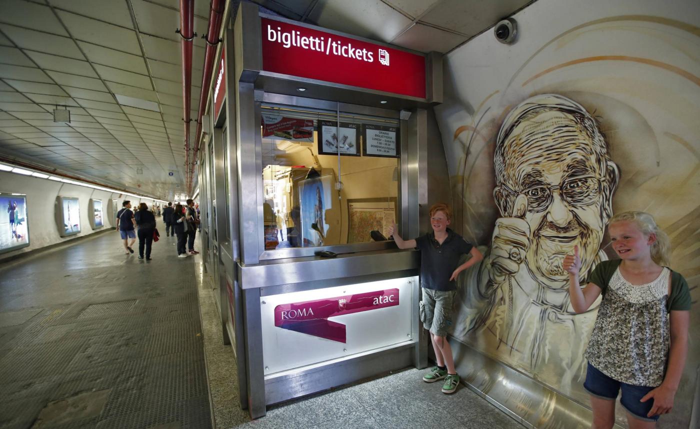 I muri della metro di piazza di Spagna a Roma sono diventati una galleria degli artisti di strada. Sei giovani francesi esperti di murales hanno disegnato sulle pareti papa Francesco con il pollice in su, il muso di un gatto, degli uccelli in volo, una bandiera della pace. L’operazione svolta a titolo gratuito ha decisamente cambiato il grigio della stazione avviando un’opera di restauro che potrebbe estendersi anche ad altre fermate.