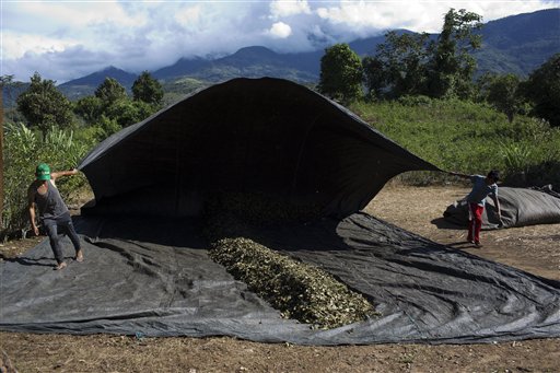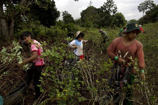 Nella regione di Samugari in Perù sono state raccolte circa 99mila tonnellate di foglie di coca, rispetto alle 22mila di altre zone del Paese. I coltivatori le vendono circa tre dollari e mezzo al chilo, il doppio di quanto avrebbero guadagnato coltivando caffè o cacao. Gli operai utilizzano delle protezioni durante il raccolto e  guadagnano 33 centesimi al chilo mentre le donne sono incaricate dell’essicazione delle foglie su cui camminano a piedi scalzi. I bambini sono ingaggiati nell’attività perché l’estrema povertà della zona non consente di ripensare economia e nuove possibilità di entrate.
