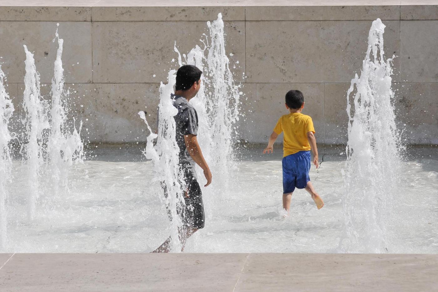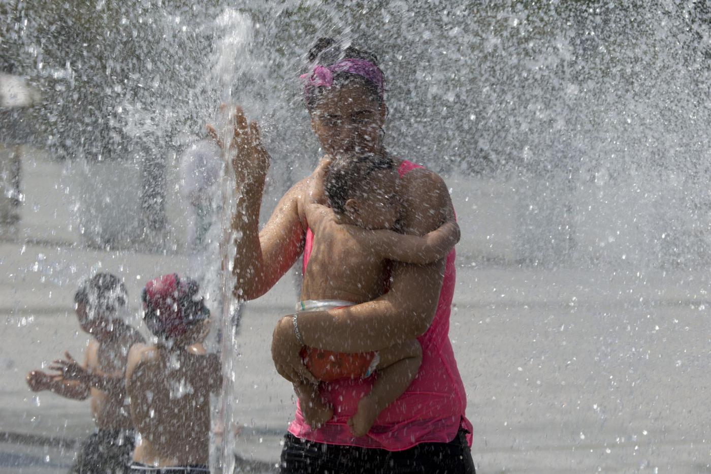 Un'ondata di gran caldo, con temperature che potranno sfiorare i 40 gradi, sta investendo l'Italia e l'Europa. Persone e animali cercano di rinfrescarsi in tutti i modi. Nelle foto: una mamma si bagna in una fontana a Parigi con il figlioletto. Un giovane beve ad una fontanella davanti al Colosseo, a Roma. Nella capitale italiana dei bambini giocano nelle fontane. In Germania, un macaco tiene tra le zampe un grosso blocco di ghiaccio con un mix di verdure surgelate e frutta nello zoo di Lipsia (fot Ap).